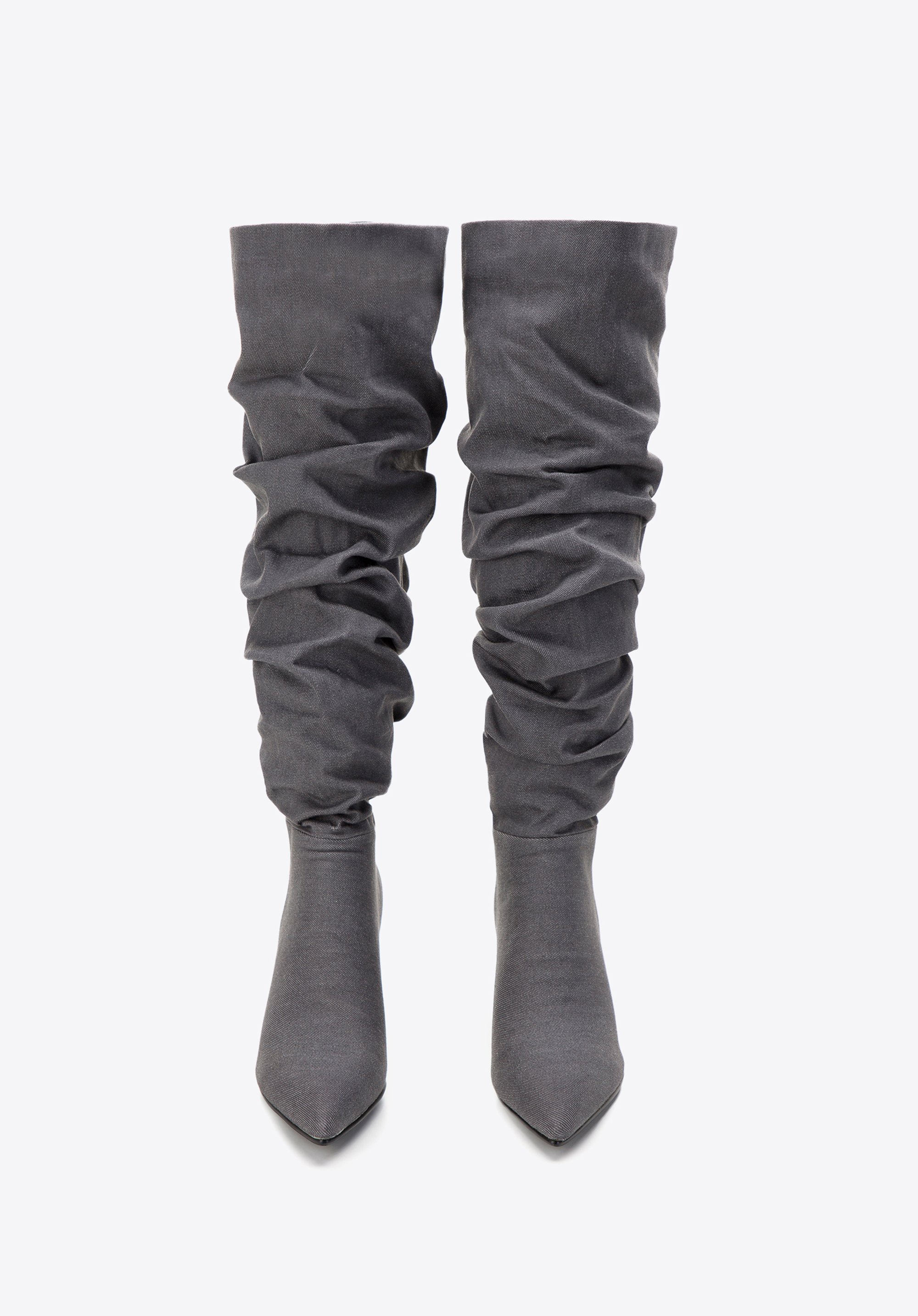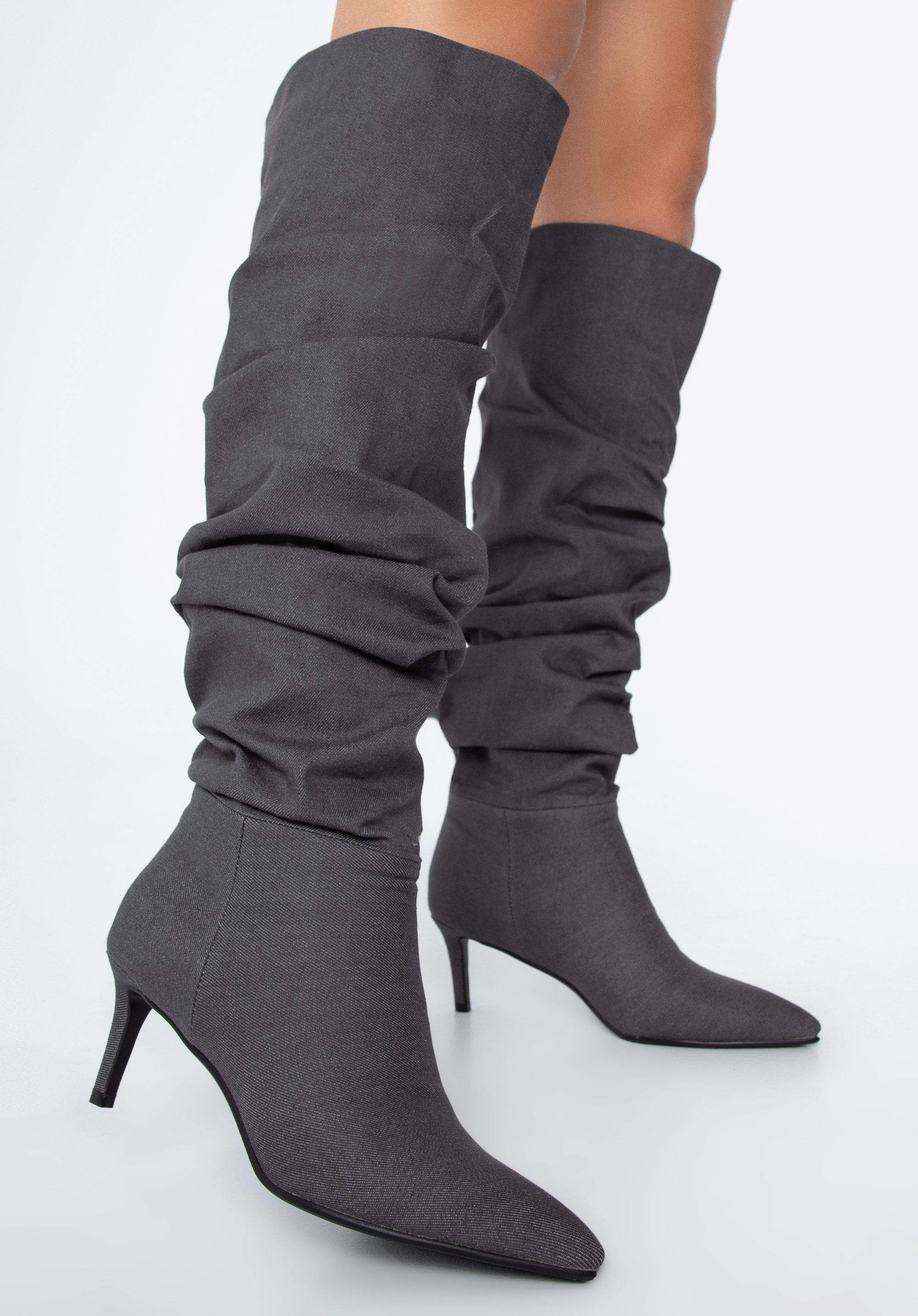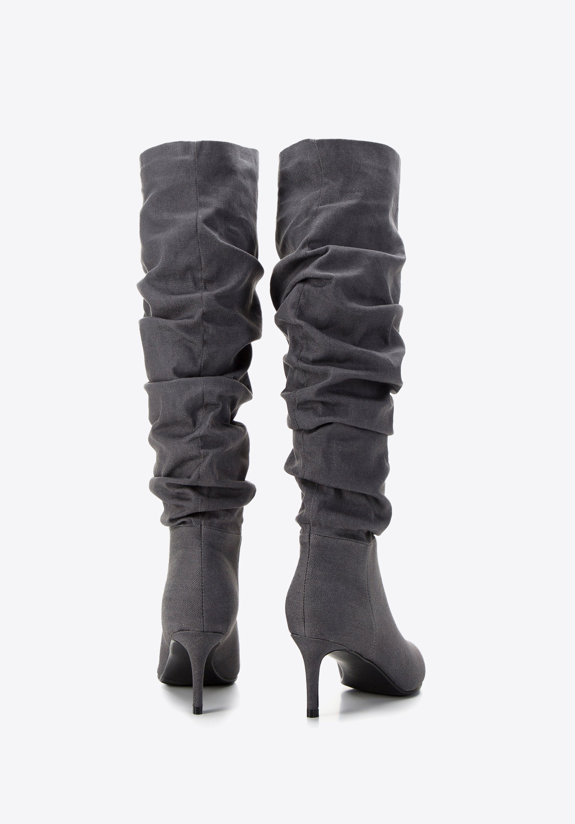 Intrygują, zaskakują i przyciągają wzrok od pierwszego wejrzenia – takie właśnie są nasze damskie kozaki dżinsowe na obcasie. To model, który doda charakteru każdej stylizacji. Jeżeli lubisz oryginalne buty, to nie przejdziesz obok nich obojętnie. Zostały wykonane z tkaniny bawełnianej (jeansu), która doskonale prezentuje się na nodze. W środku mają miękką, przypominającą polar wyściółkę, która zwiększa komfort użytkowania i sprawia, że możesz przechodzić w nich cały dzień. I to pomimo obcasa! Marszczona cholewka ułatwia zakładanie butów na stopy. Co więcej – możesz ją regulować wedle potrzeb, układając mniejsze lub większe fałdy. Nosek w szpic natomiast nadaje lekkości całej sylwetce, a w dodatku jest szalenie modny. Wszystko razem tworzy niezwykle kobiece obuwie, z którym nie będziesz chciała się rozstać!