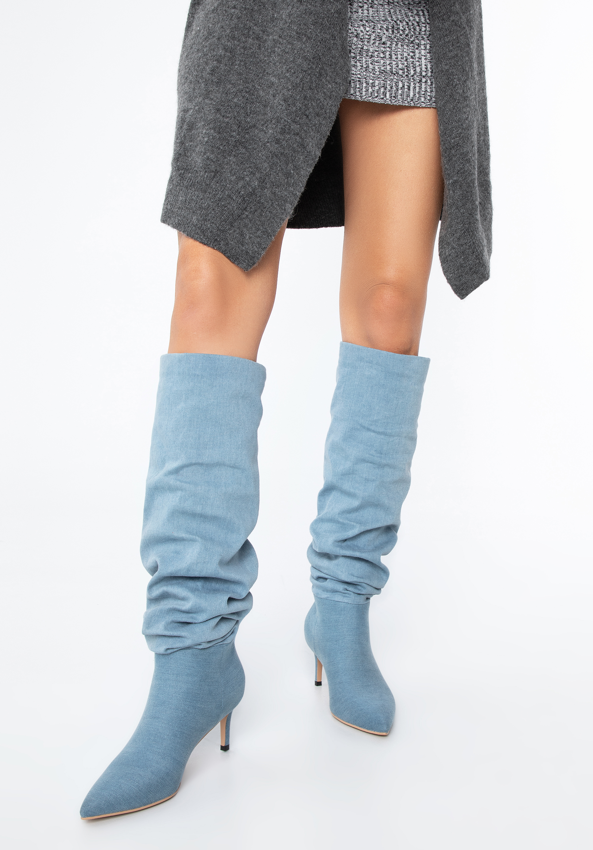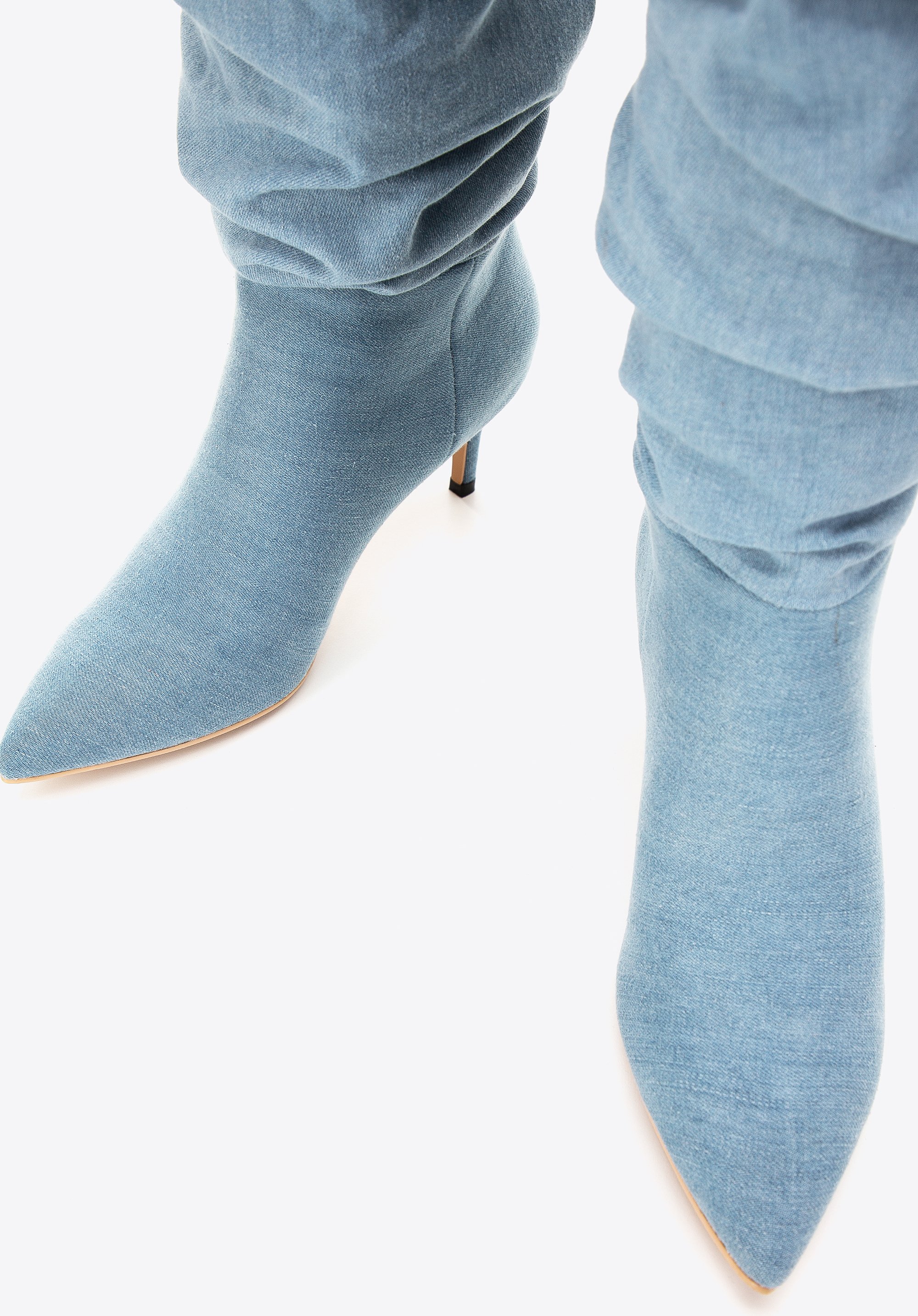 Intrygują, zaskakują i przyciągają wzrok od pierwszego wejrzenia – takie właśnie są nasze damskie kozaki dżinsowe na obcasie. To model, który doda charakteru każdej stylizacji. Jeżeli lubisz oryginalne buty, to nie przejdziesz obok nich obojętnie. Zostały wykonane z tkaniny bawełnianej (jeansu), która doskonale prezentuje się na nodze. W środku mają miękką, przypominającą polar wyściółkę, która zwiększa komfort użytkowania i sprawia, że możesz przechodzić w nich cały dzień. I to pomimo obcasa! Marszczona cholewka ułatwia zakładanie butów na stopy. Co więcej – możesz ją regulować wedle potrzeb, układając mniejsze lub większe fałdy. Nosek w szpic natomiast nadaje lekkości całej sylwetce, a w dodatku jest szalenie modny. Wszystko razem tworzy niezwykle kobiece obuwie, z którym nie będziesz chciała się rozstać!