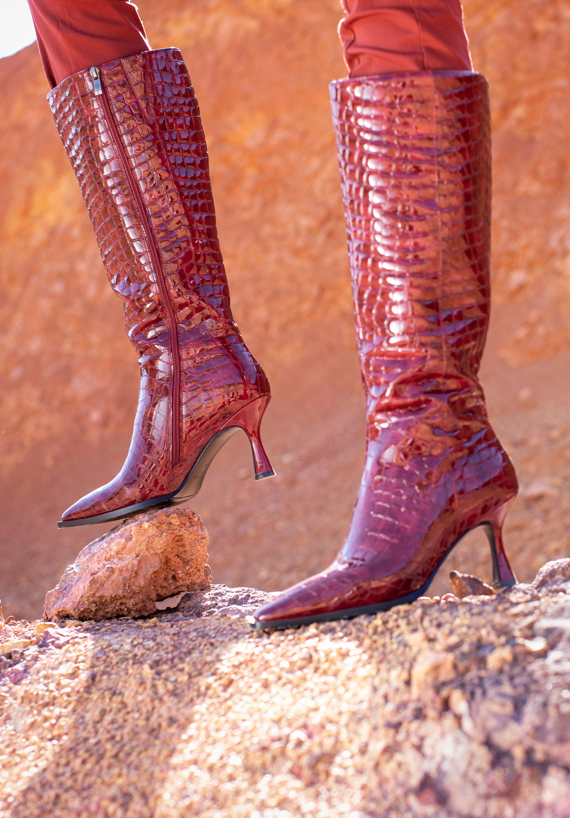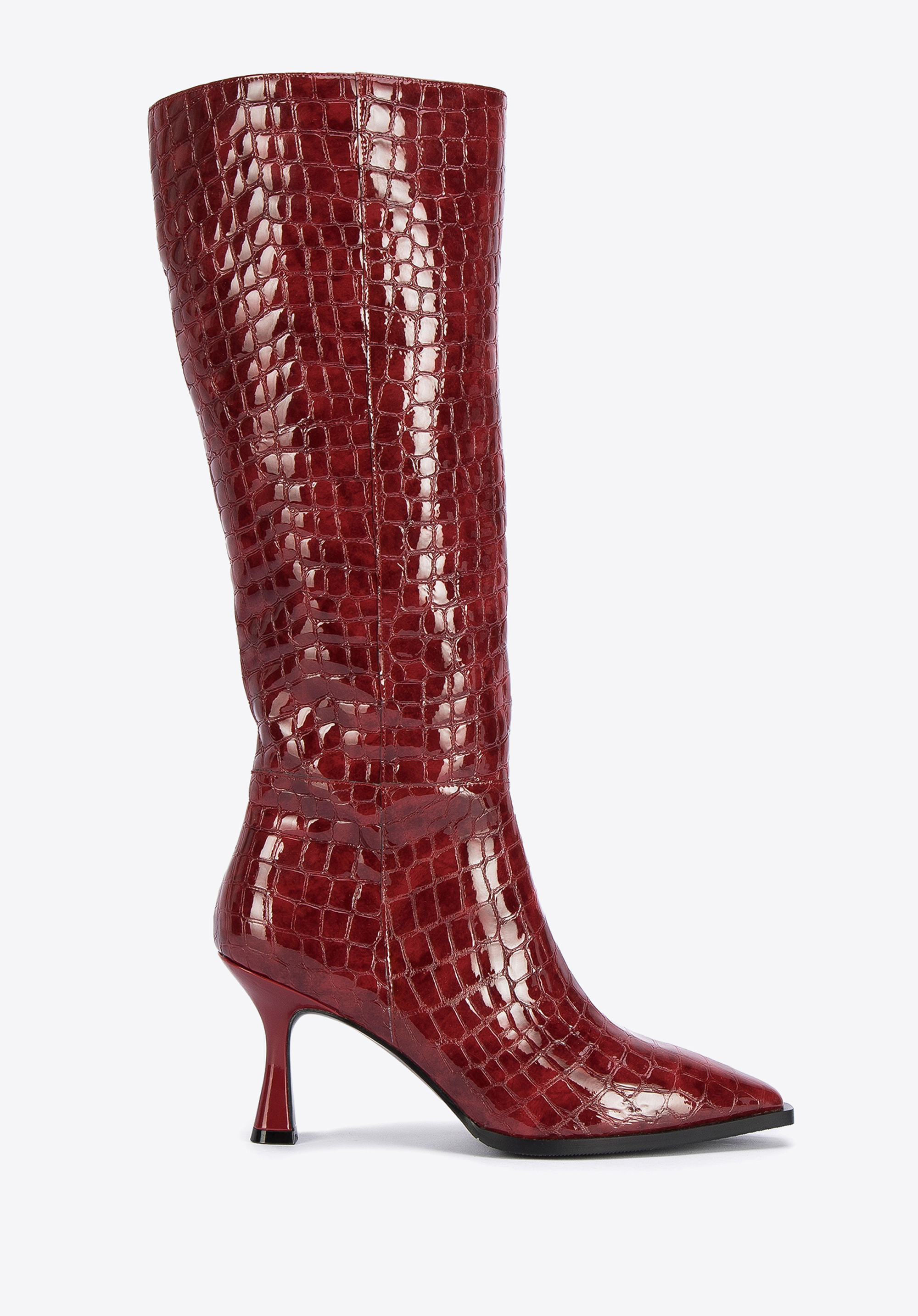 Damskie kozaki z lakierowanej skóry croco na szpilce to świetny wybór dla każdej kobiety lubiącej oryginalne dodatki.