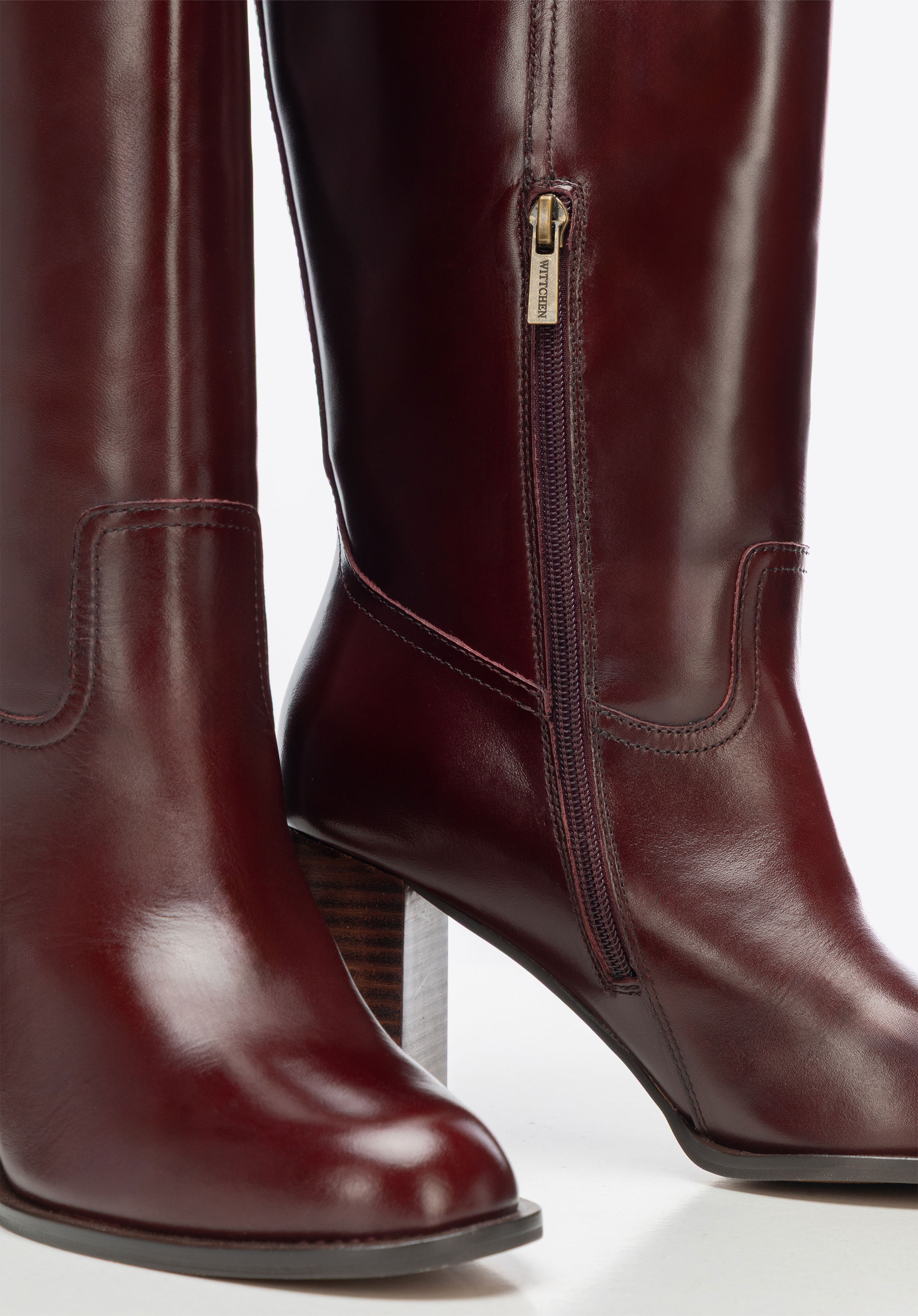Te stylowe kozaki łączą w sobie elegancję i komfort na co dzień. Wykonane ze skóry naturalnej bydlęcej, olejowanej i delikatnie połyskliwej, prezentują się luksusowo, a jednocześnie są odporne na codzienne użytkowanie. Słupek zapewnia stabilność, a nosek w kształcie migdała subtelnie wysmukla stopę, dodając lekkości całej sylwetce. Zamek na boku ułatwia szybkie zakładanie i zdejmowanie, a starannie dobrane przeszycia dodają butom eleganckiego charakteru.