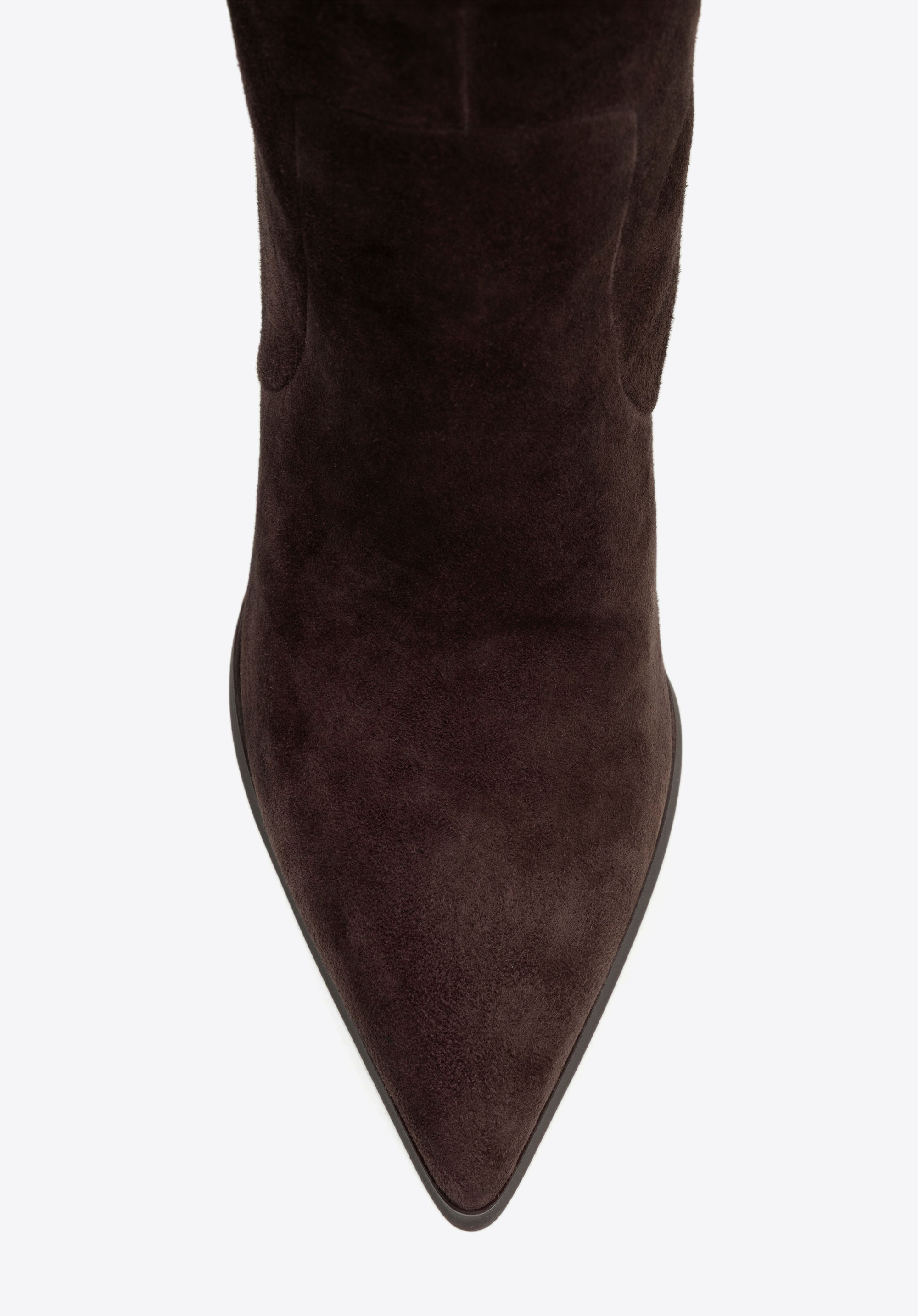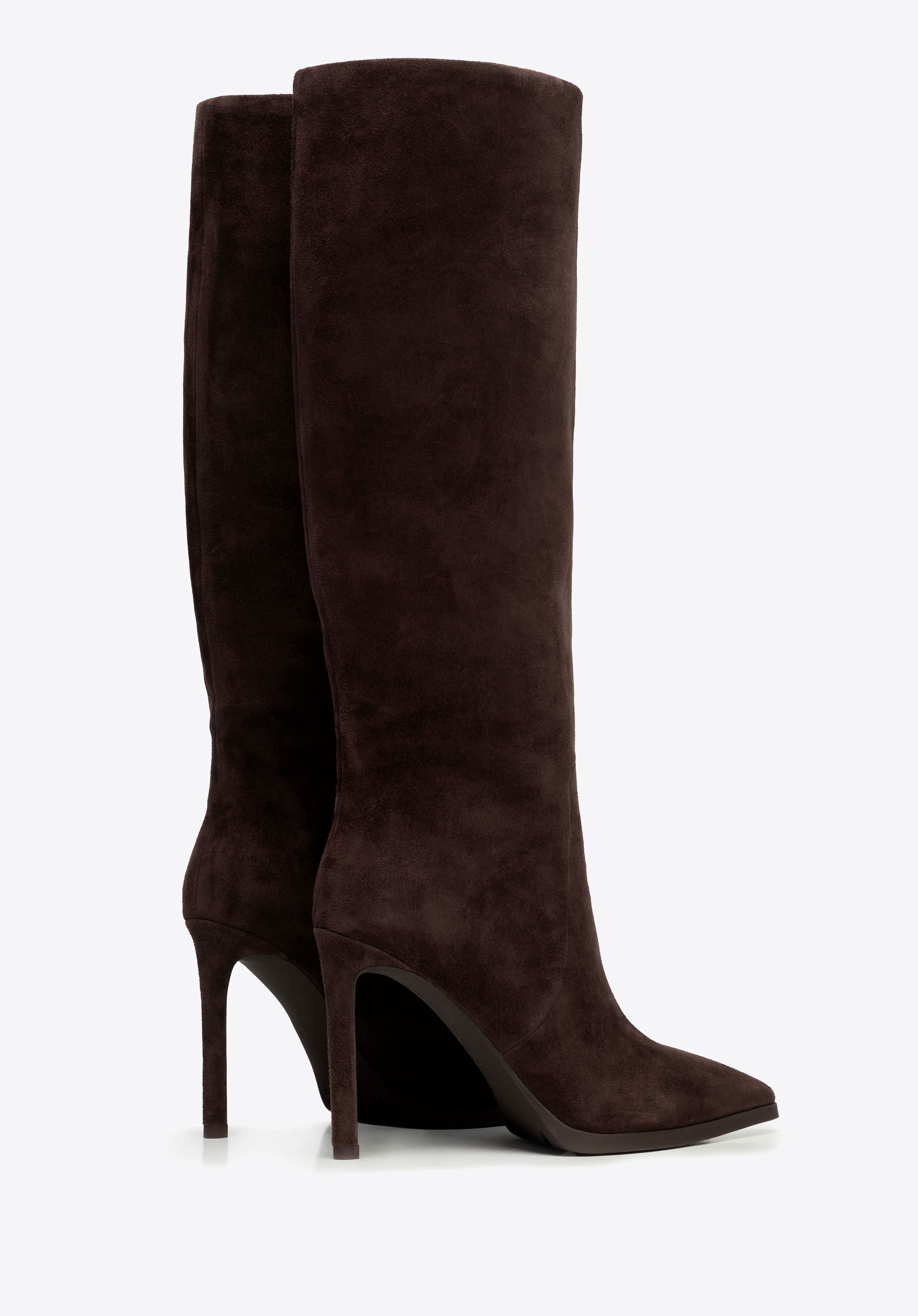 Postaw na ponadczasowy szyk i wyjątkowy komfort z kozakami wykonanymi z naturalnej skóry zamszowej. Ich subtelna faktura i matowe wykończenie podkreślają elegancję, a linia cholewki pięknie modeluje nogę. Szpiczasty nosek i zgrabna szpilka dodają całości kobiecego wdzięku, tworząc klasyczną, harmonijną sylwetkę. Całość utrzymana w jednolitym kolorze – od cholewki po obcas i podeszwę – sprawia, że kozaki prezentują się wyjątkowo stylowo i luksusowo.