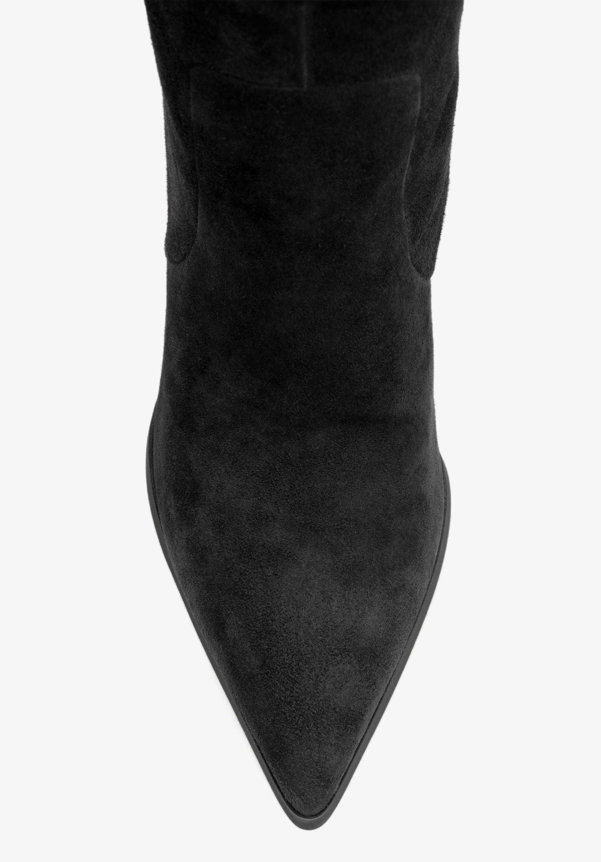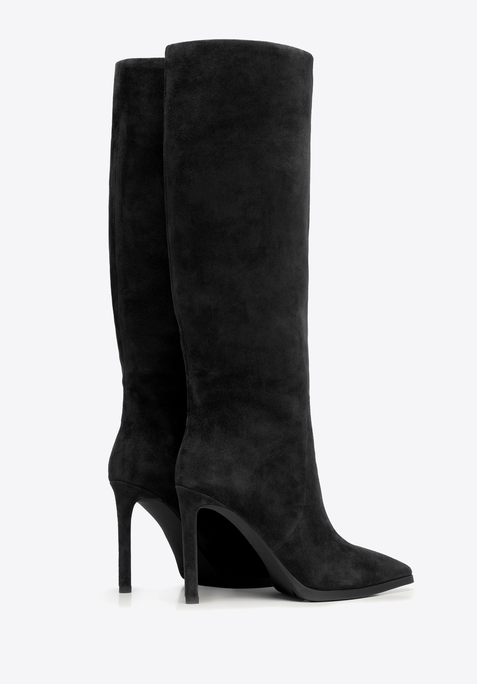 Postaw na ponadczasowy szyk i wyjątkowy komfort z kozakami wykonanymi z naturalnej skóry zamszowej. Ich subtelna faktura i matowe wykończenie podkreślają elegancję, a linia cholewki pięknie modeluje nogę. Szpiczasty nosek i zgrabna szpilka dodają całości kobiecego wdzięku, tworząc klasyczną, harmonijną sylwetkę. Całość utrzymana w jednolitym kolorze – od cholewki po obcas i podeszwę – sprawia, że kozaki prezentują się wyjątkowo stylowo i luksusowo.