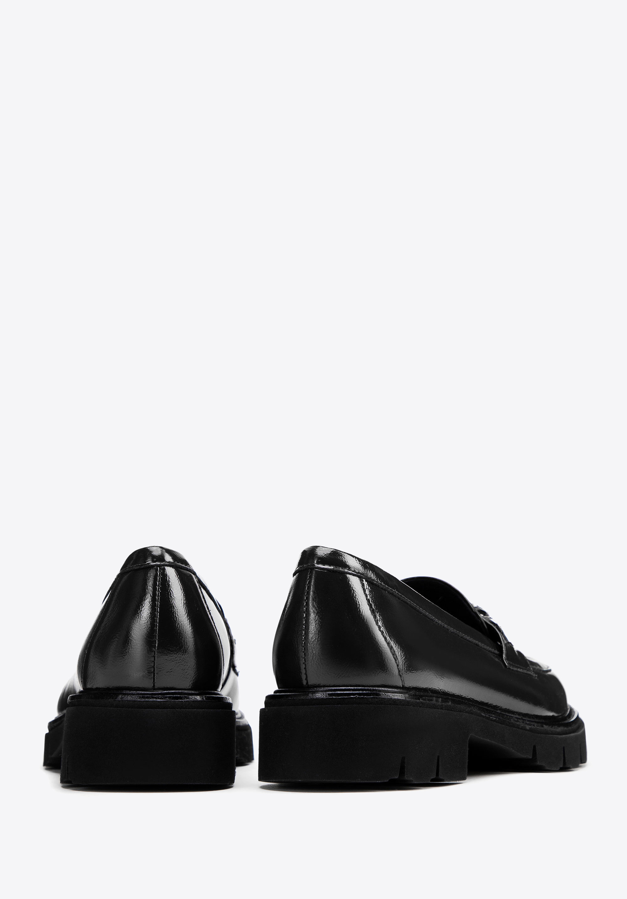 Nasza rada: Mokasyny świetnie wpiszą się w stylizacje zarówno codzienne, jak i bardziej formalne. Załóż je do klasycznych jeansów i białej koszuli, a do tego dodaj elegancki pasek i torebkę z łańcuszkiem, aby subtelnie nawiązać do detalu na butach.