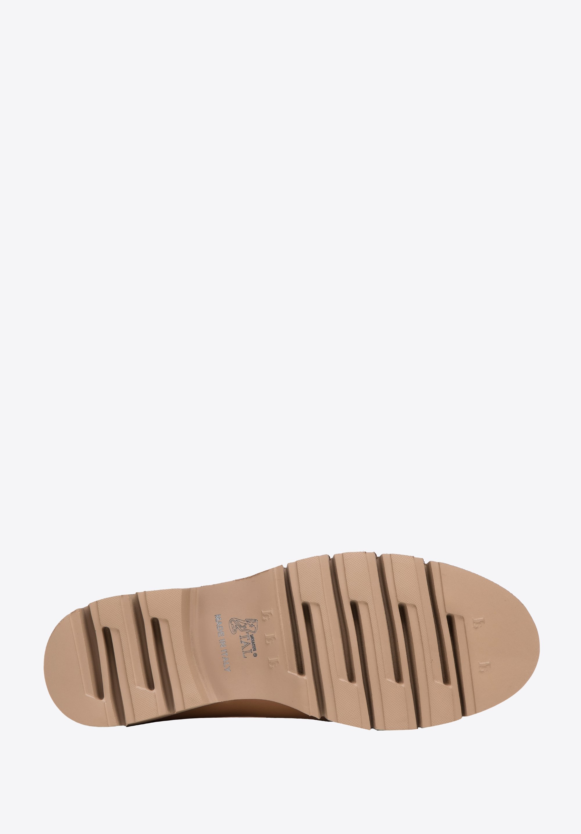 Gruba platforma ze żłobieniem zadba o dobrą przyczepność. Buty są