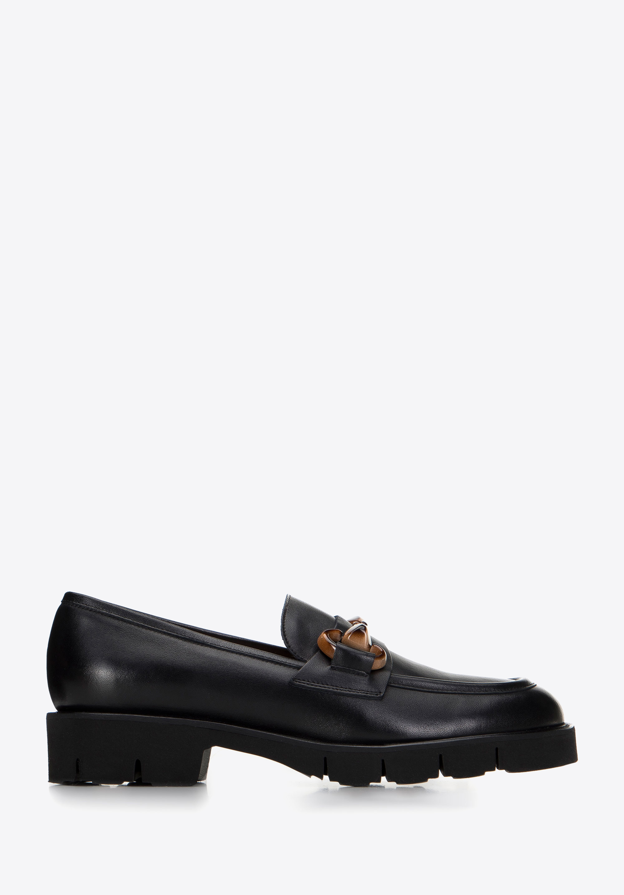 Damskie mokasyny skórzane z klamrą na platformie możesz nosić i do ulubionej minisukienki, i do szerokich spodni i koszuli – w każdej sytuacji będziesz wyglądała szykownie.