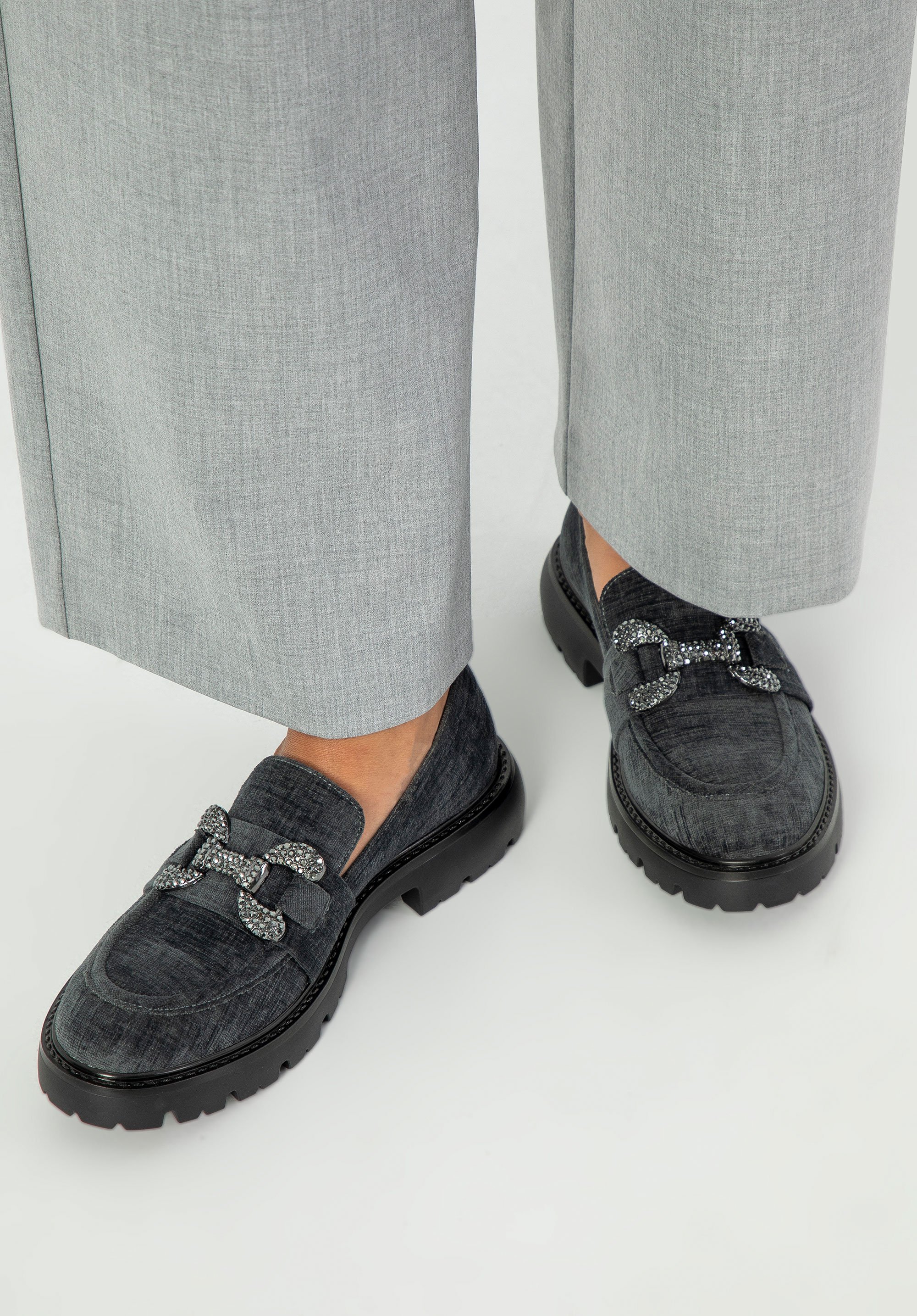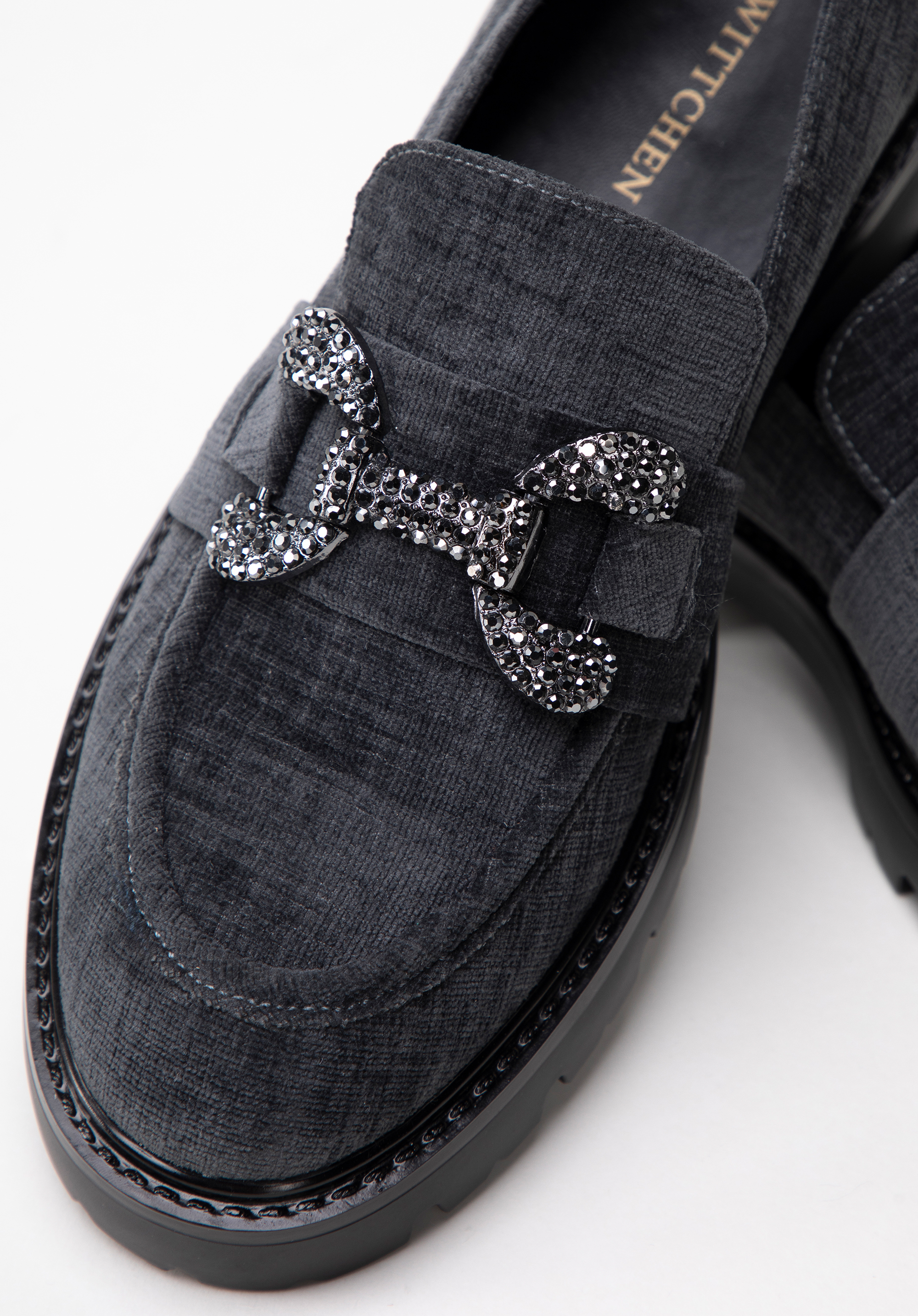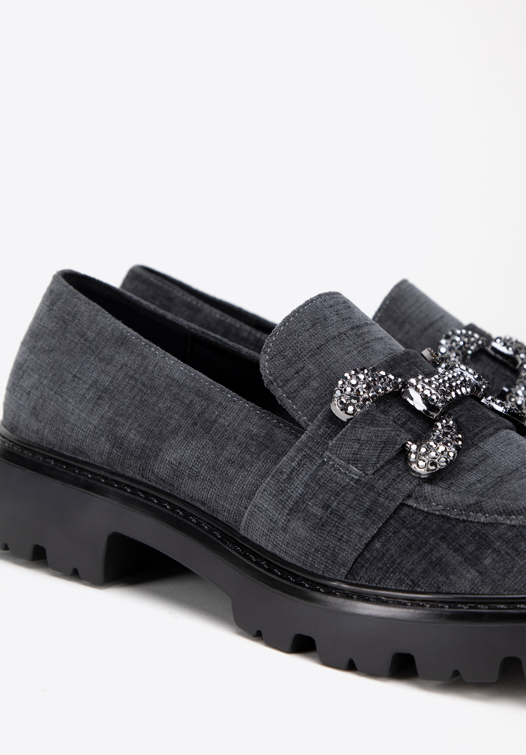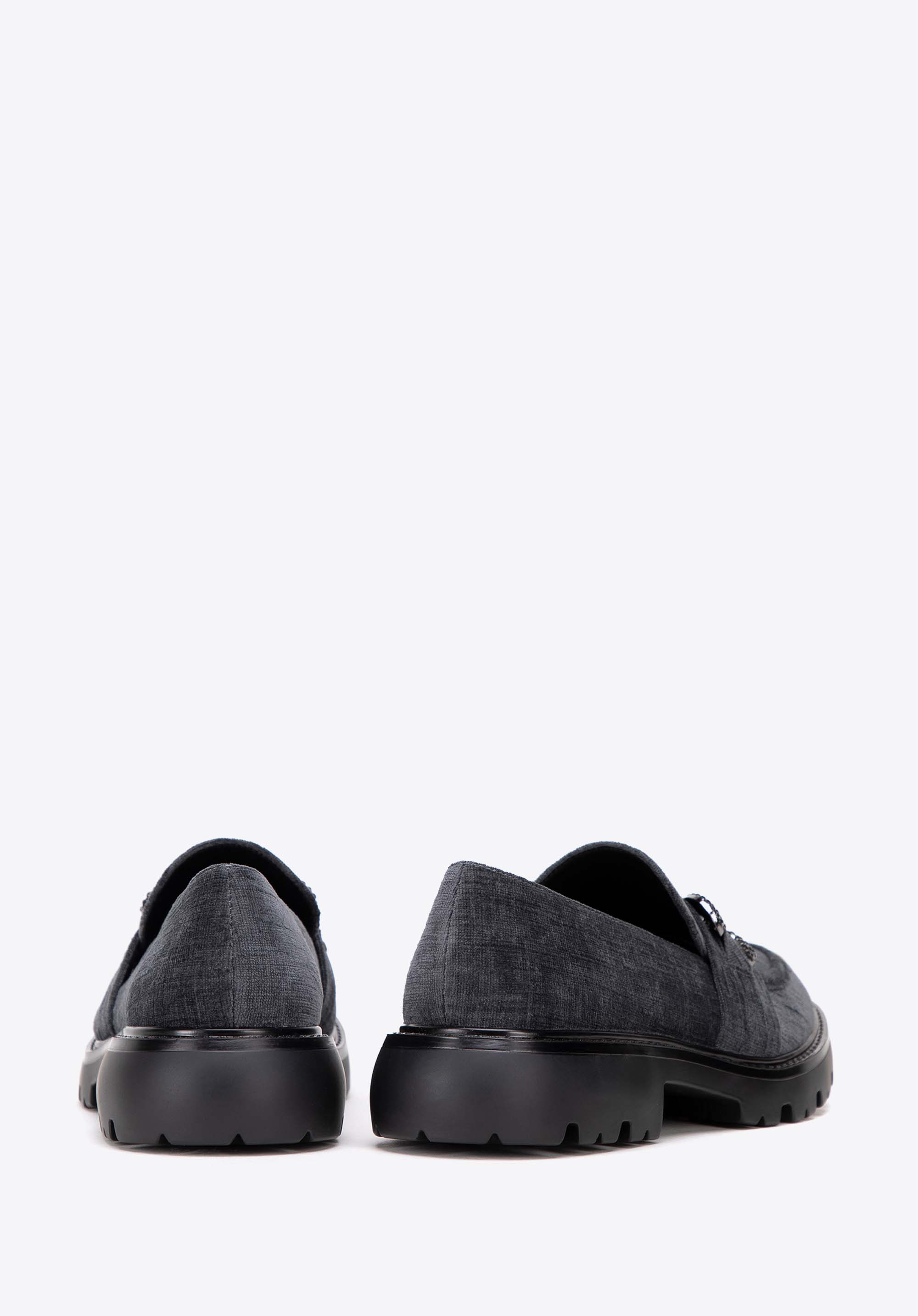 - Mokasyny mają nosek w kształcie migdała, który dodaje im subtelnej elegancji i smukłości, a także optycznie wydłuża nogi.