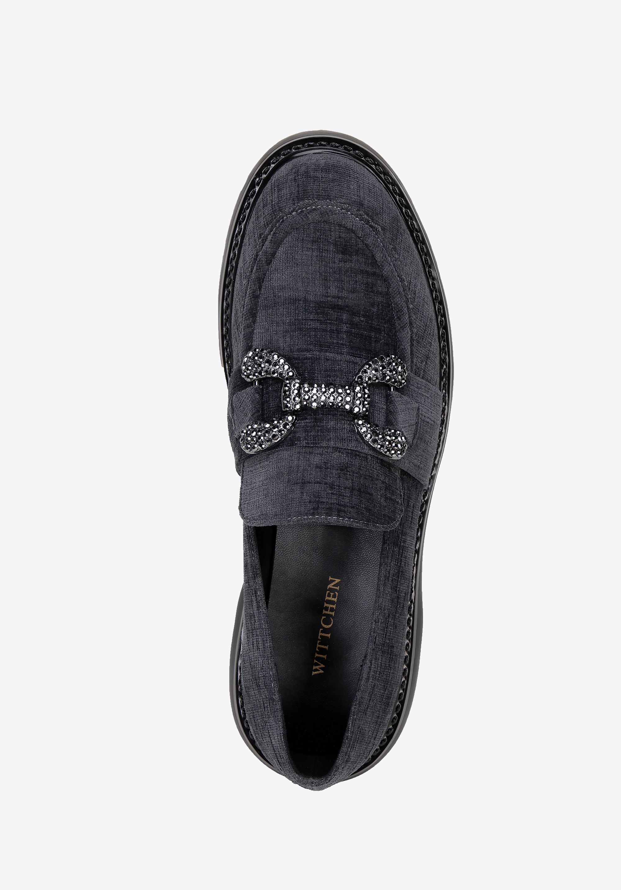 Elegancja i wygoda idą w parze w naszych damskich mokasynach. Wysokiej jakości materiał i solidna podeszwa to gwarancja trwałości i komfortu. Ten model doskonale sprawdzi się w codziennym użytkowaniu oraz na specjalne okazje. Stylowe akcenty na wstawce i unikalne wzory dodają klasy każdej stylizacji.