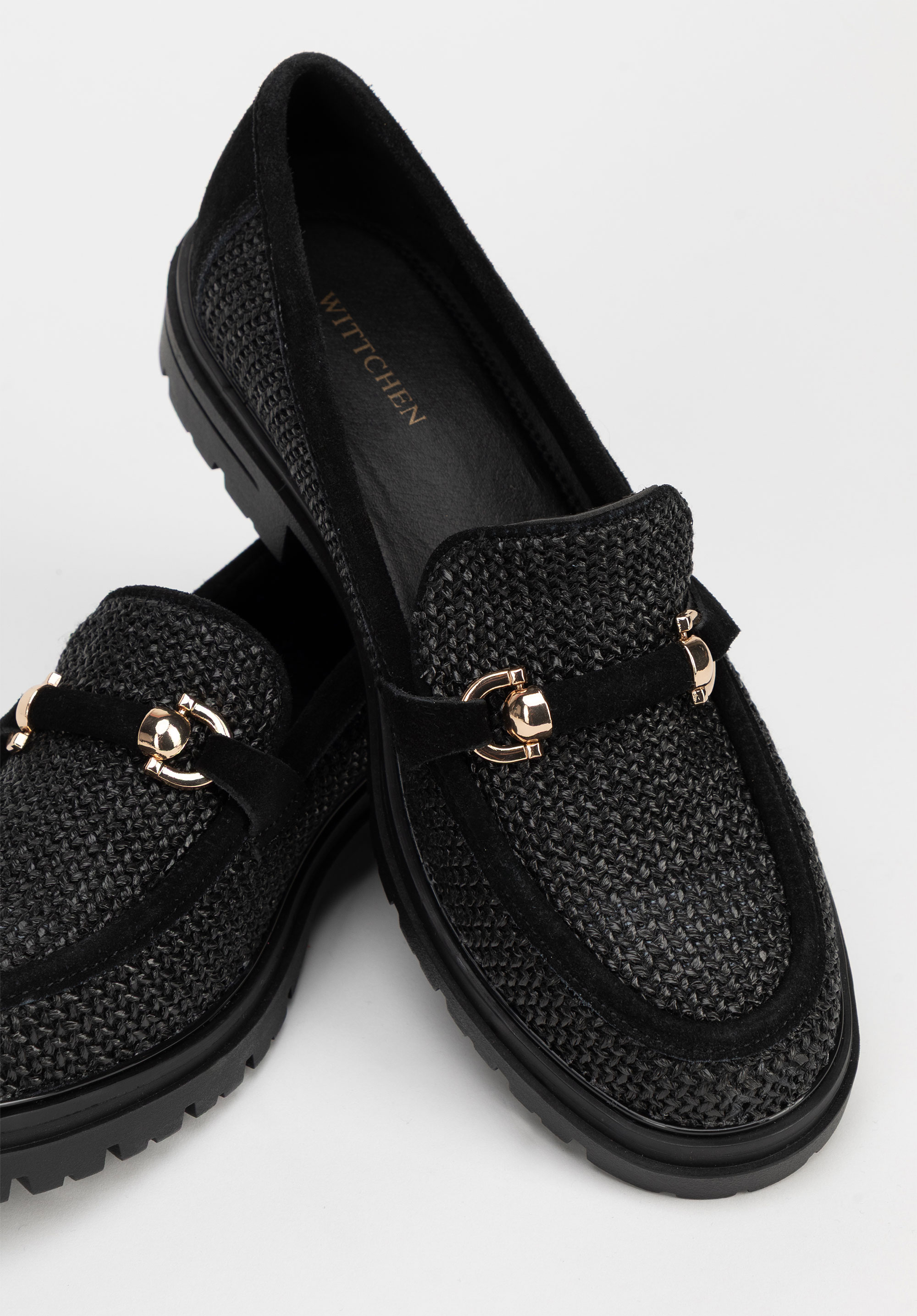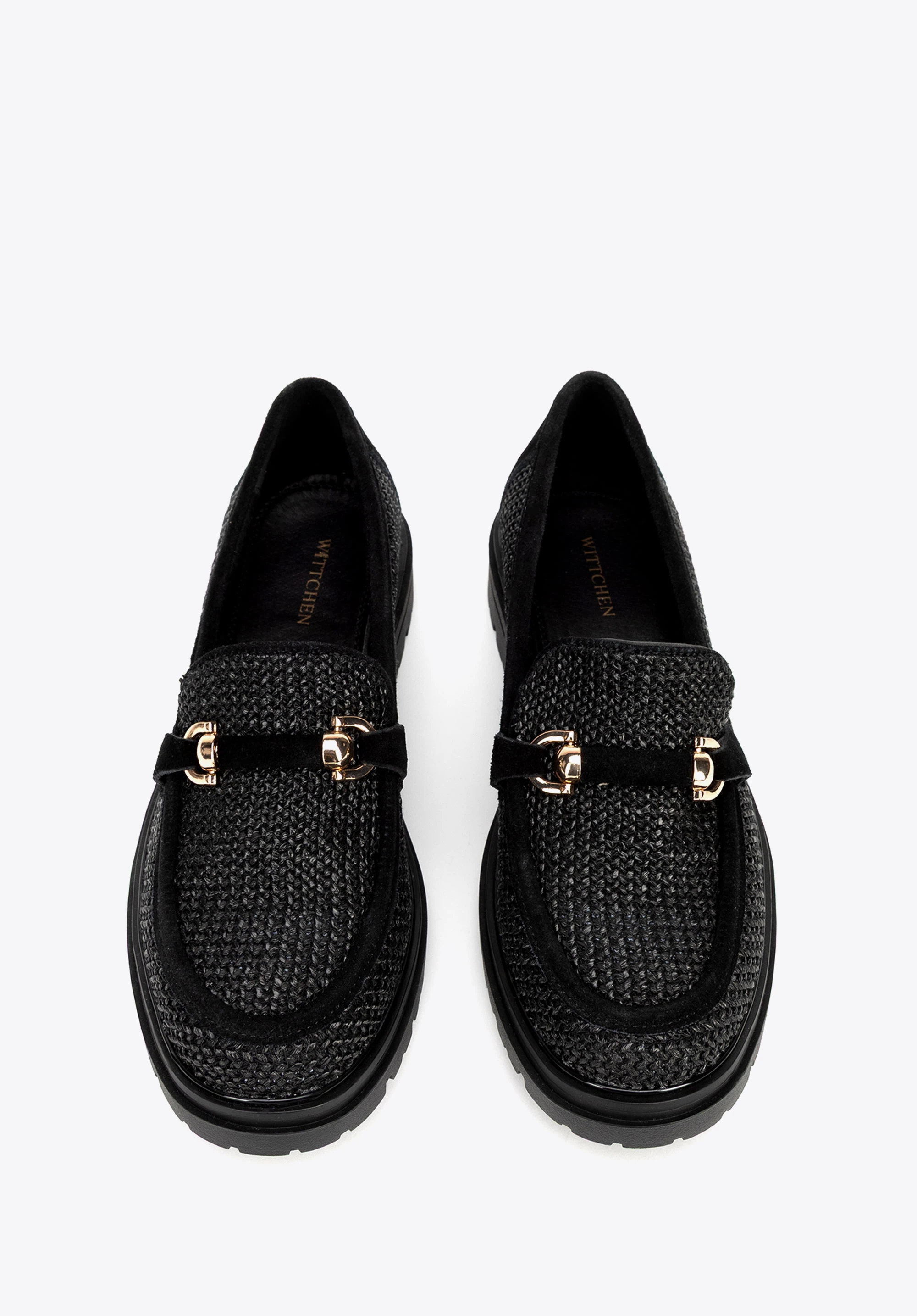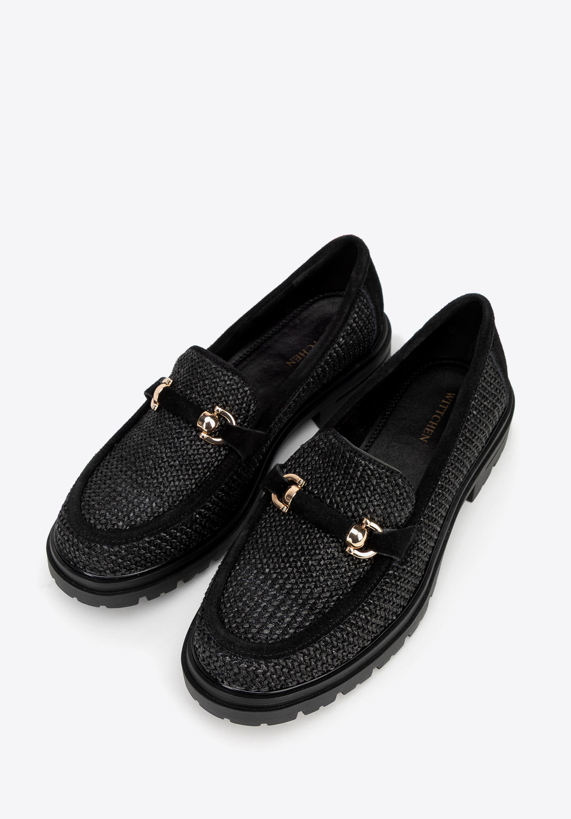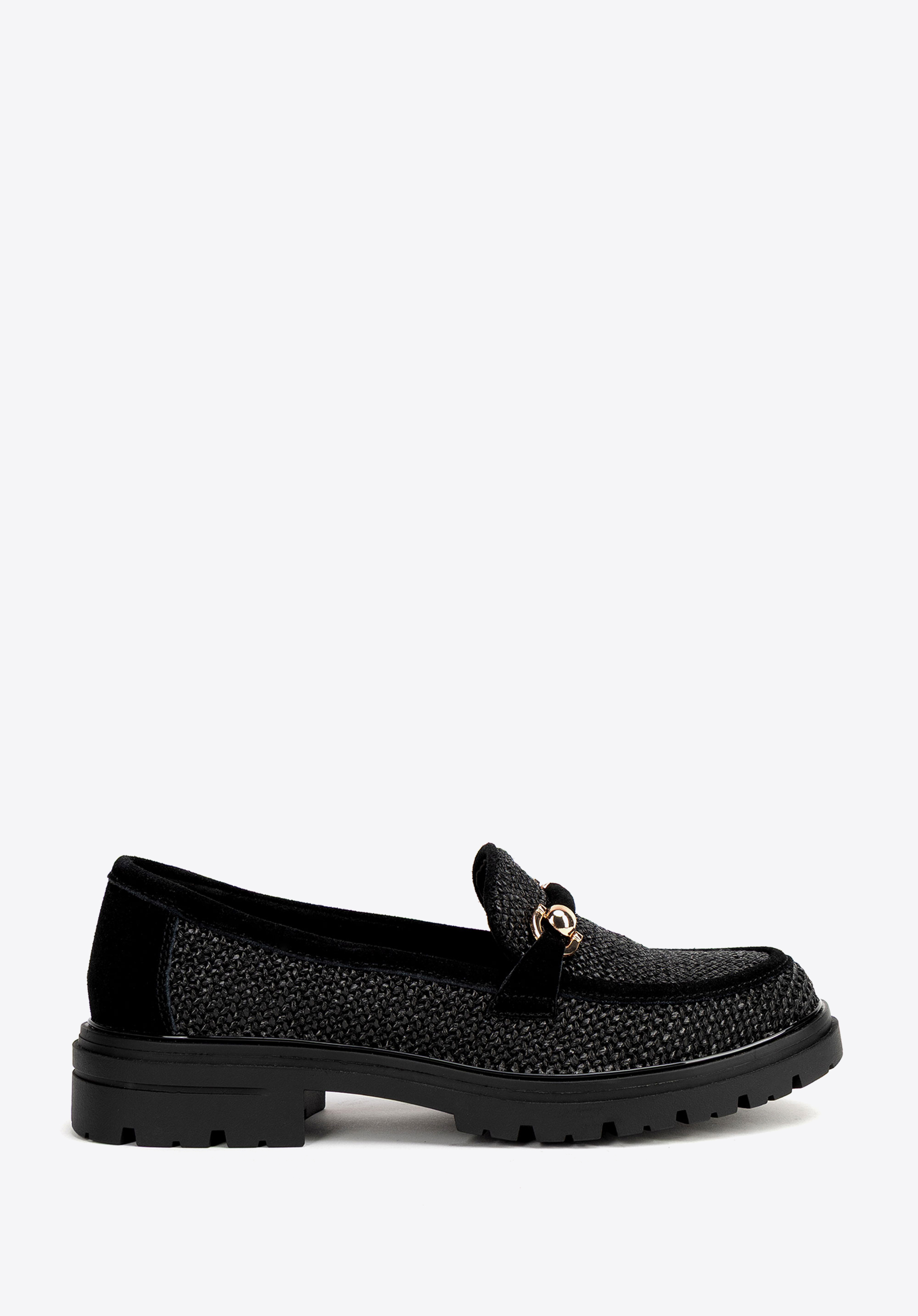 Mokasyny z rafii i zamszu na platformie