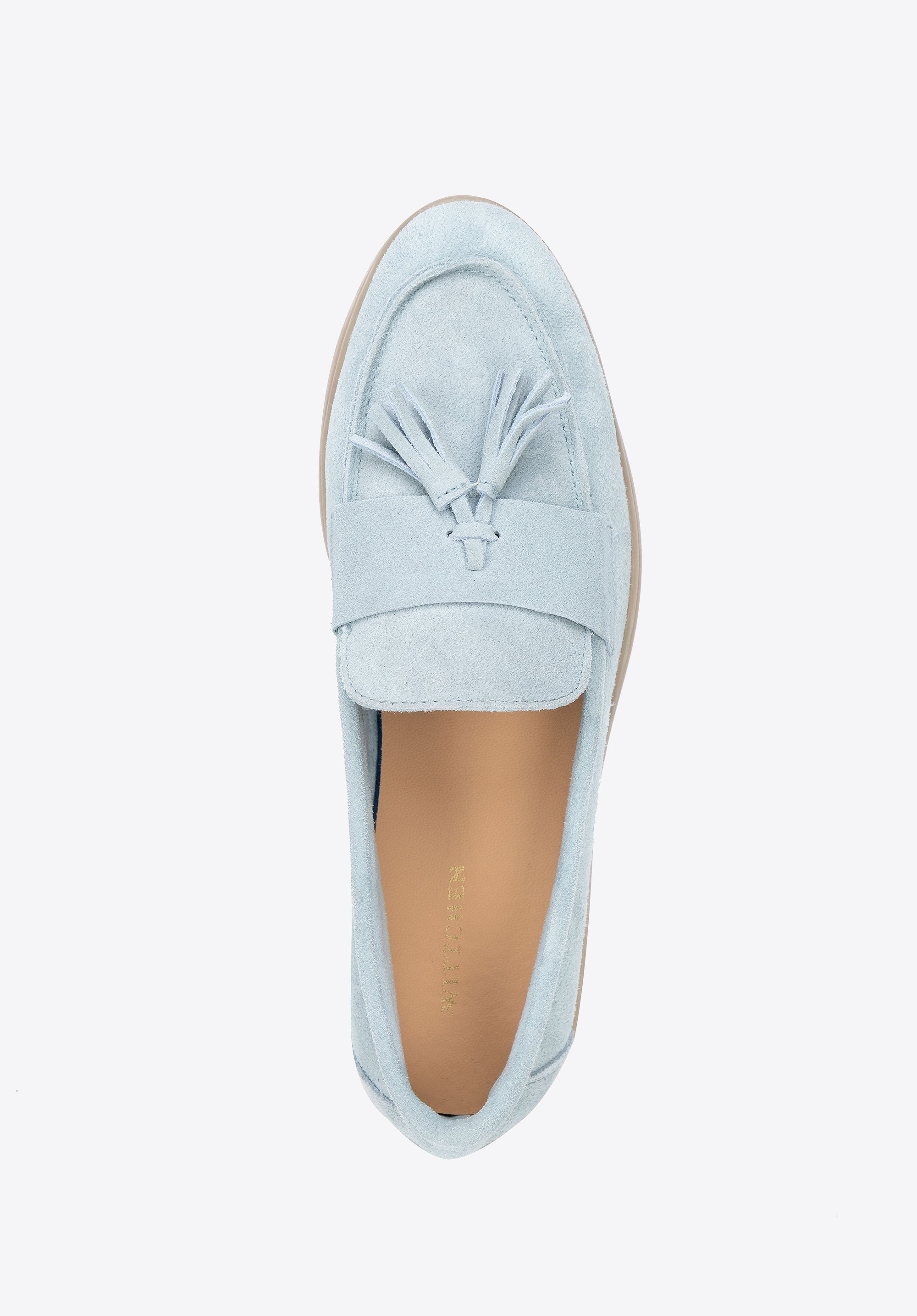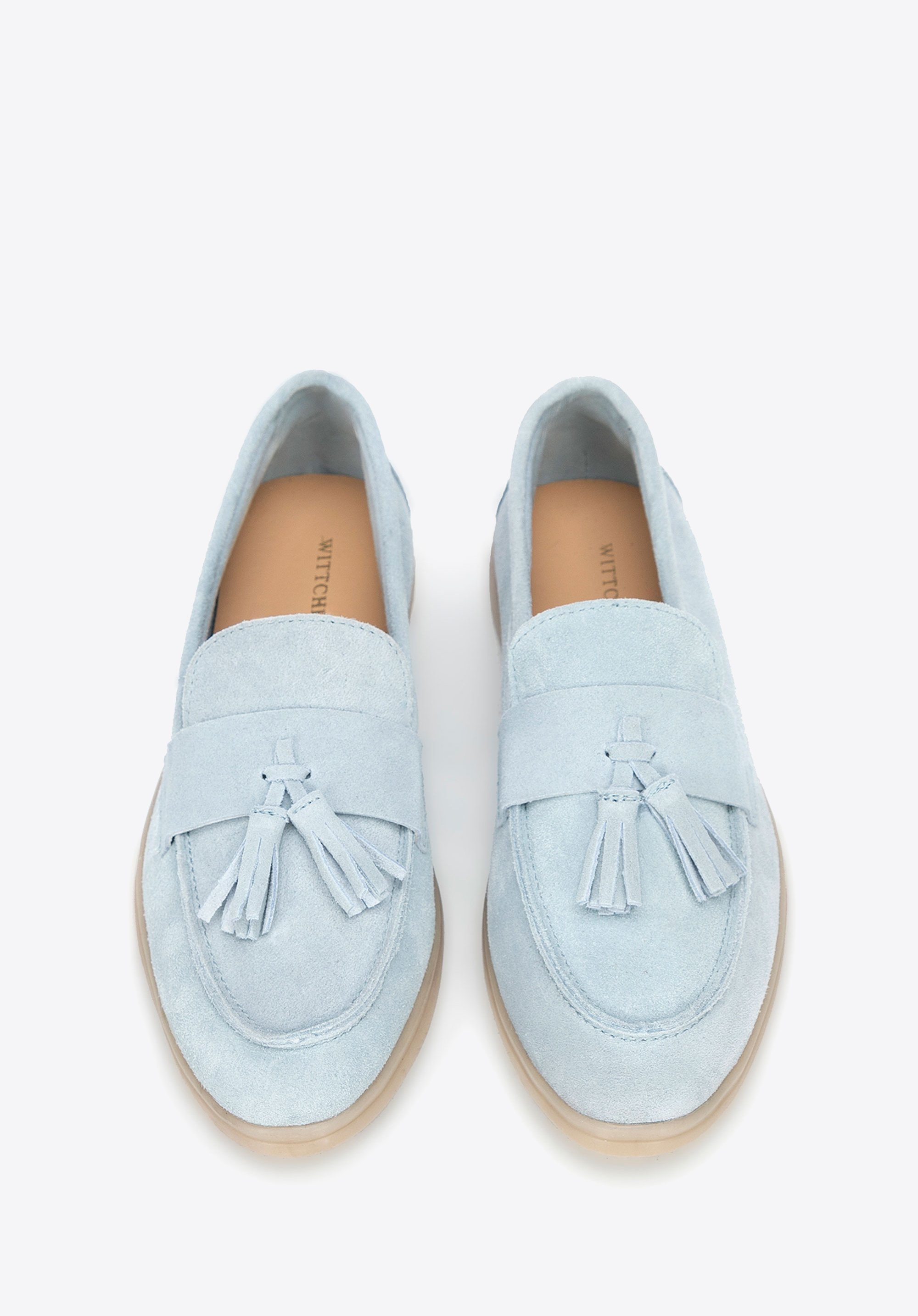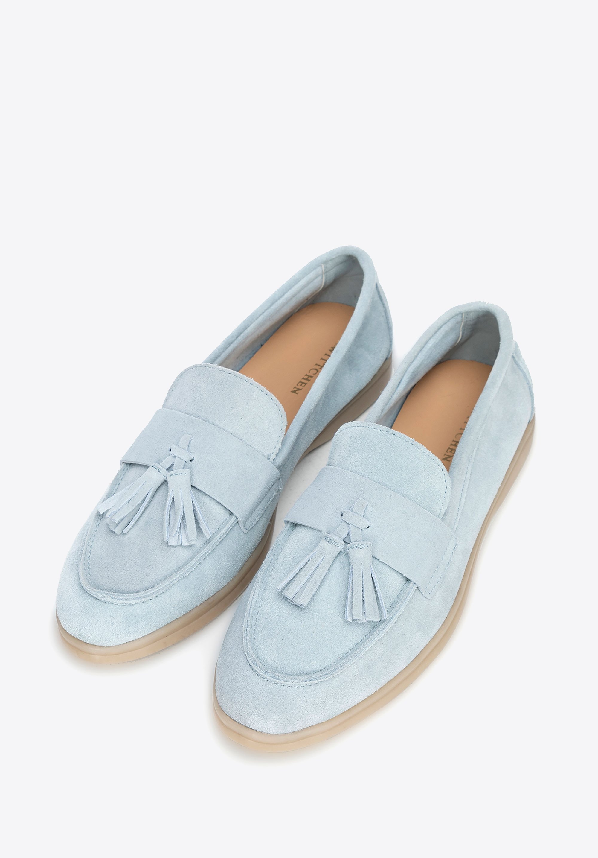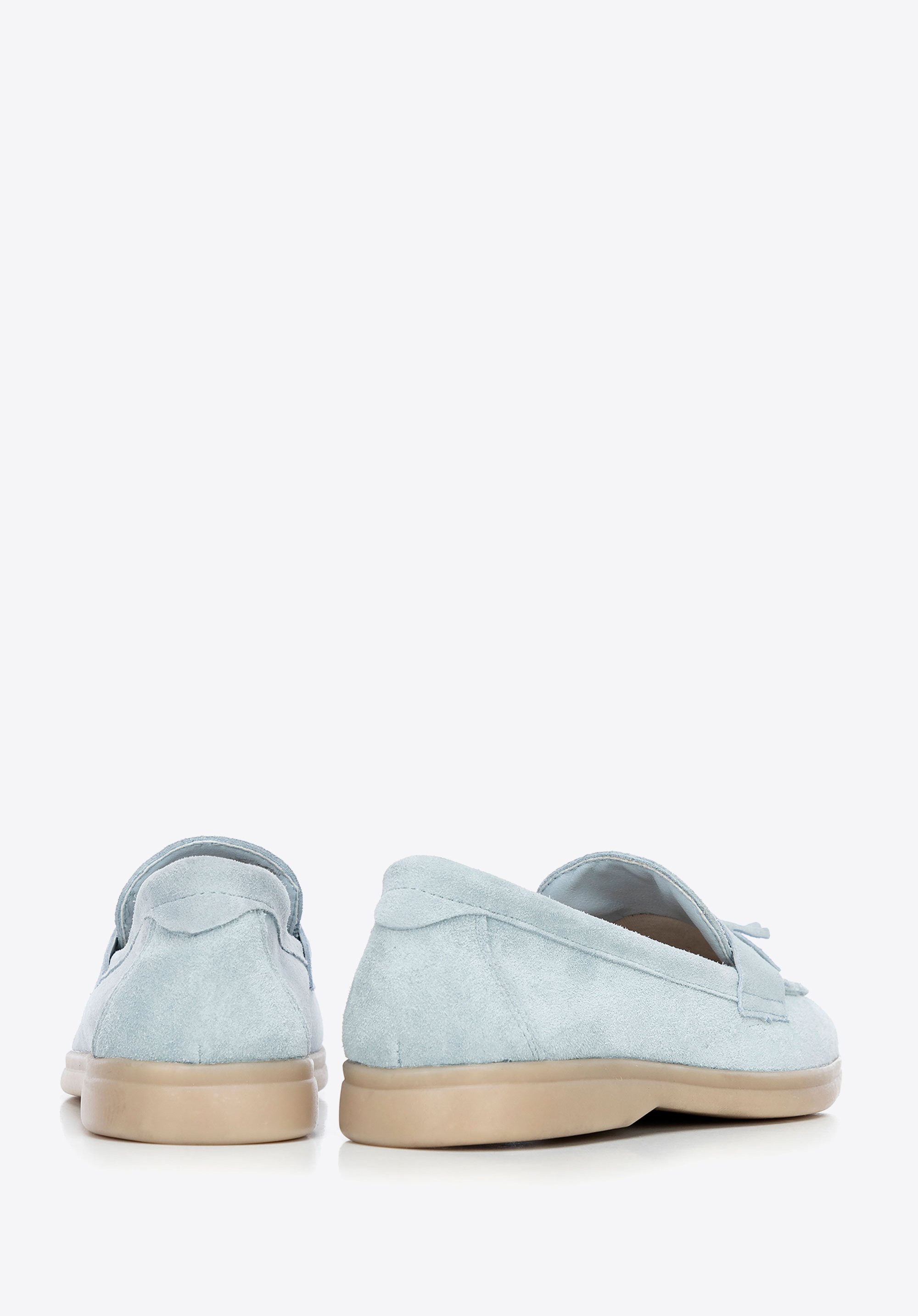 Damskie mokasyny zamszowe z chwostem niebieskie