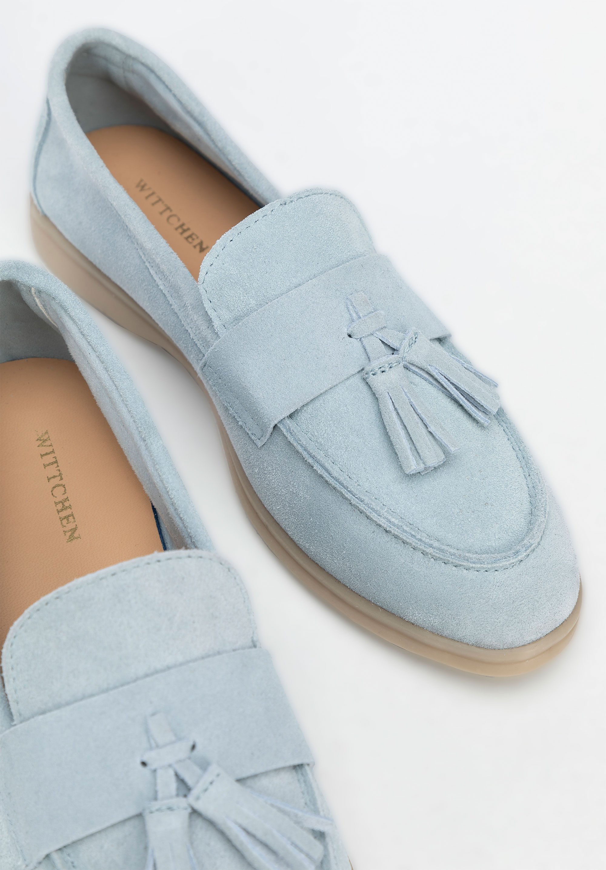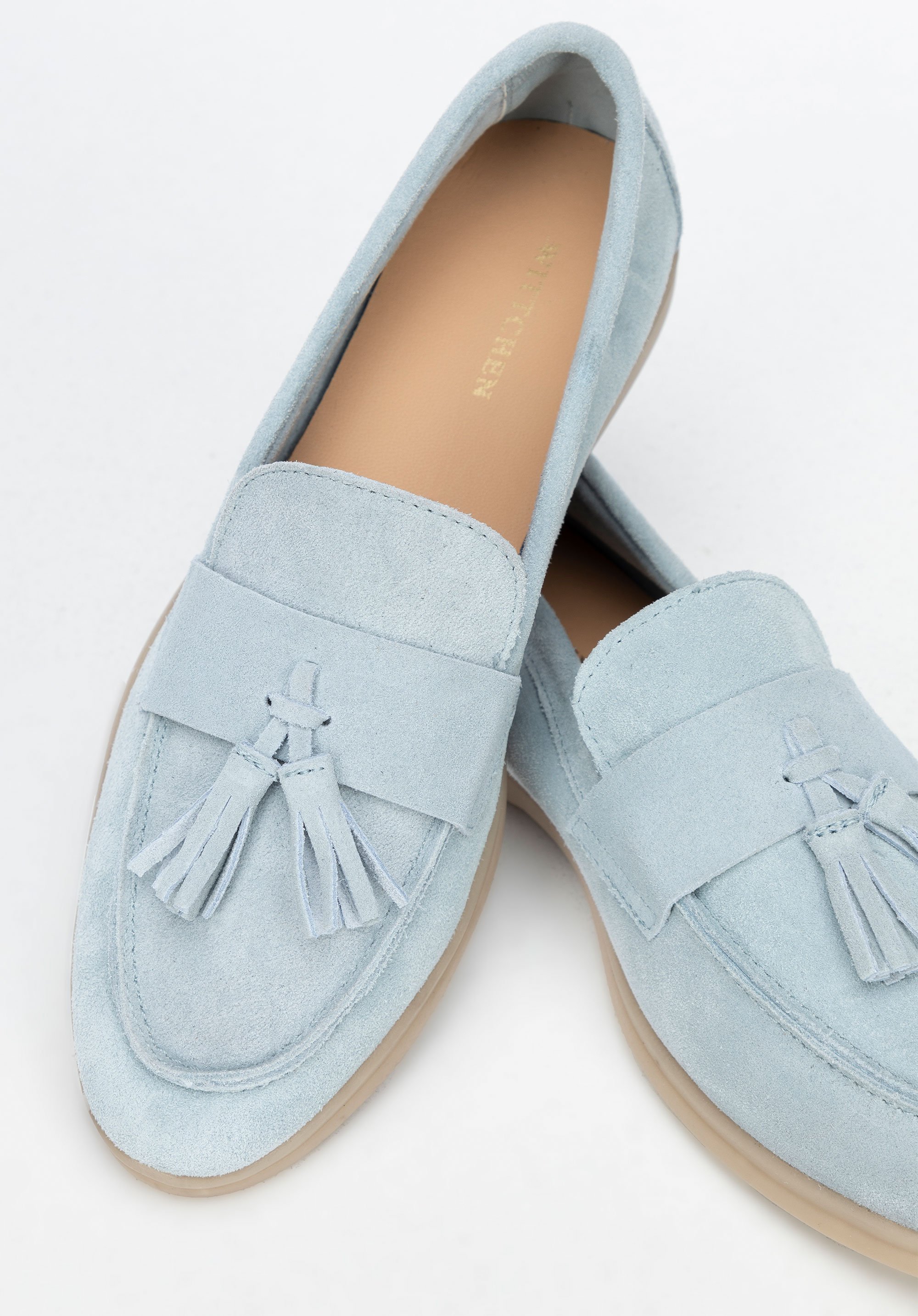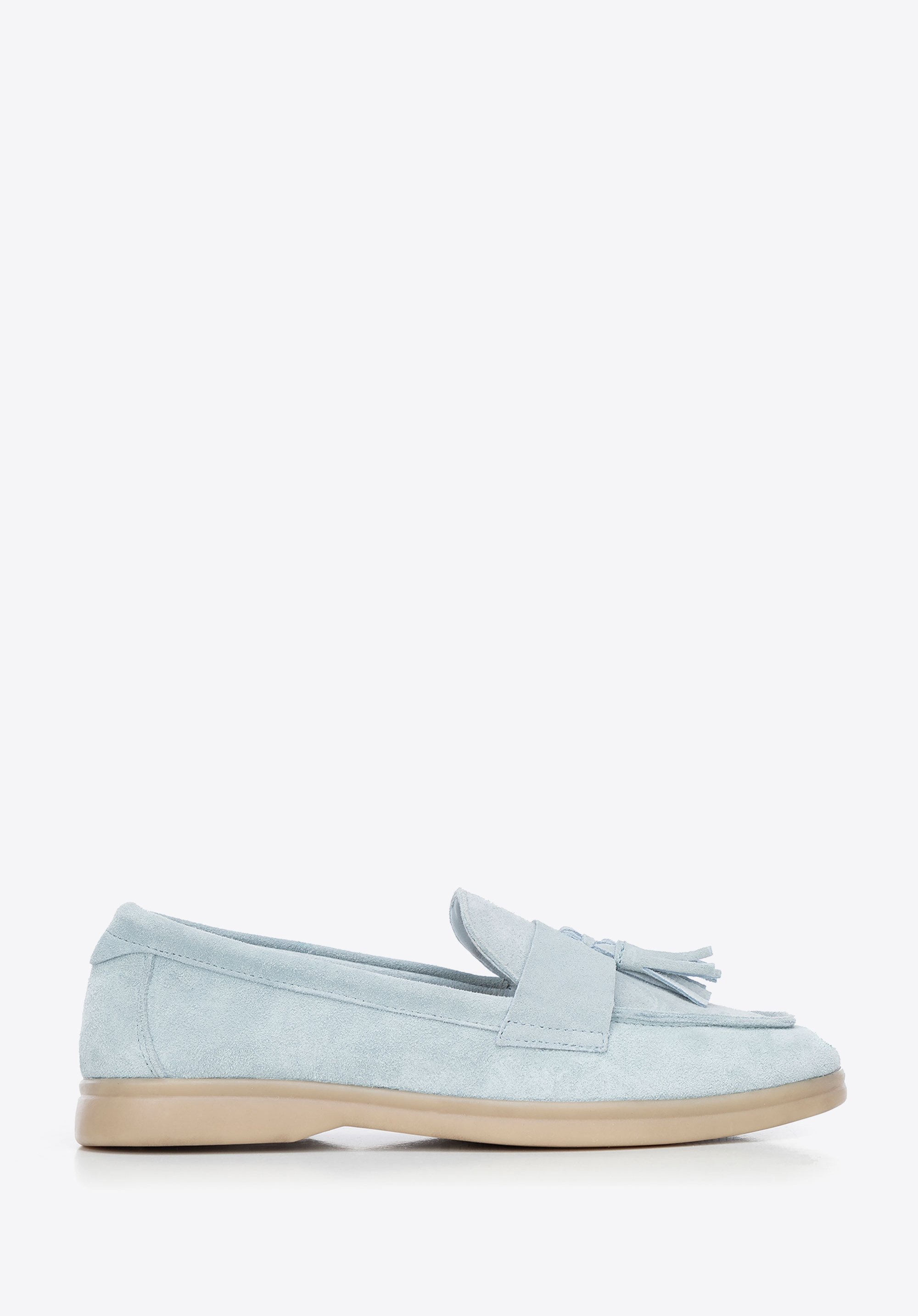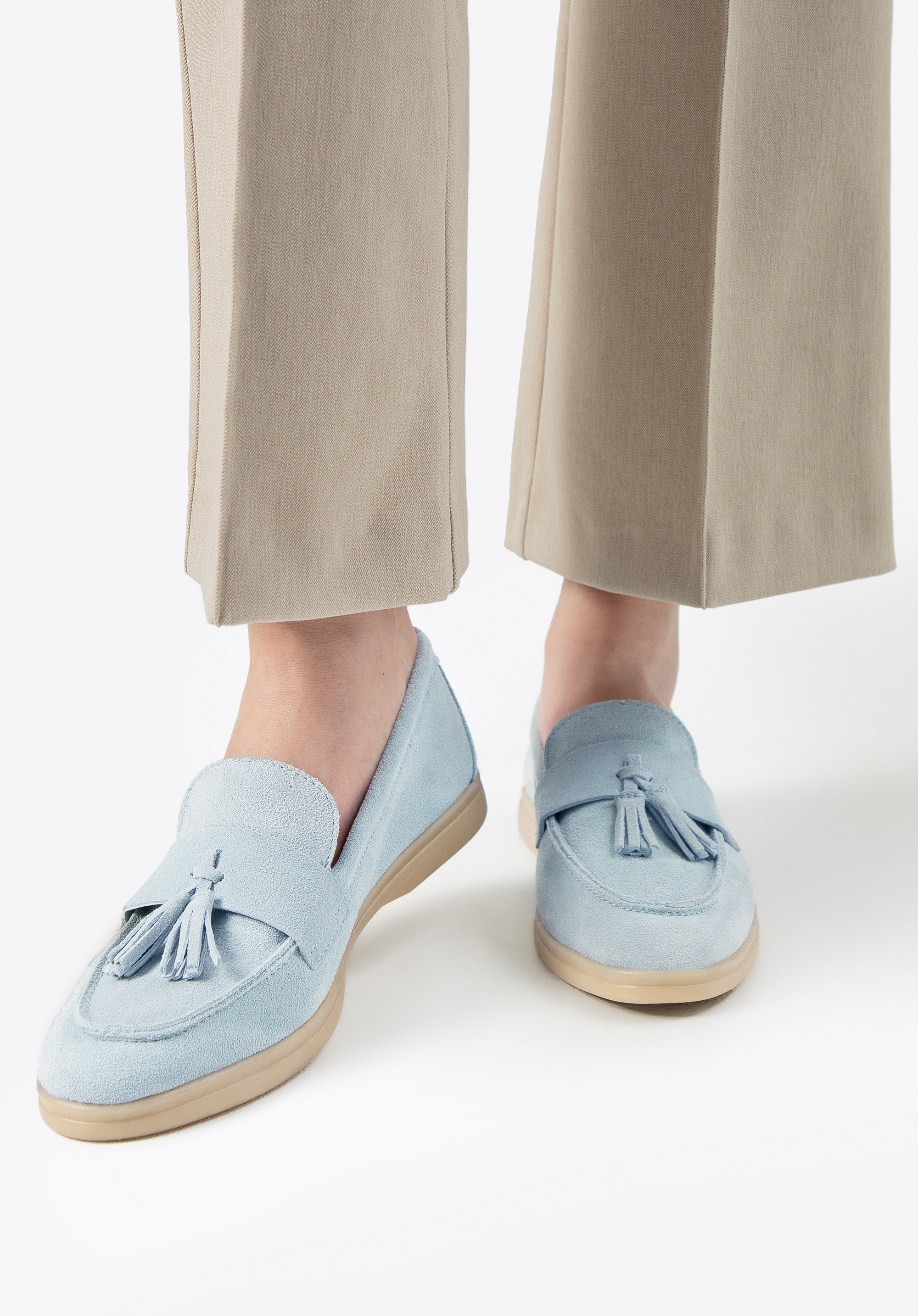 Damskie mokasyny zamszowe z chwostem niebieskie