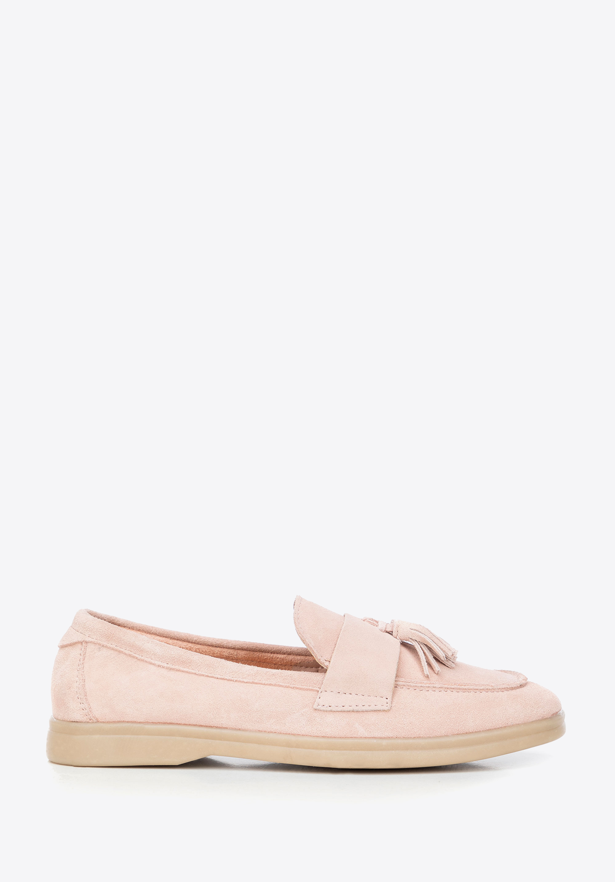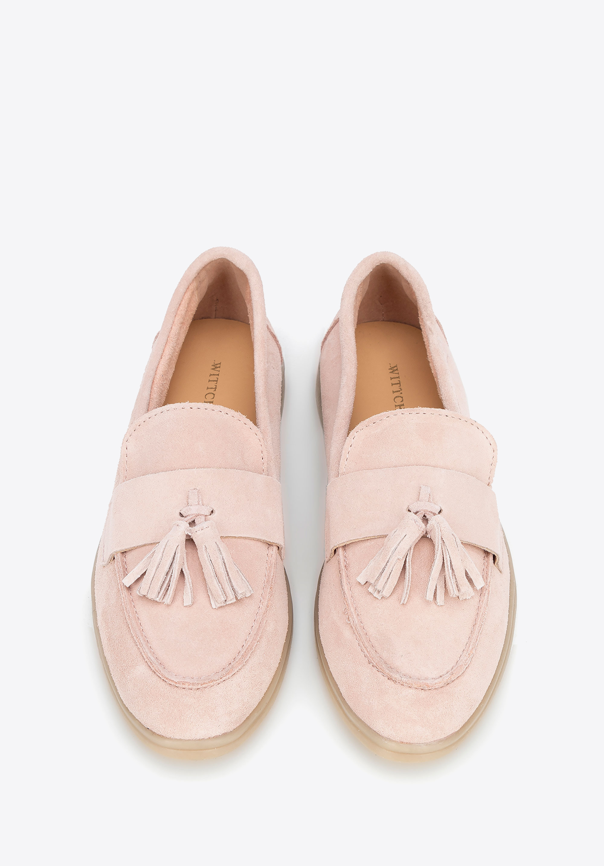 Damskie mokasyny zamszowe z chwostem różowe