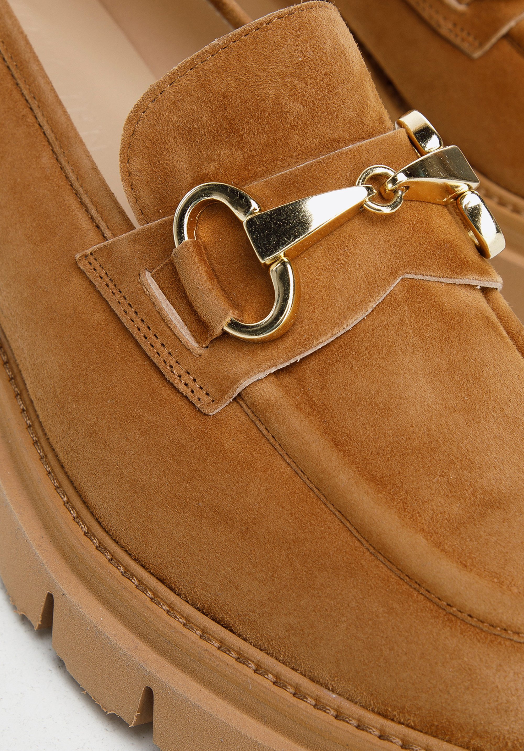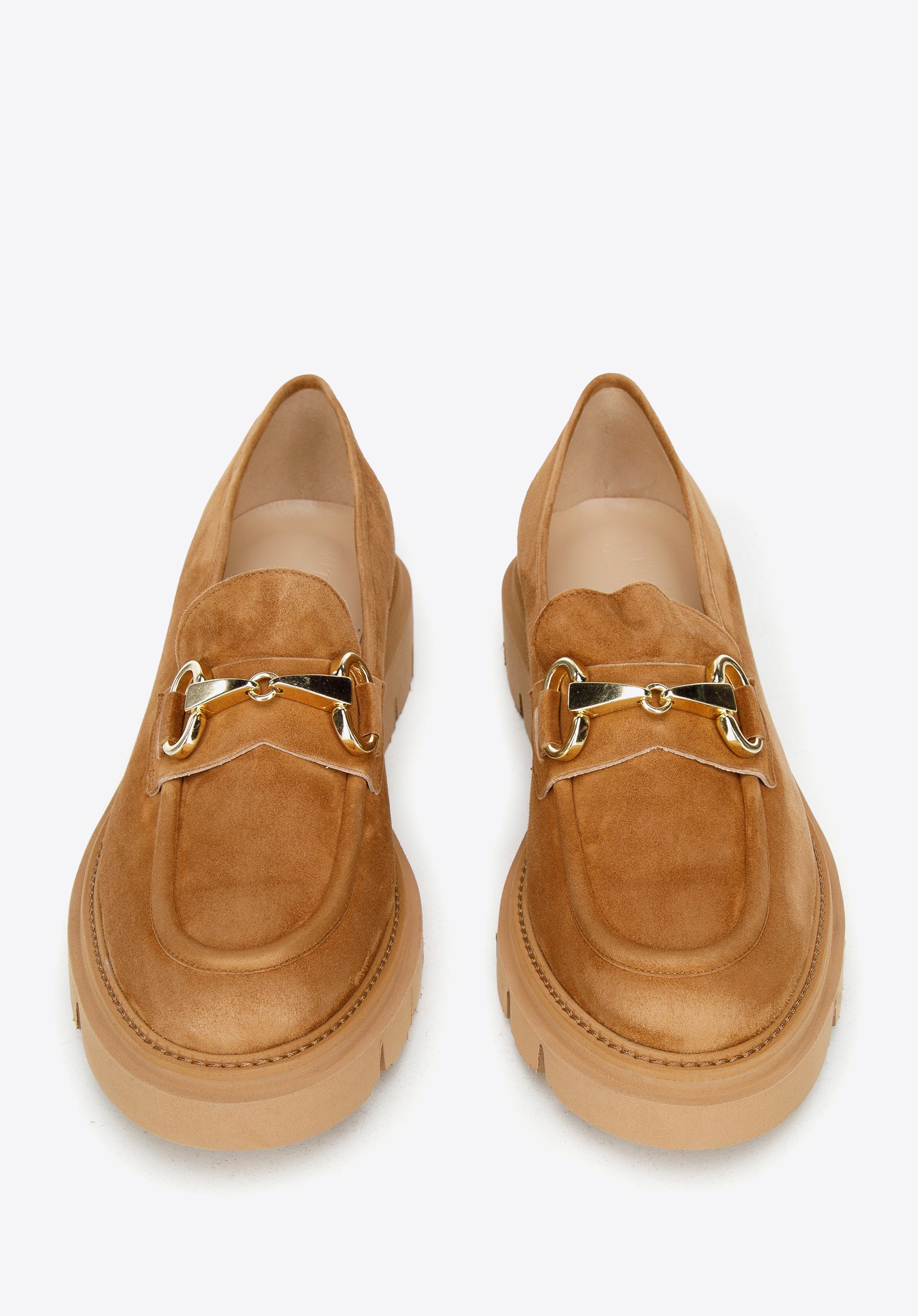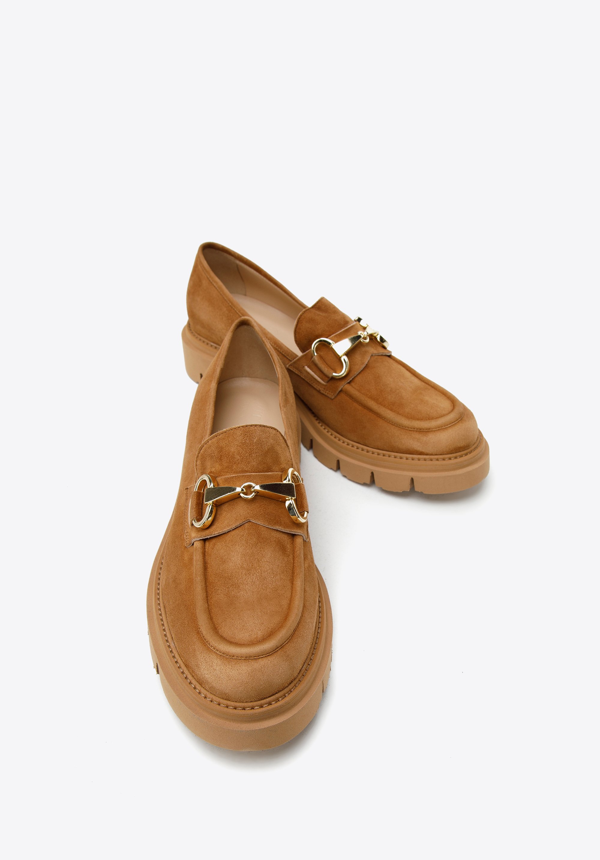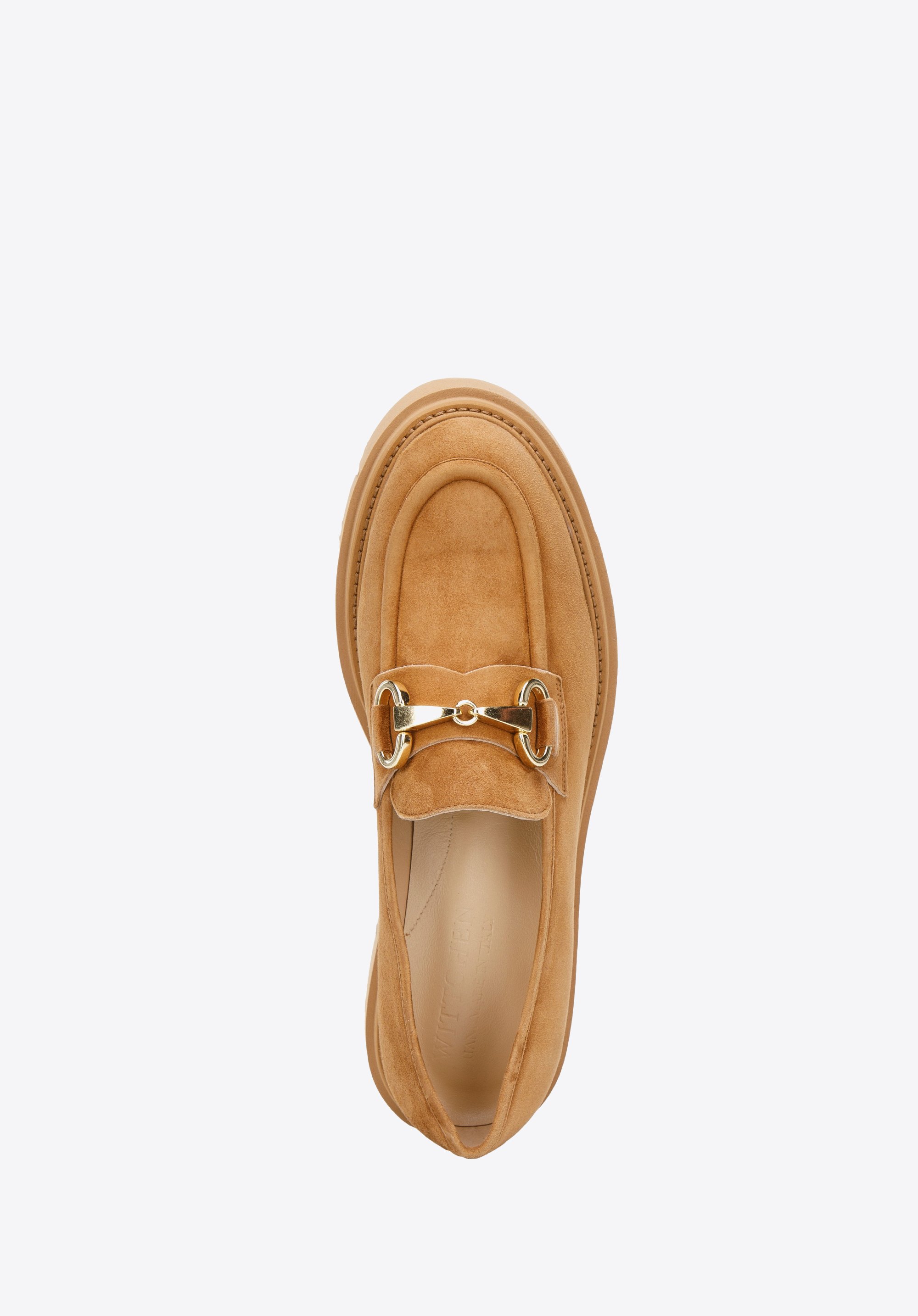 platforma ze żłobieniem wygląda masywnie, ale jest lekka, a także bardzo elastyczna. Jak przystało na klasyczne mokasyny,