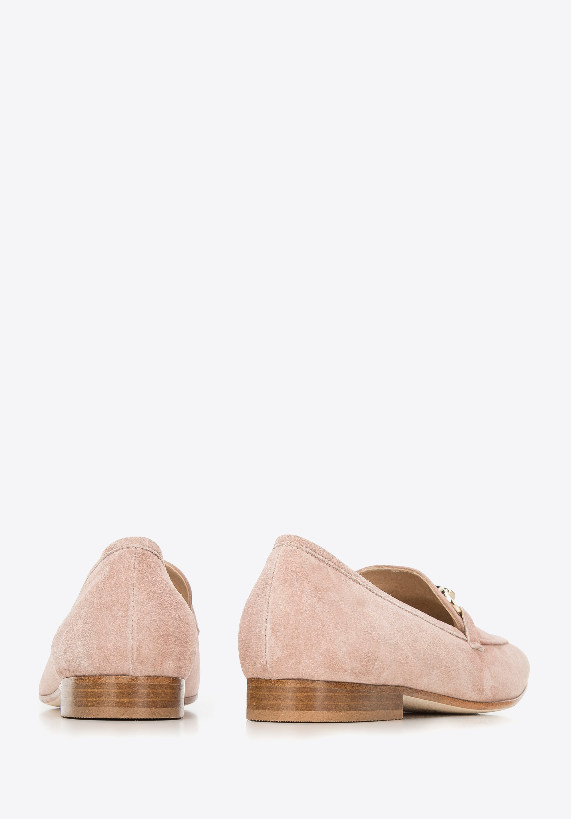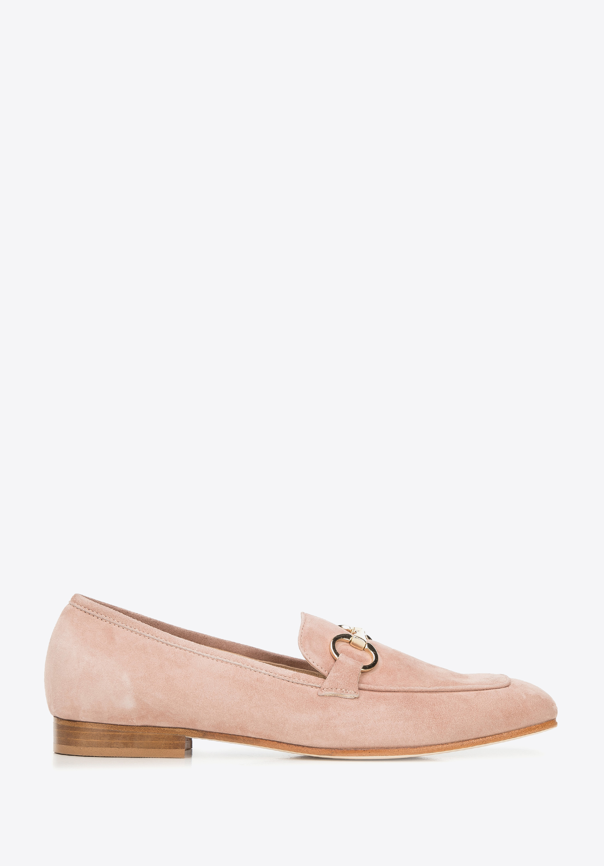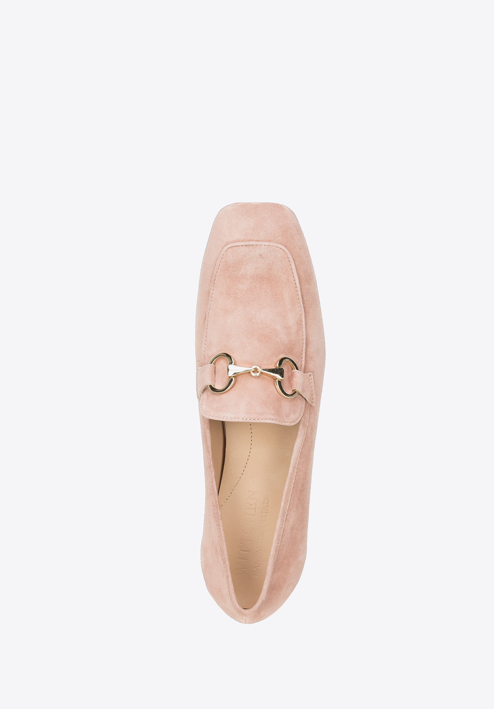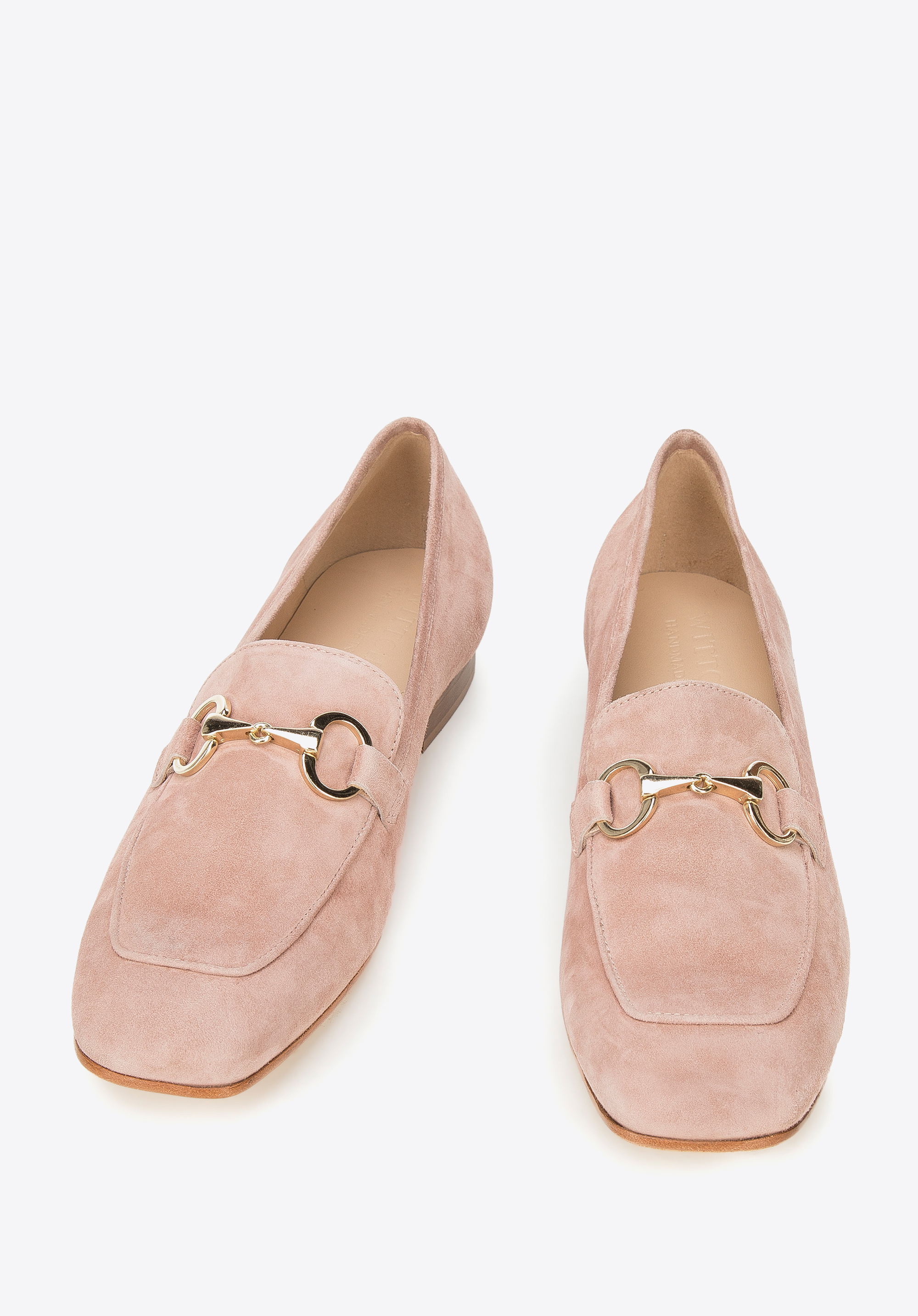 Damskie mokasyny zamszowe z kwadratowym noskiem i wędzidłem zgaszony róż