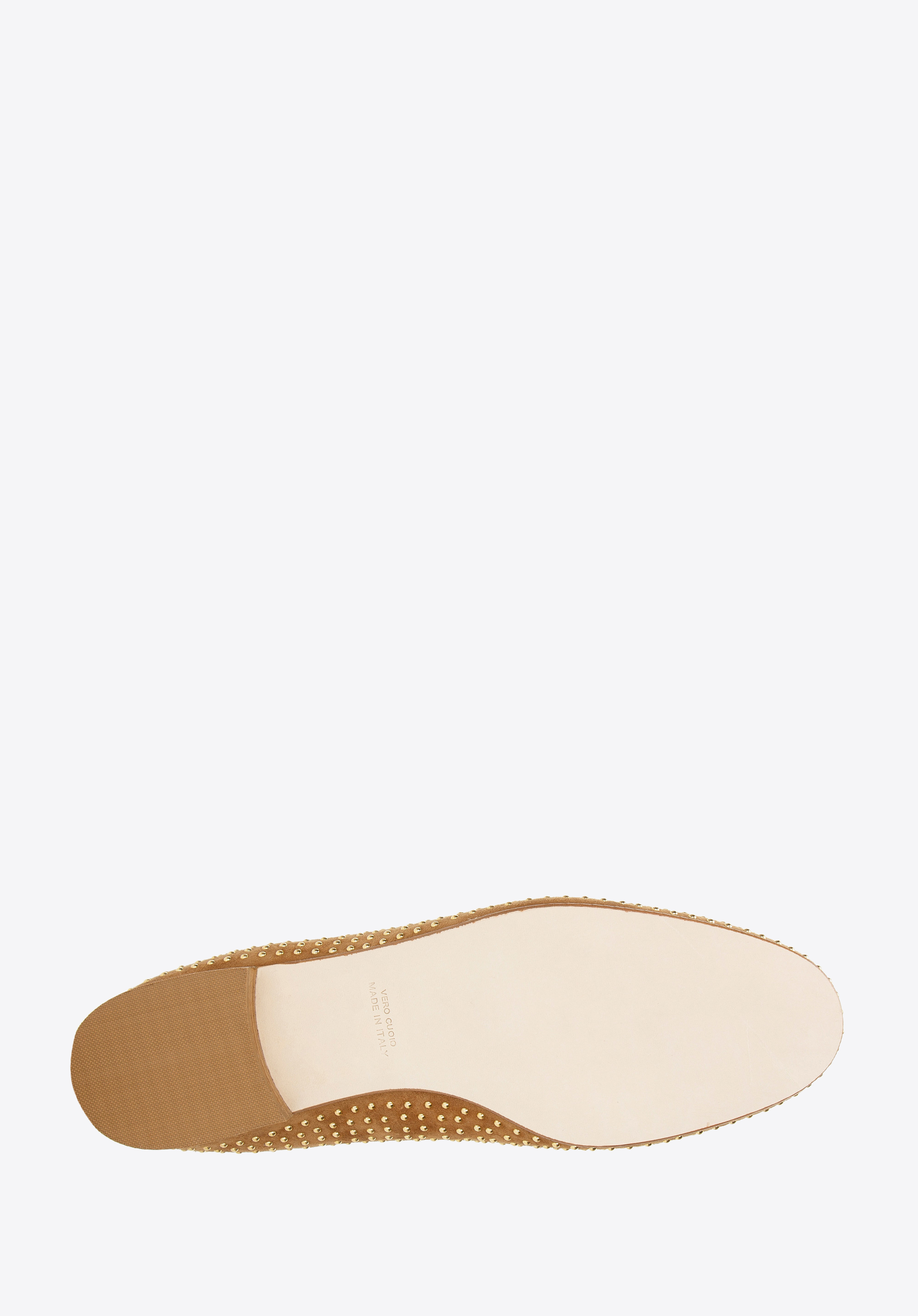 oryginalne nitowanie na całej powierzchni, które sprawia wrażenie deseniu w kropki. Mają smukłą linię pięknie eksponującą stopę i kostkę.