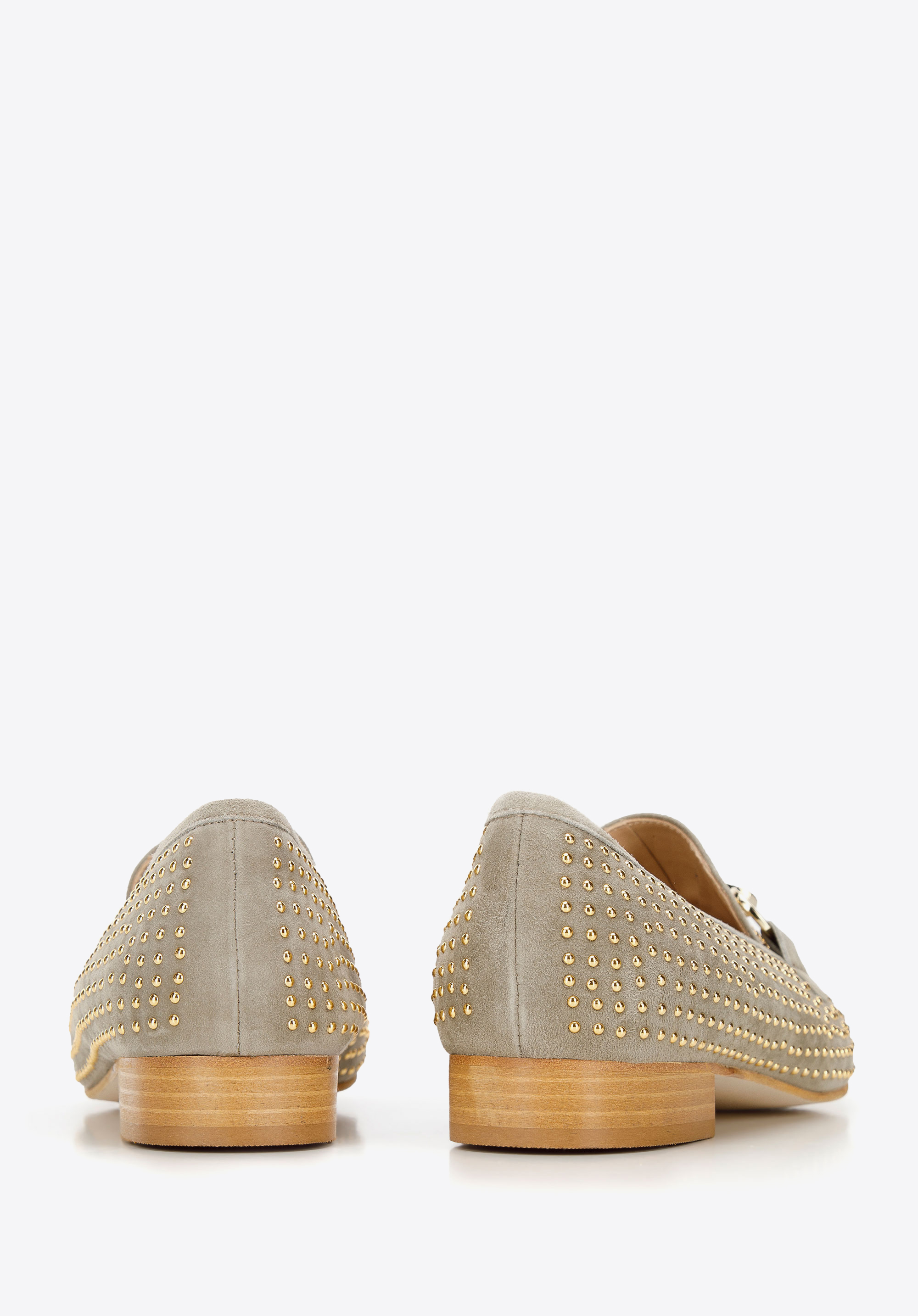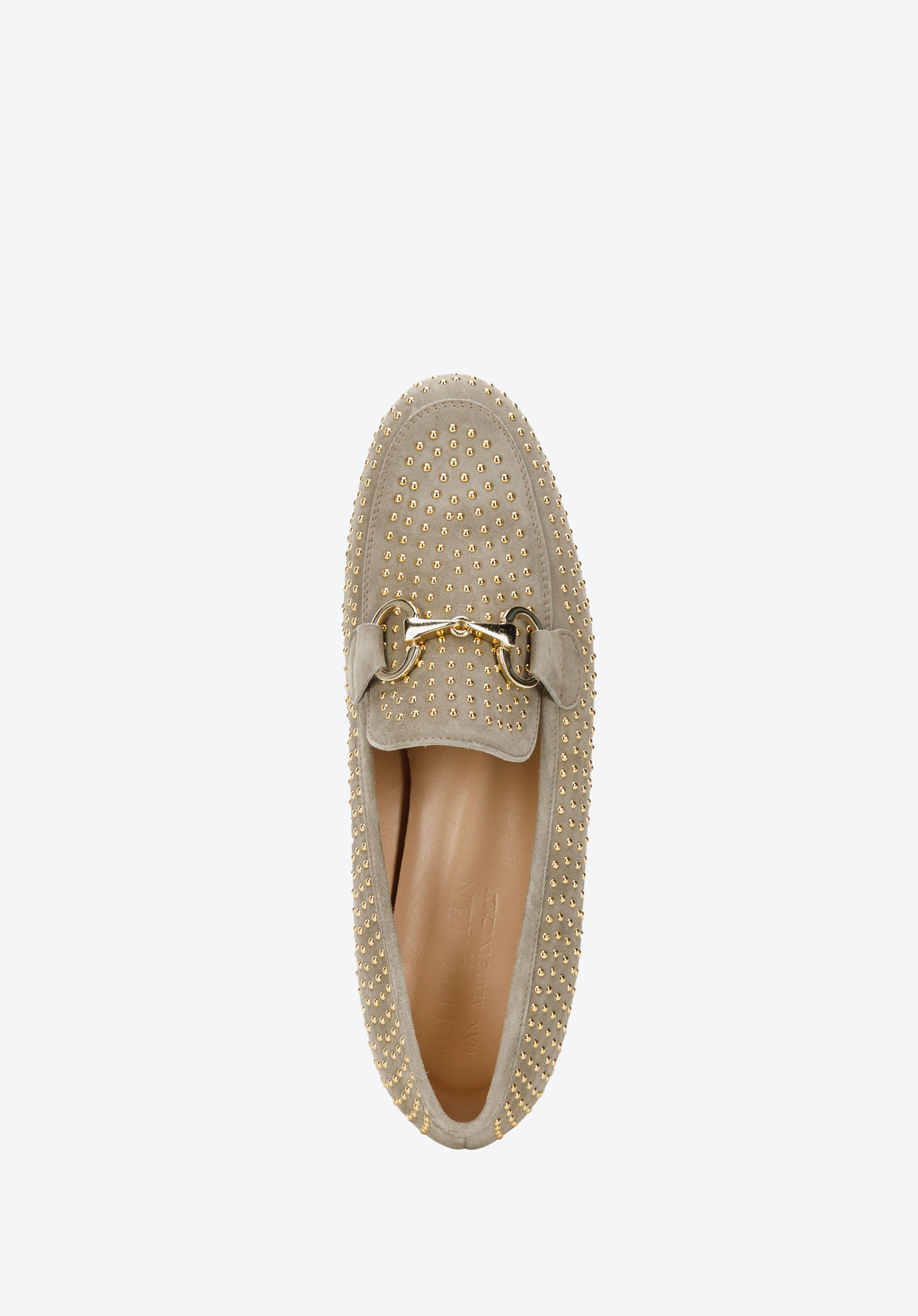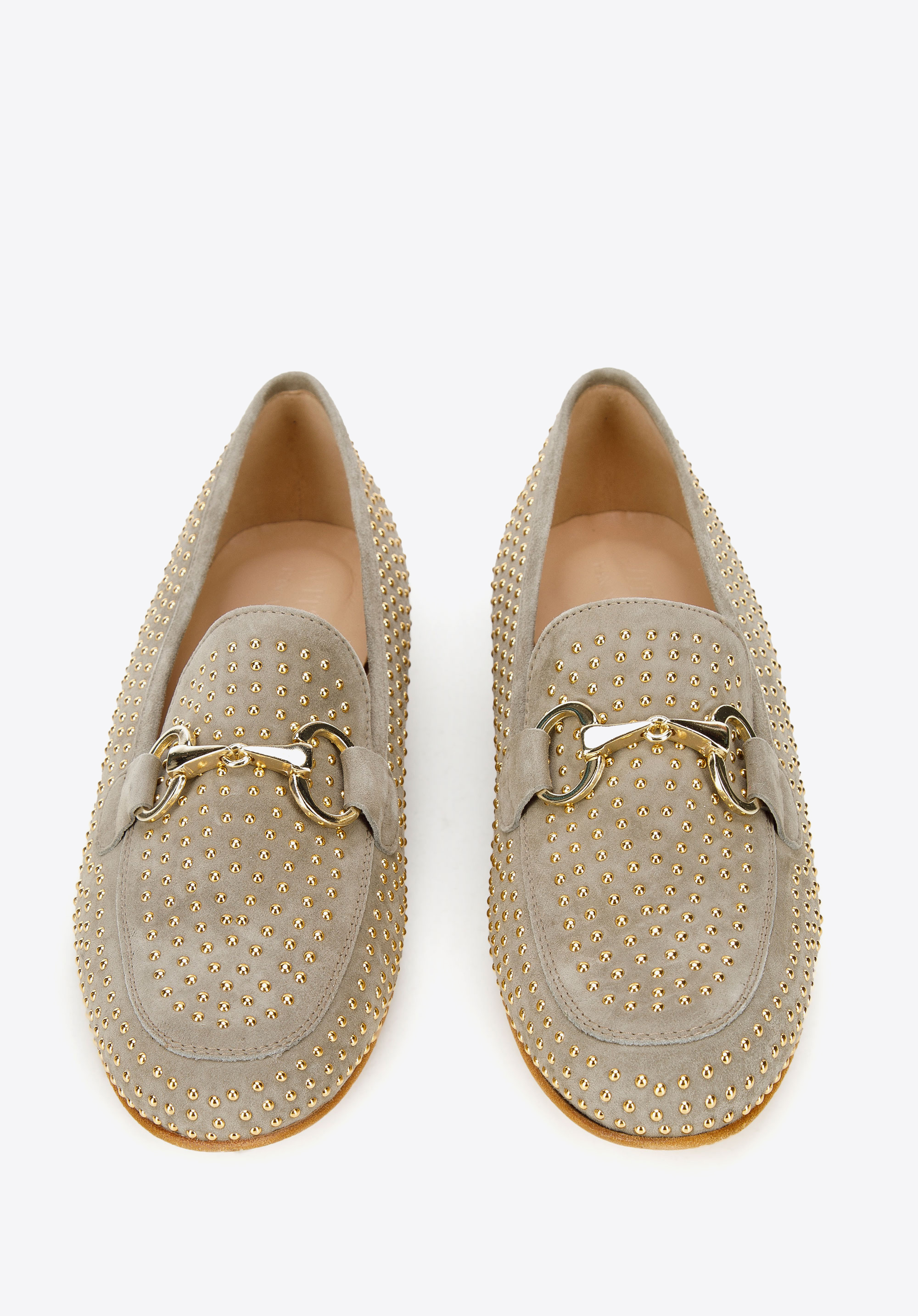 Zamszowe mokasyny możesz nosić na przykład do wąskich spodni z odkrytą kostką lub eleganckich sukienek wiązanych w talii. Damskie zamszowe mokasyny z nitami to ponadczasowy dodatek łączący klasyczny styl z oryginalnym zdobieniem.