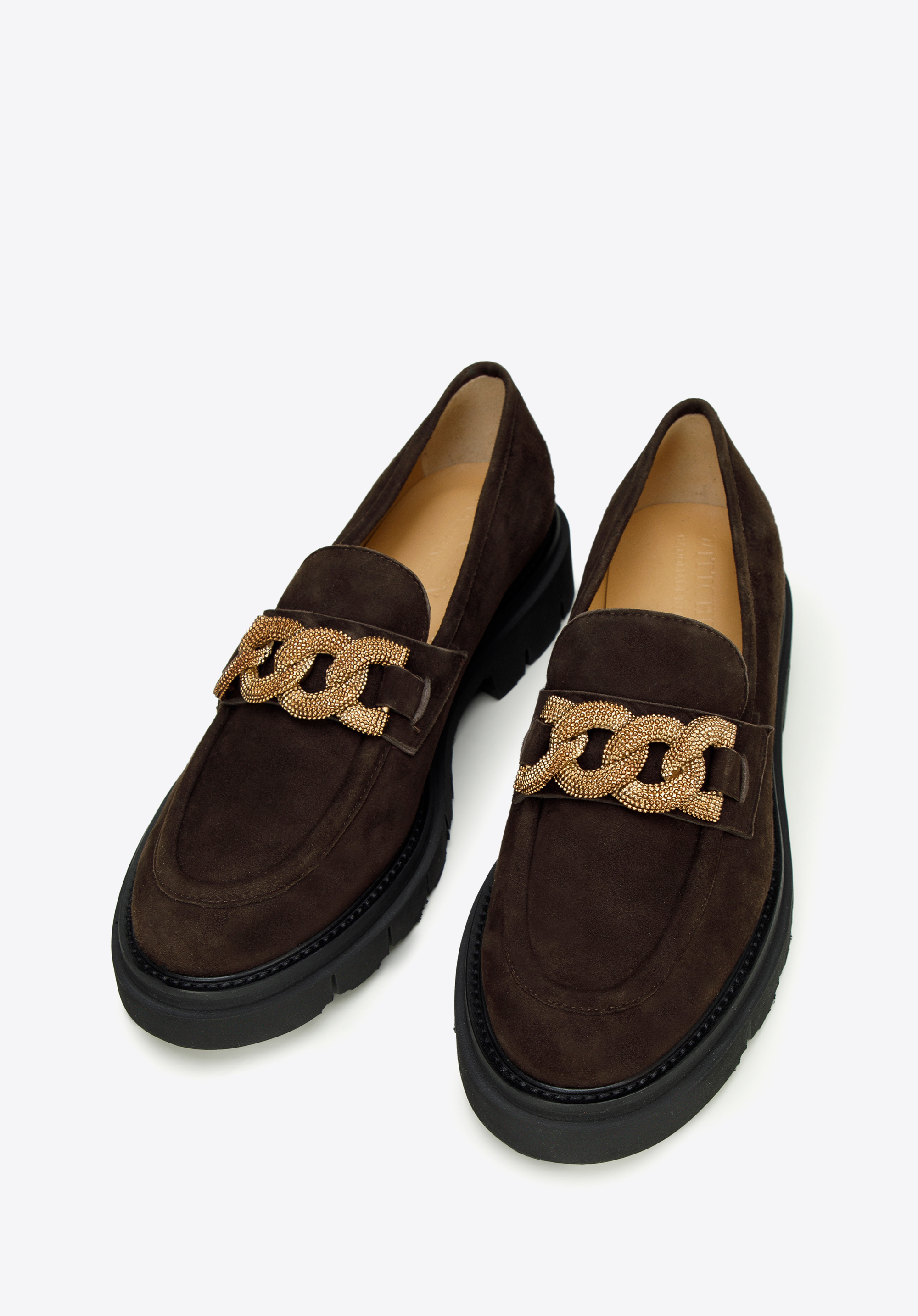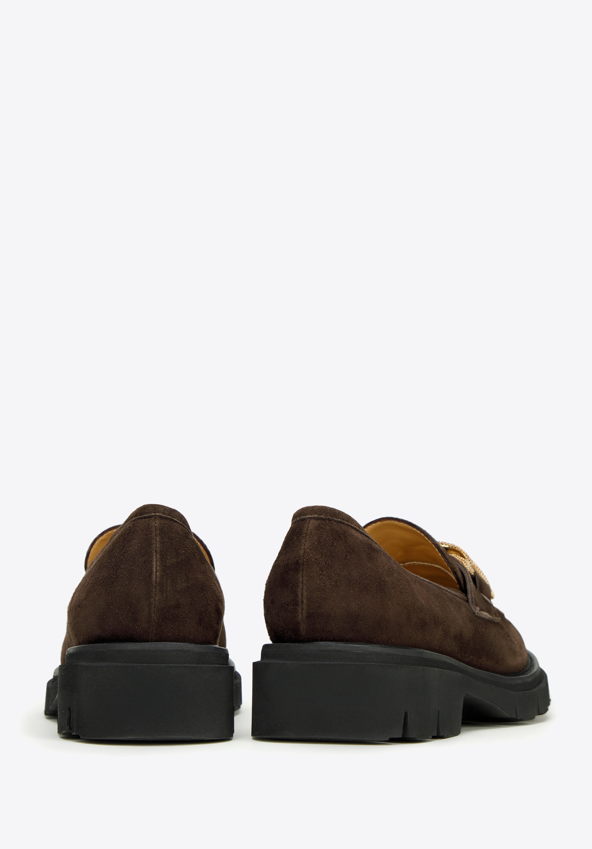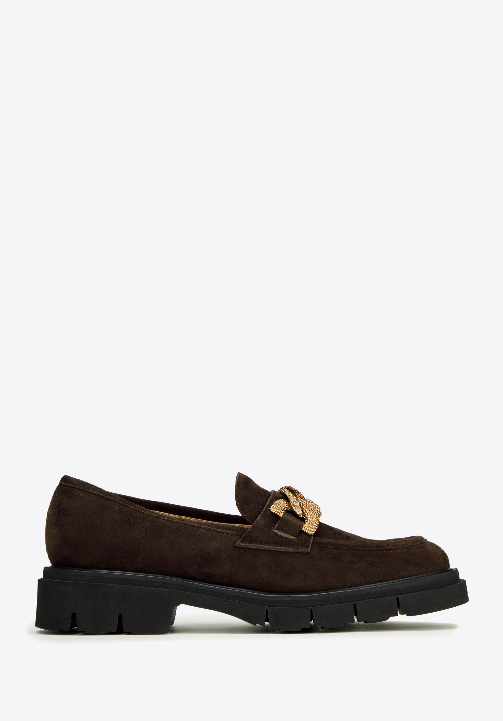 Damskie mokasyny zamszowe z ozdobnym łańcuchem na platformie to klasyka w nowoczesnym wydaniu, która urozmaici nawet najprostszy Twój strój.
