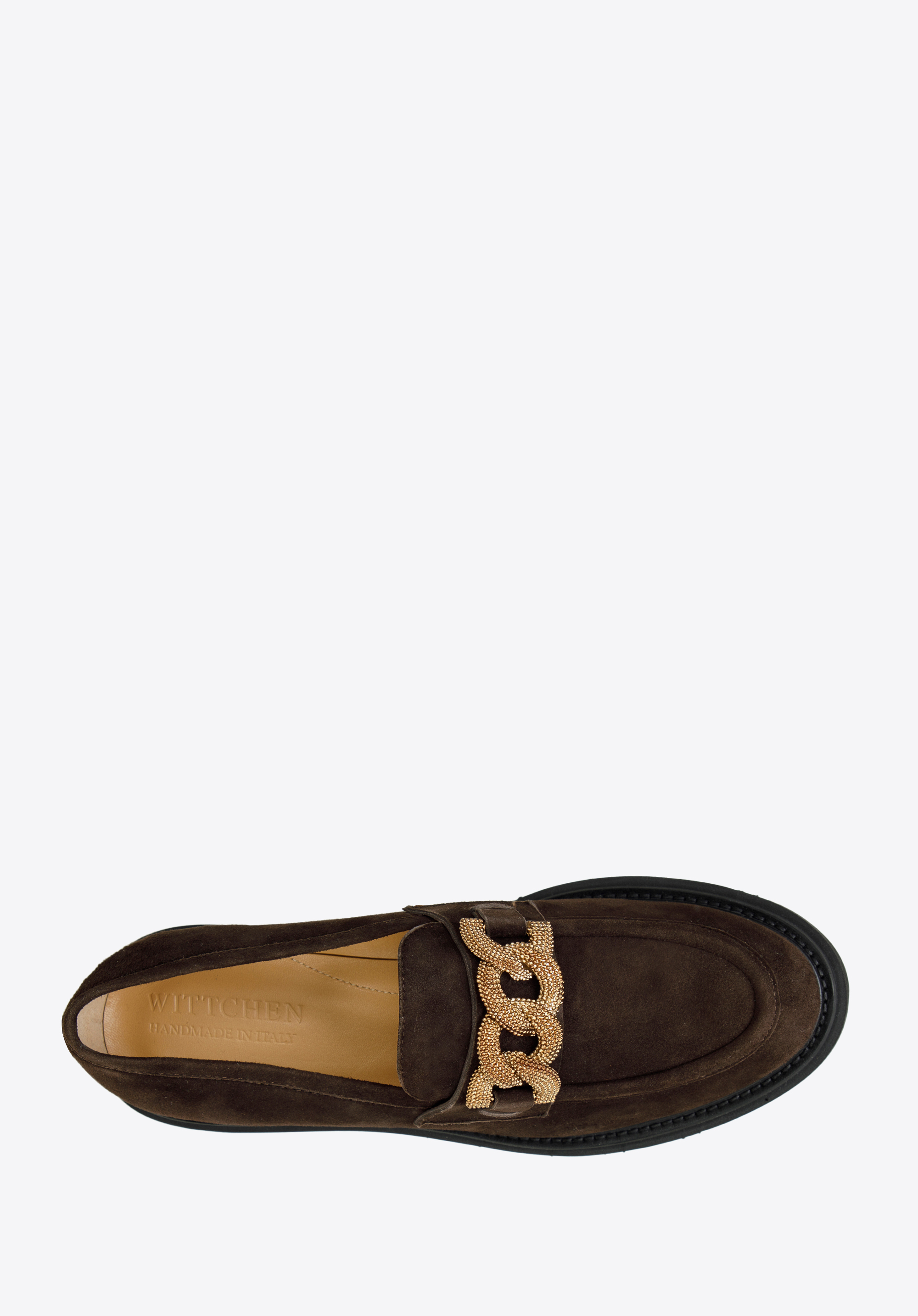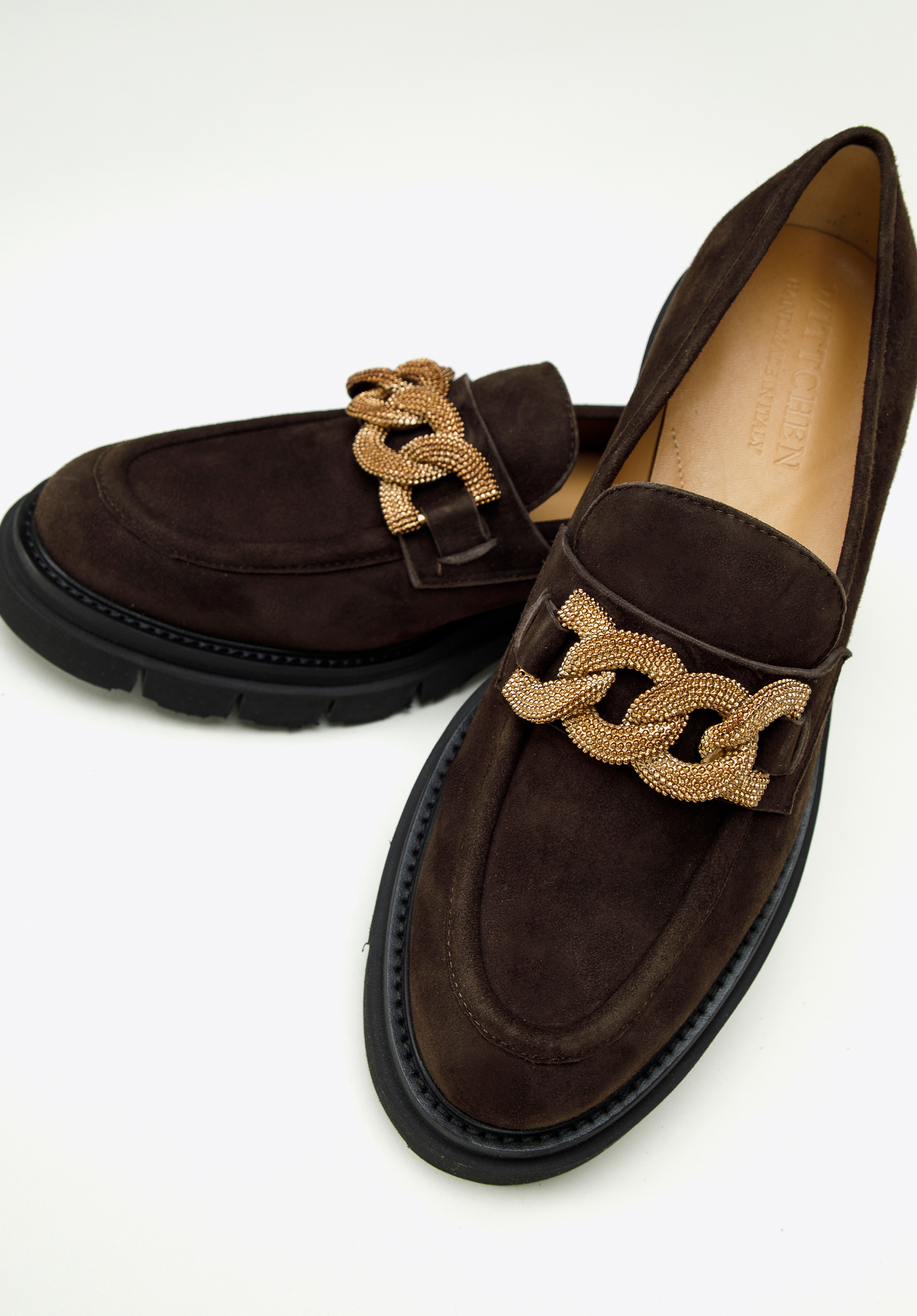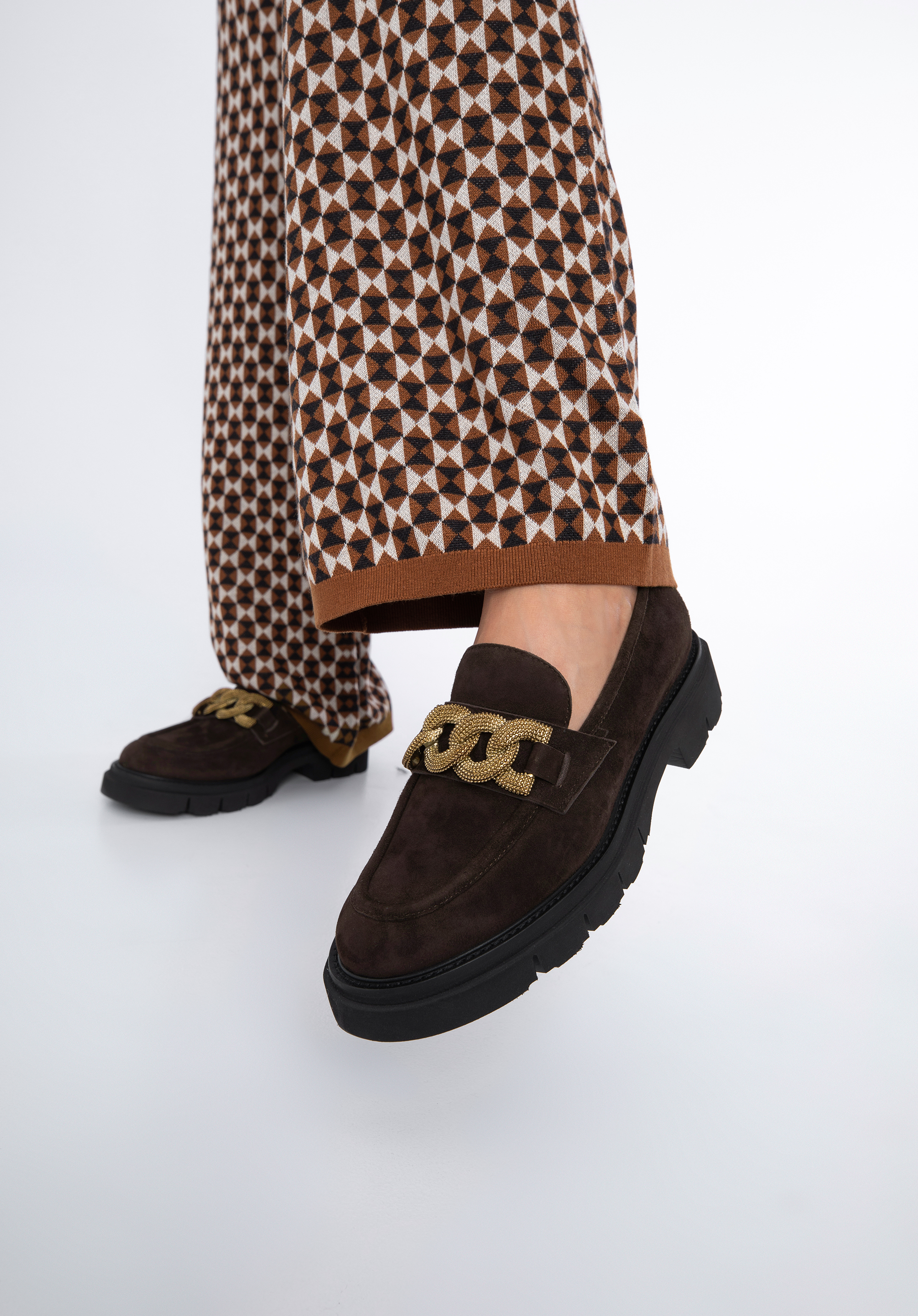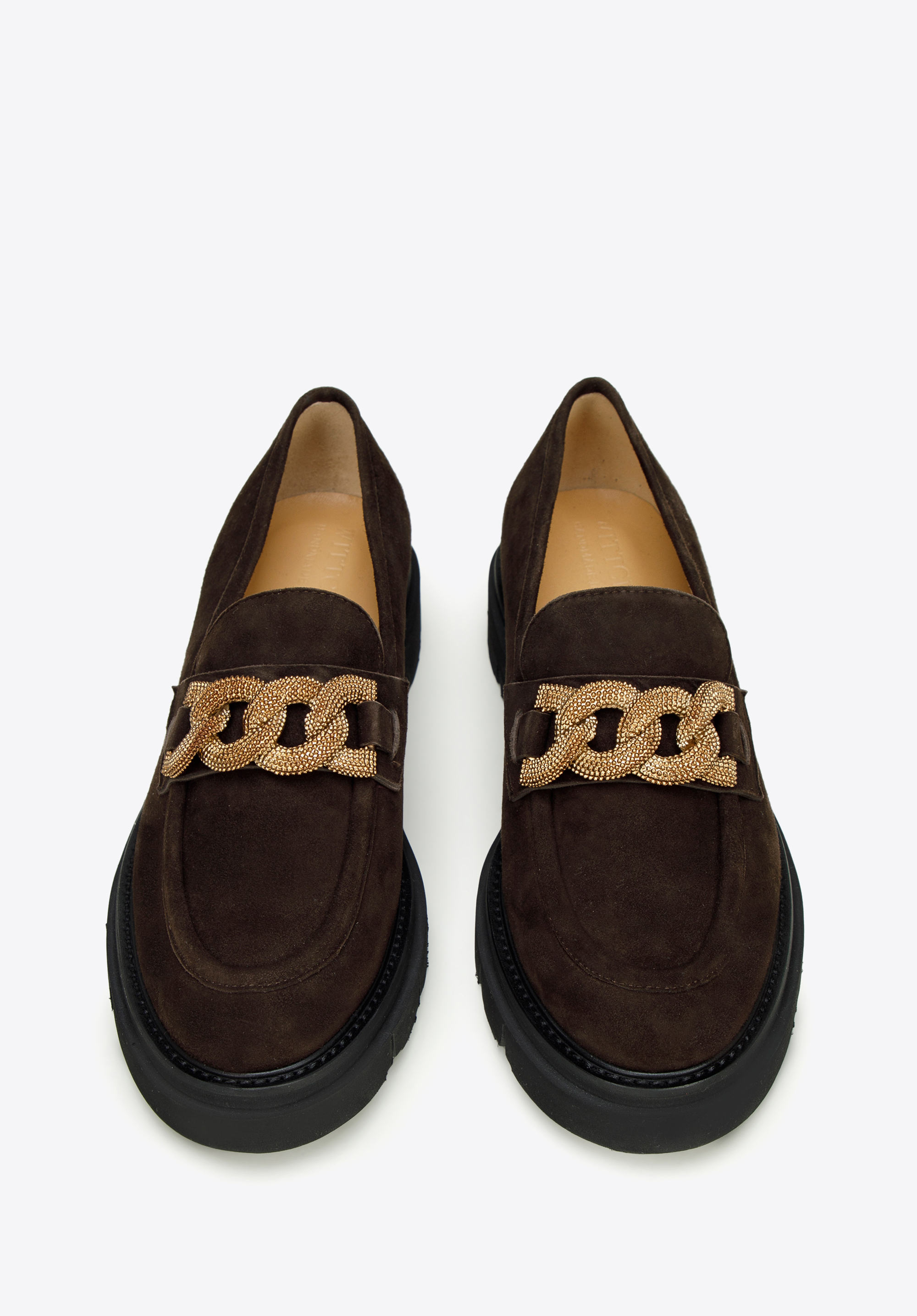 Damskie mokasyny zamszowe z ozdobnym łańcuchem na platformie to klasyka w nowoczesnym wydaniu, która urozmaici nawet najprostszy Twój strój.