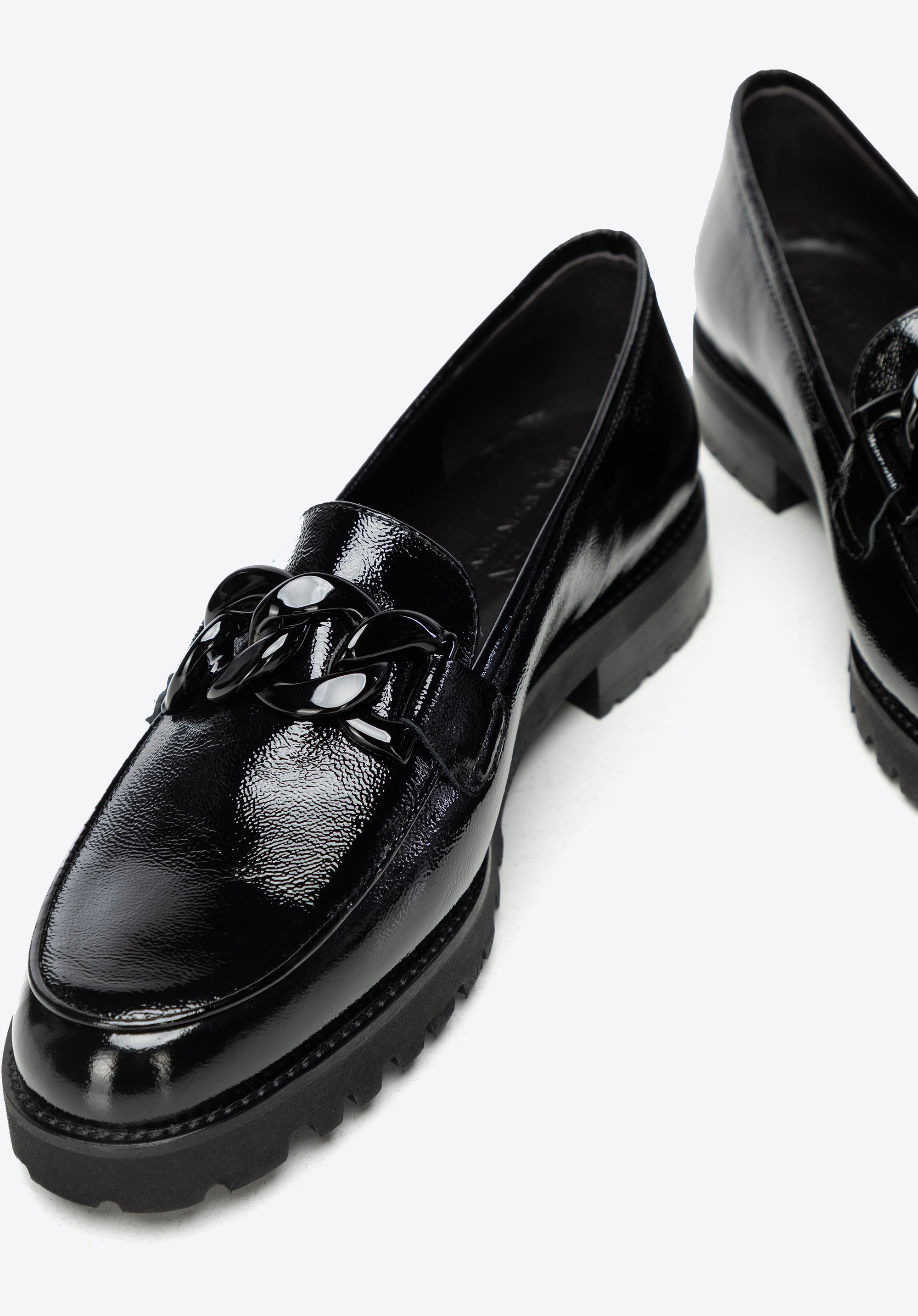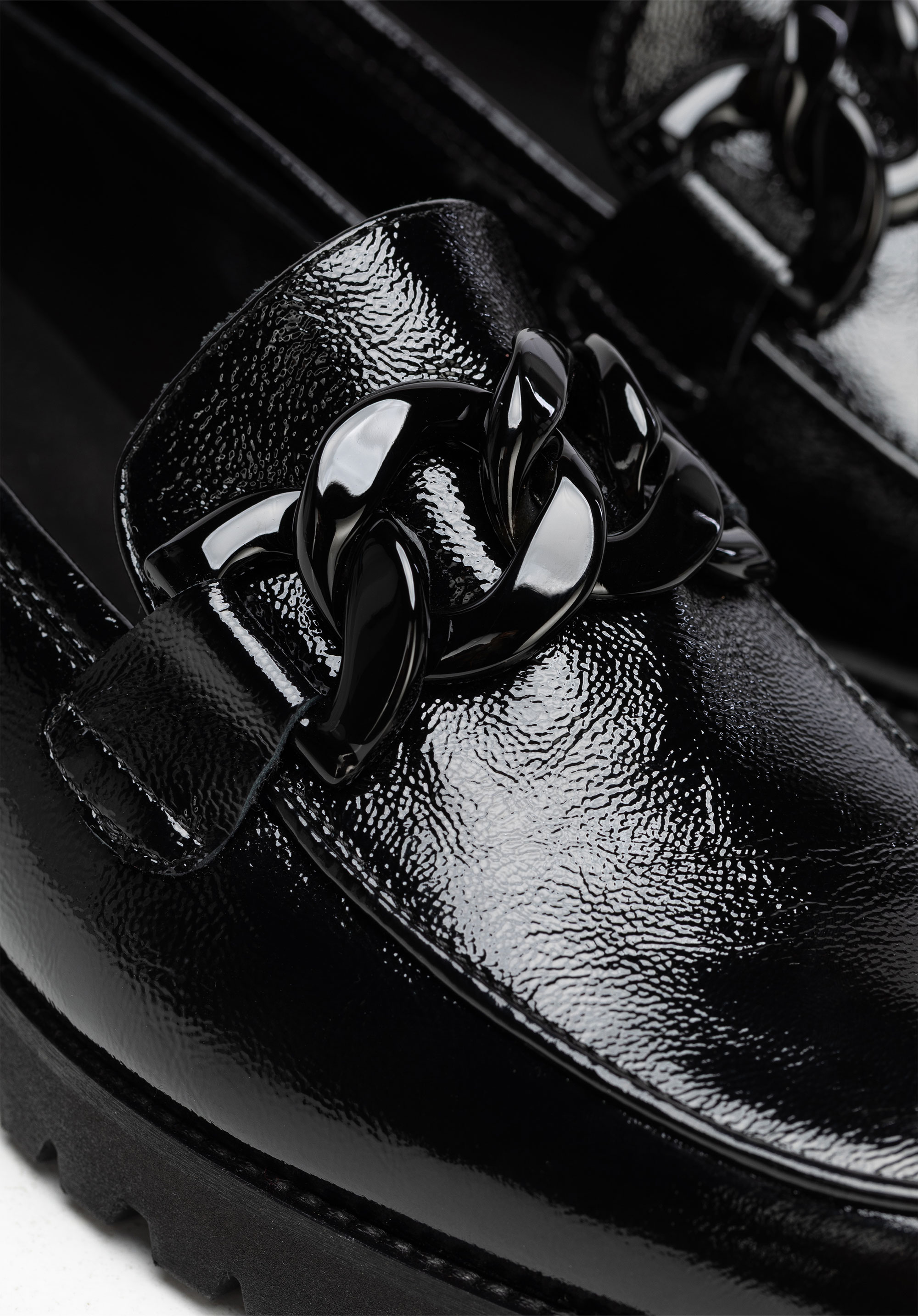 - Ozdobny łańcuch: Modny, biżuteryjny detal, który nadaje mokasynom nowoczesny szyk.