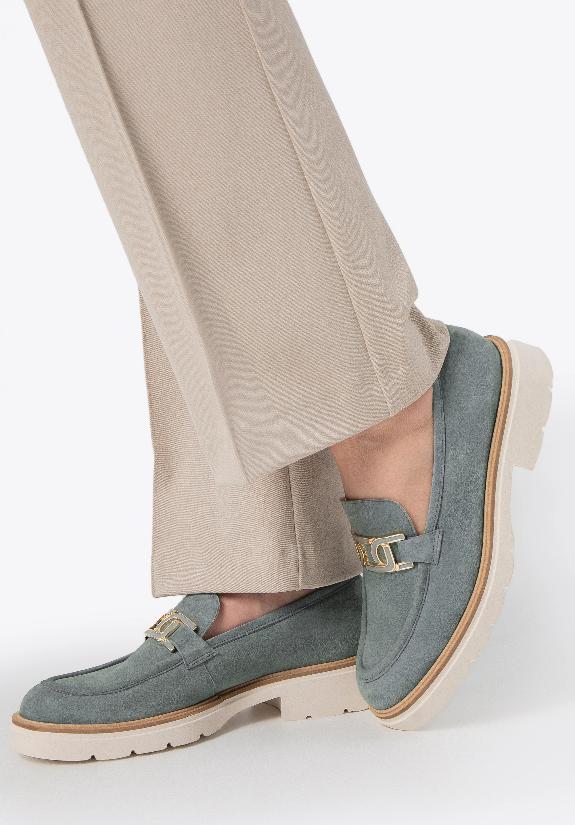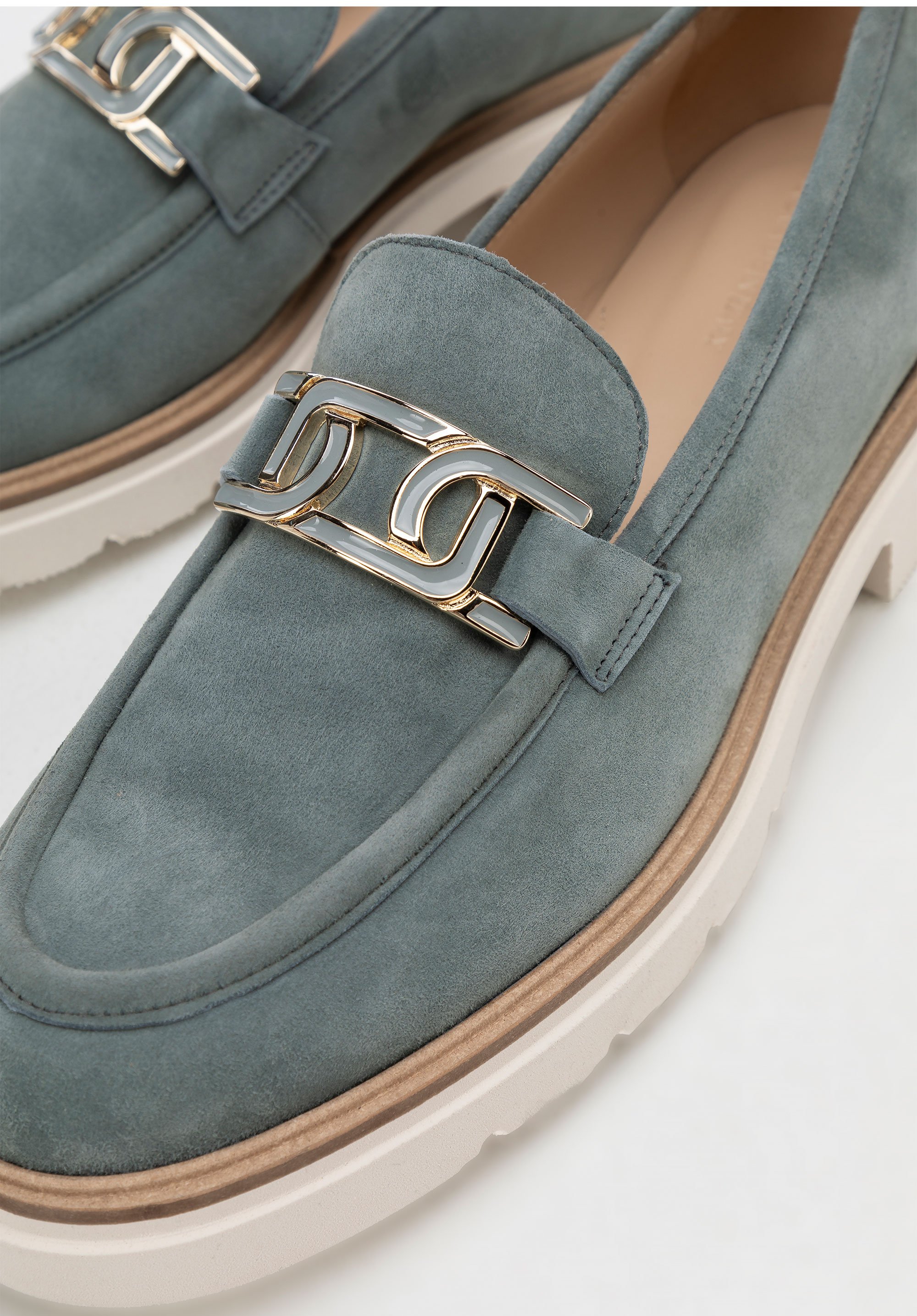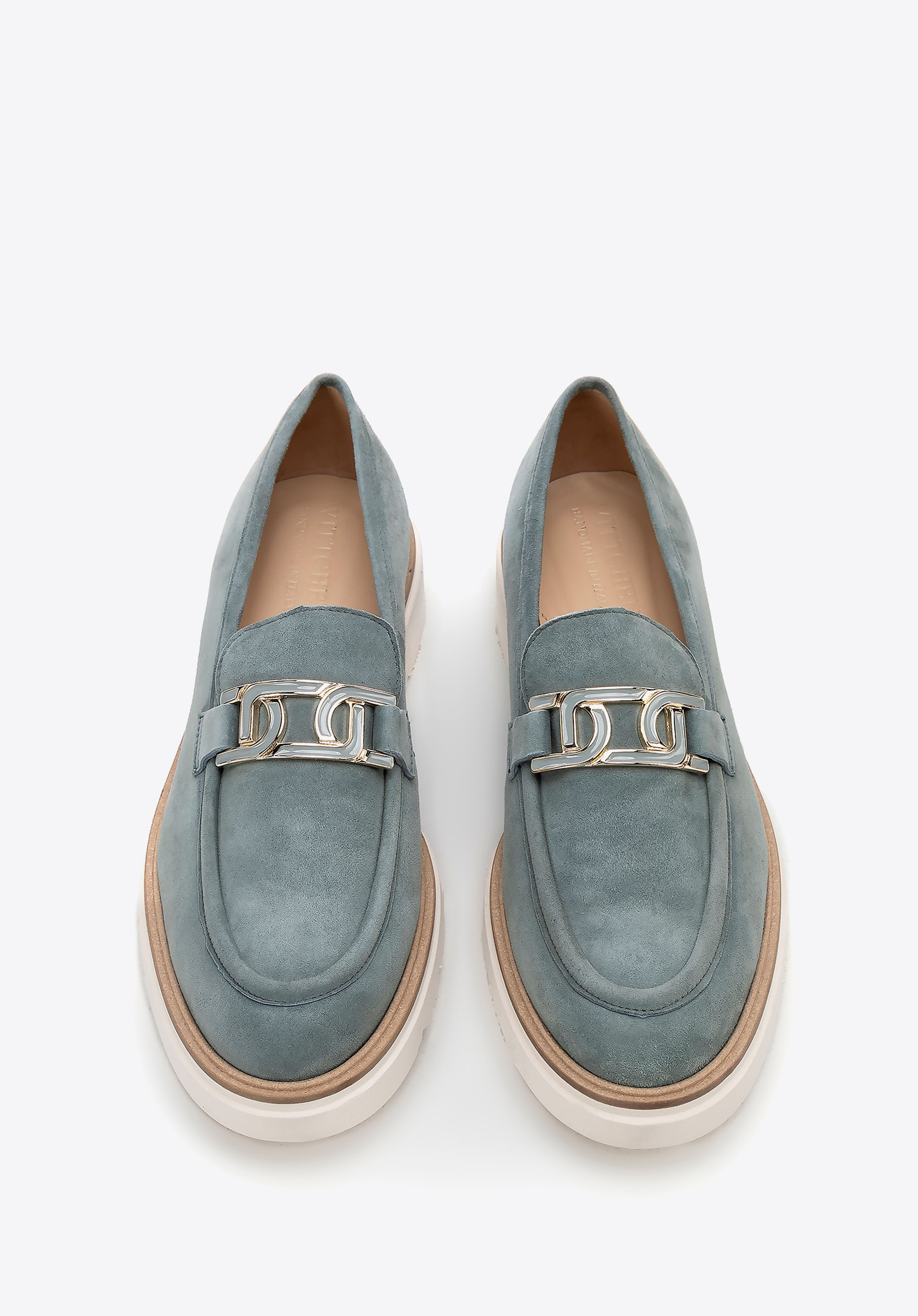 - Dekoracyjna klamra: Stylowy detal, który nadaje mokasynom wyjątkowego charakteru i podkreśla ich elegancki design. Dzięki niemu nawet najprostsza stylizacja nabiera wyrafinowanego akcentu.