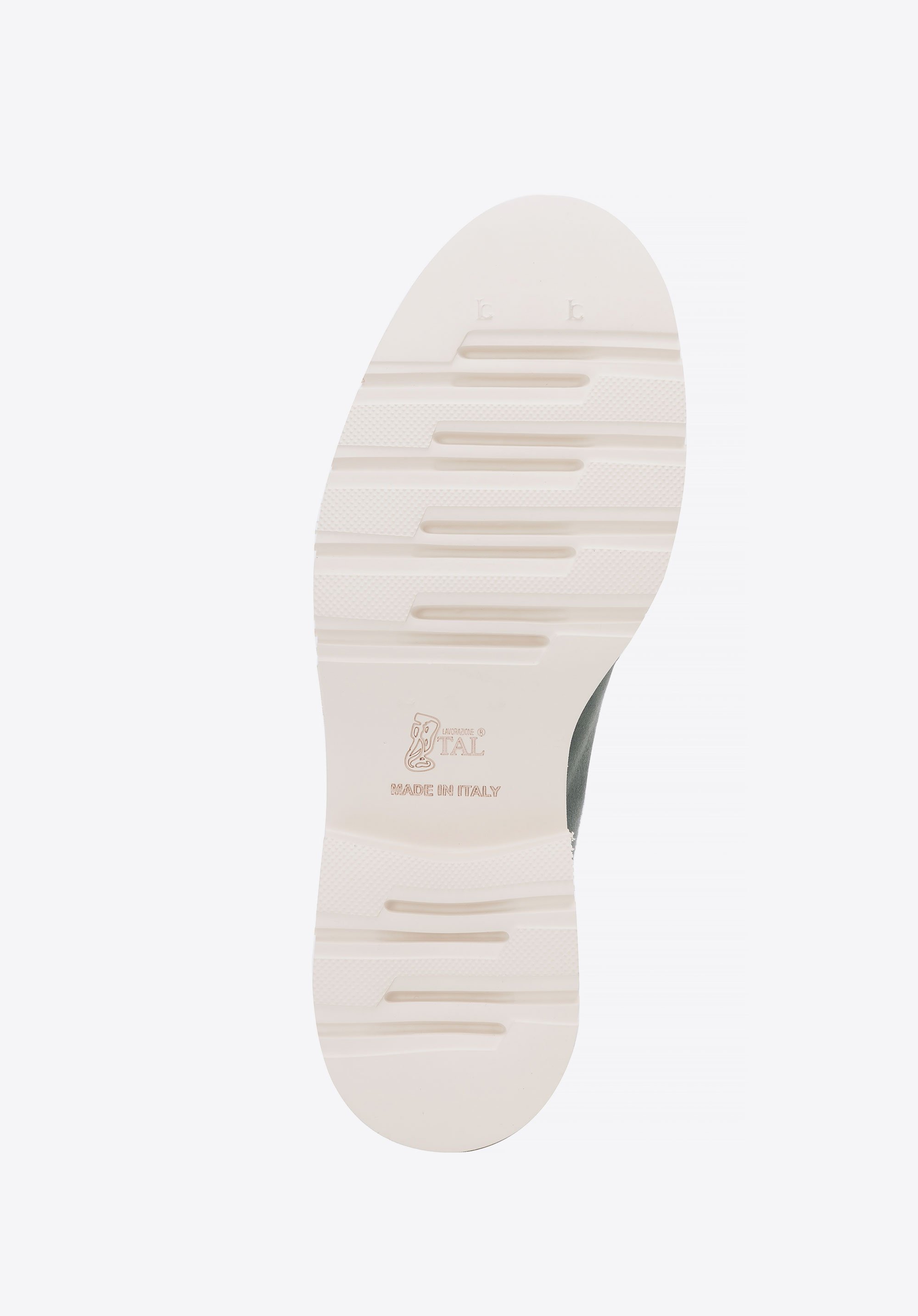 Odkryj mokasyny, które łączą klasyczny szyk z nowoczesnym charakterem. Wykonane we Włoszech z najwyższej jakości skóry naturalnej, zachwycają precyzyjnym wykonaniem i ponadczasowym stylem. Nosek w kształcie migdała subtelnie wysmukla stopę, a dekoracyjna klamra dodaje wyrafinowanego uroku. Gruba, żłobiona podeszwa typu track nie tylko nadaje butom wyjątkowego charakteru, ale także gwarantuje doskonałą przyczepność i wygodę przez cały dzień. Wnętrze, wykończone skórzaną wkładką i wyściółką, zapewnia komfort na najwyższym poziomie.