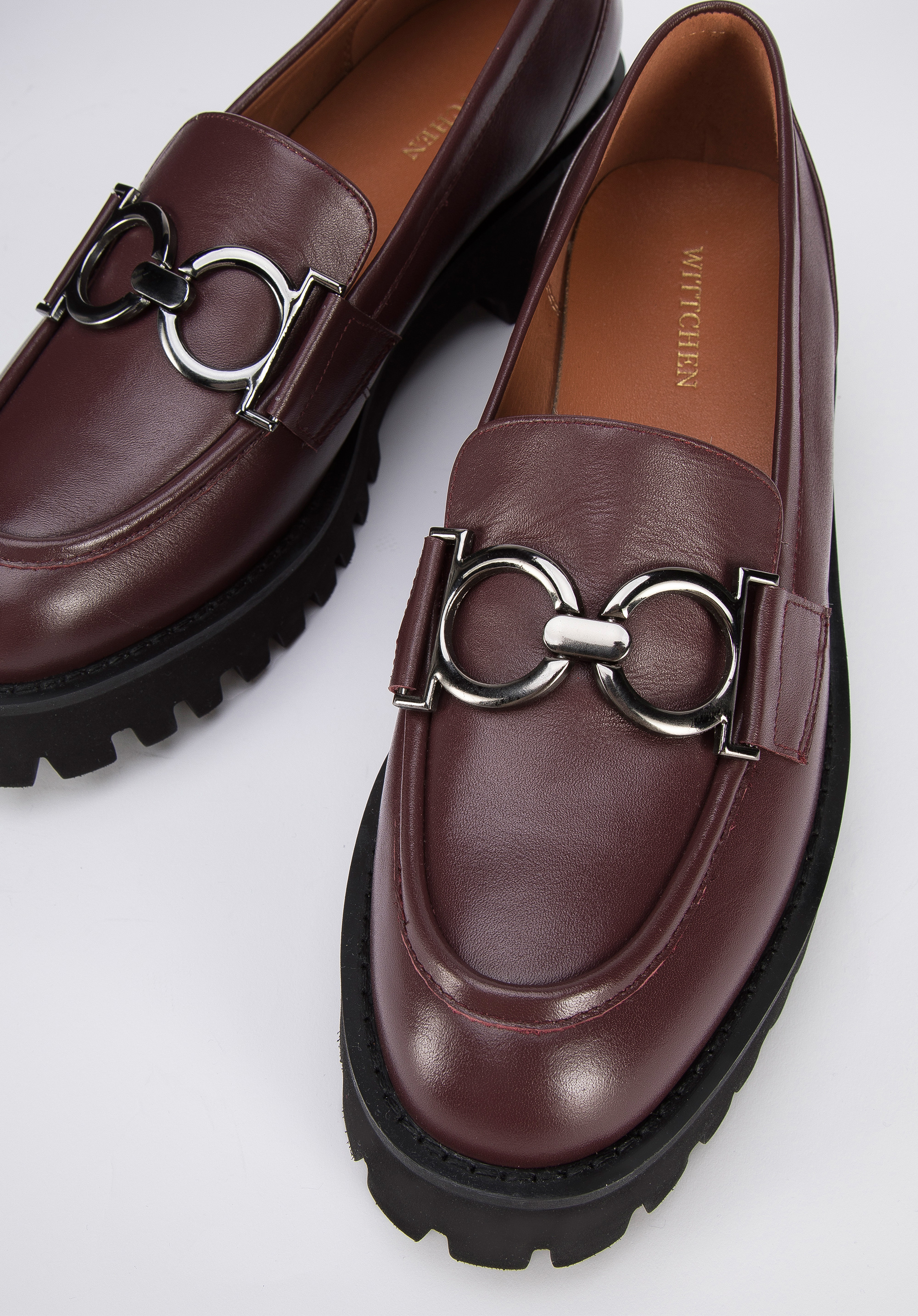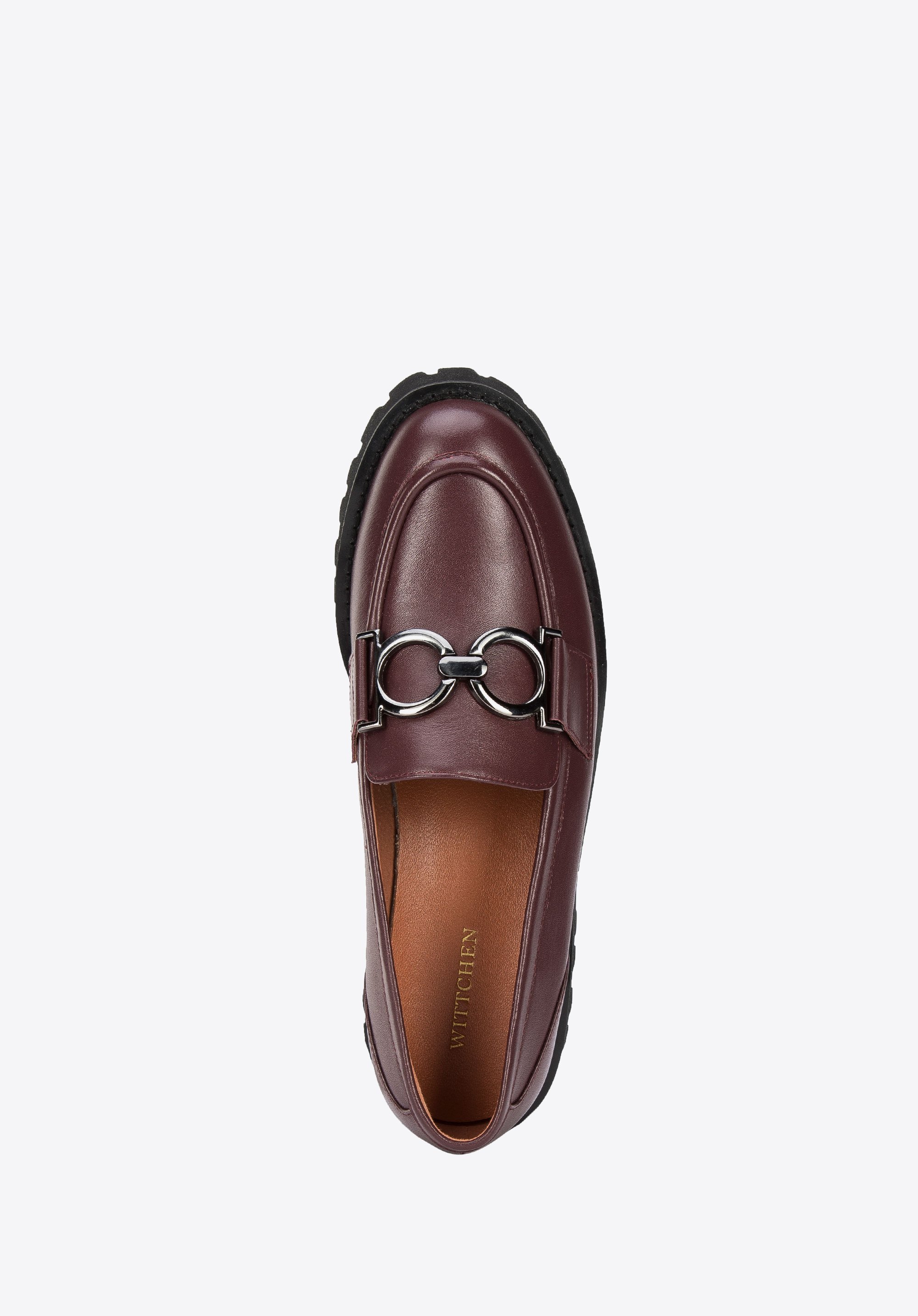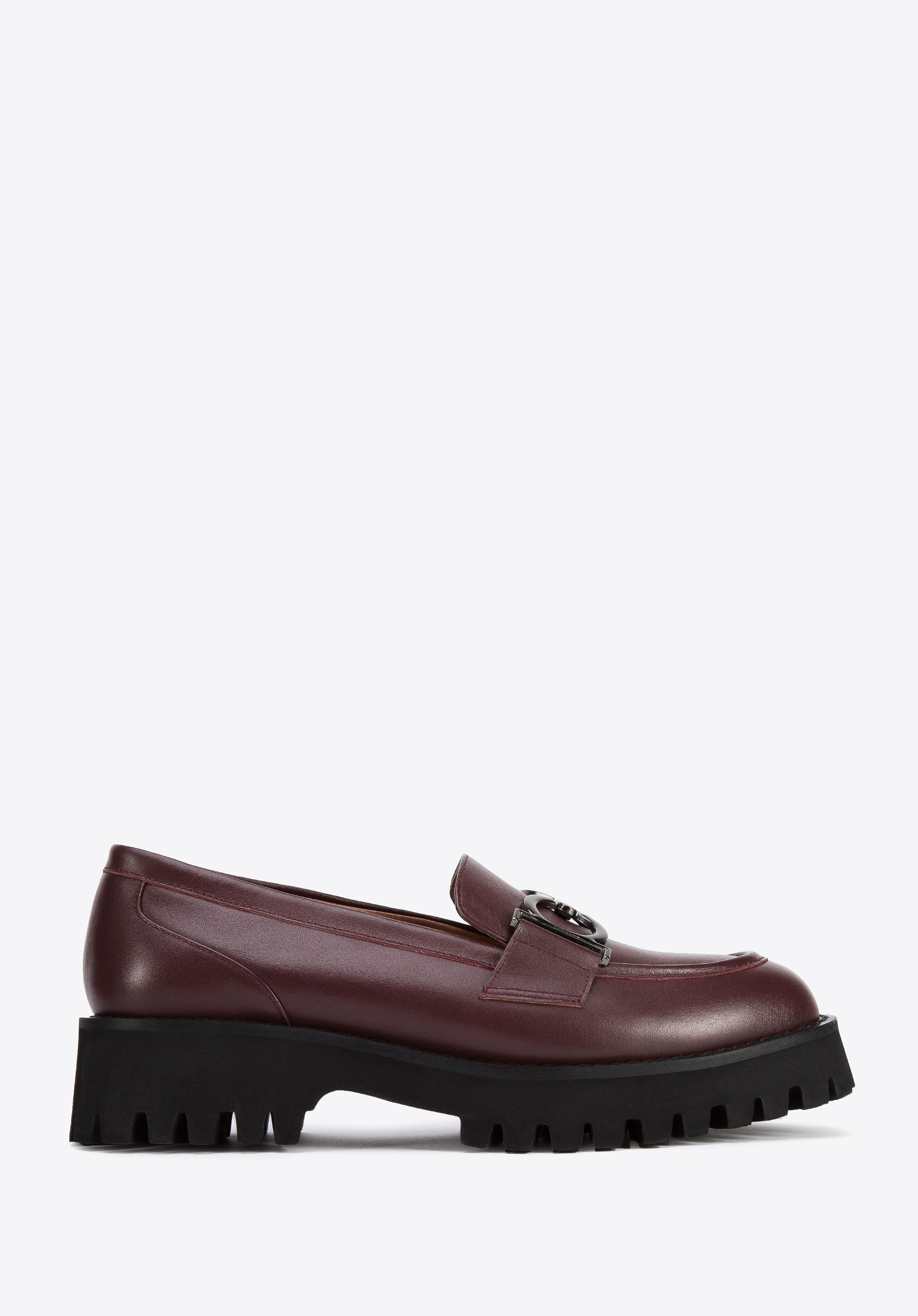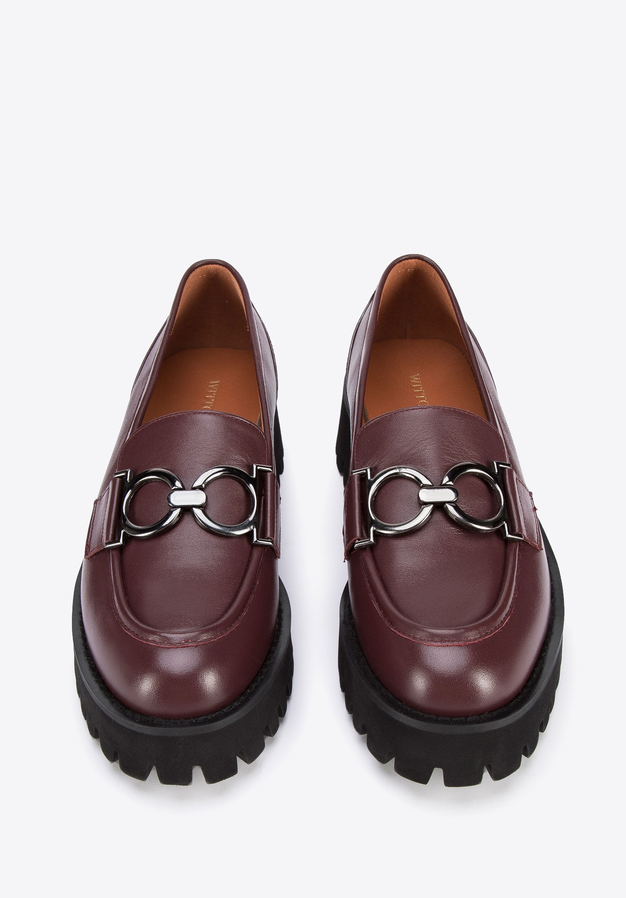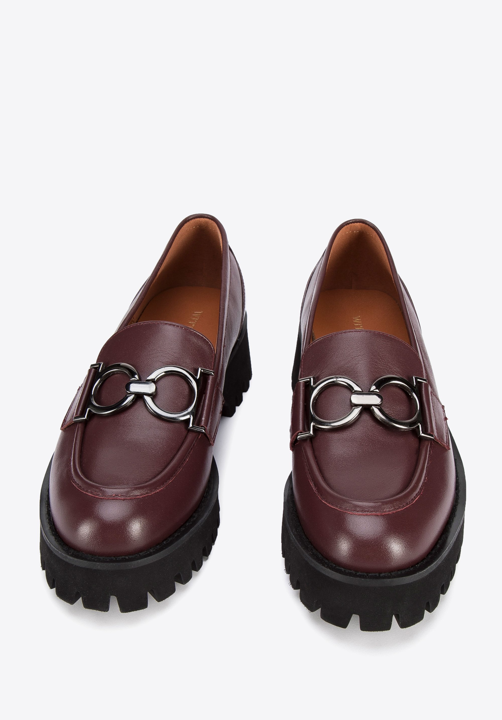 Damskie mokasyny ze skóry z klamrą na grubej podeszwie to eleganckie obuwie na wiele okazji.