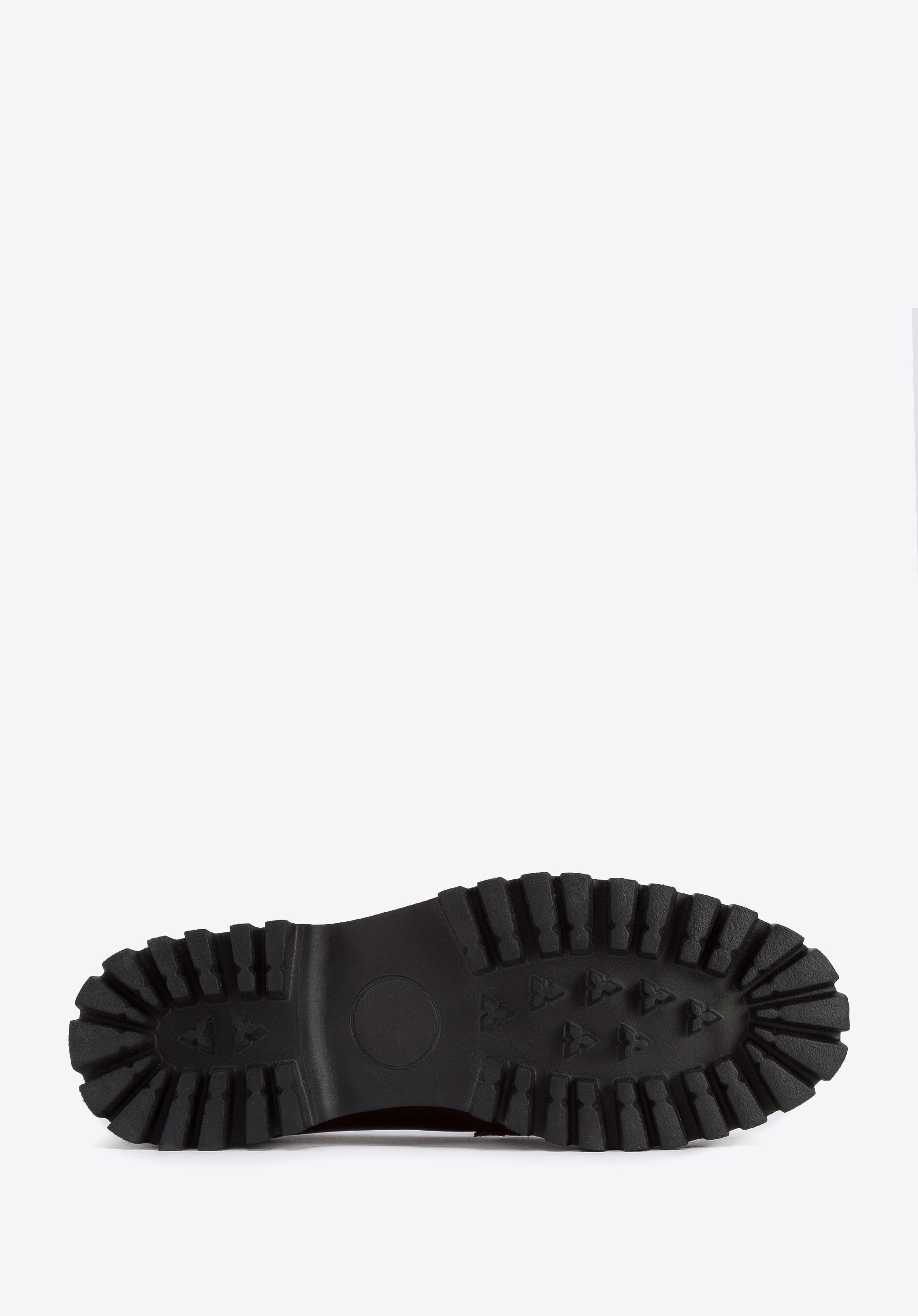 Podeszwa na platformie z bieżnikiem jest gruba, ale lekka, więc komfortowo przechodzisz w nich przez cały dzień. Dodatkowo