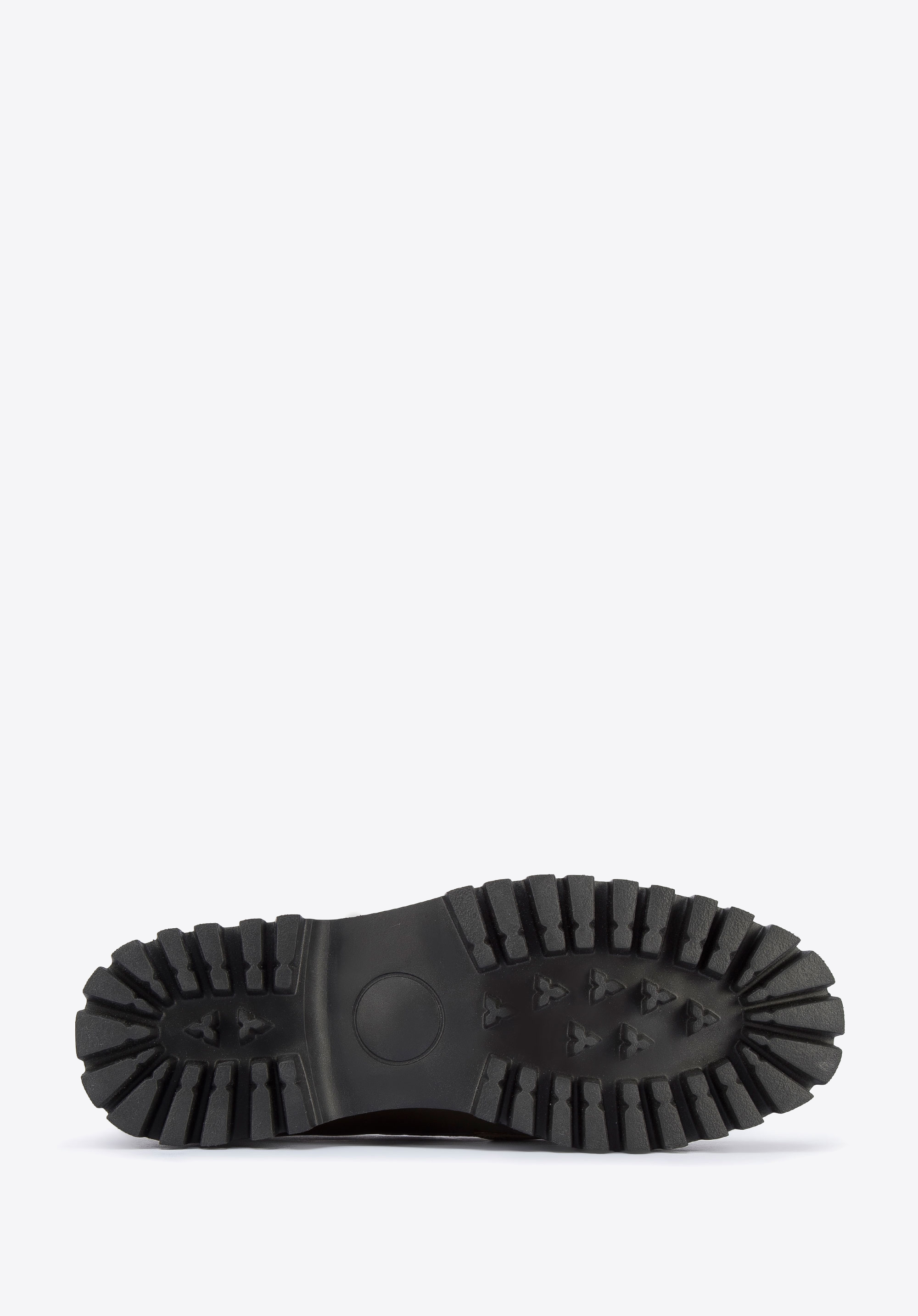 Podeszwa na platformie z bieżnikiem jest gruba, ale lekka, więc komfortowo przechodzisz w nich przez cały dzień. Dodatkowo
