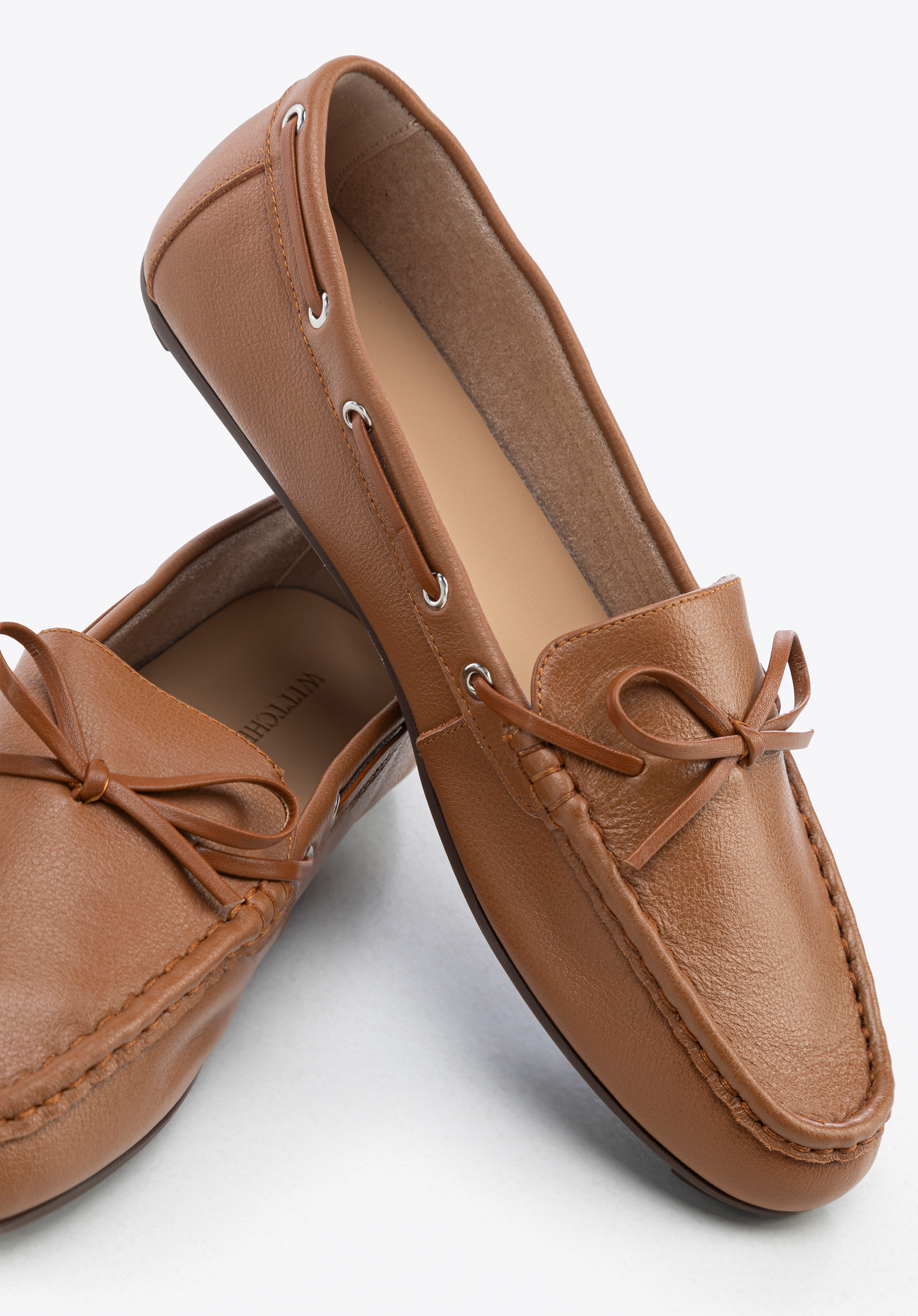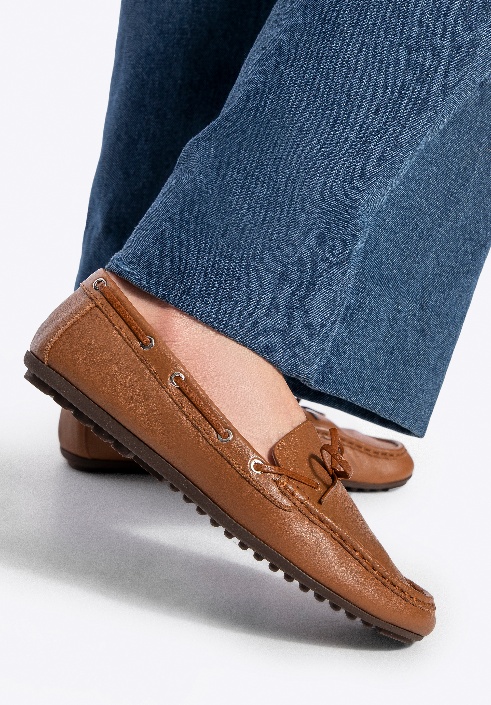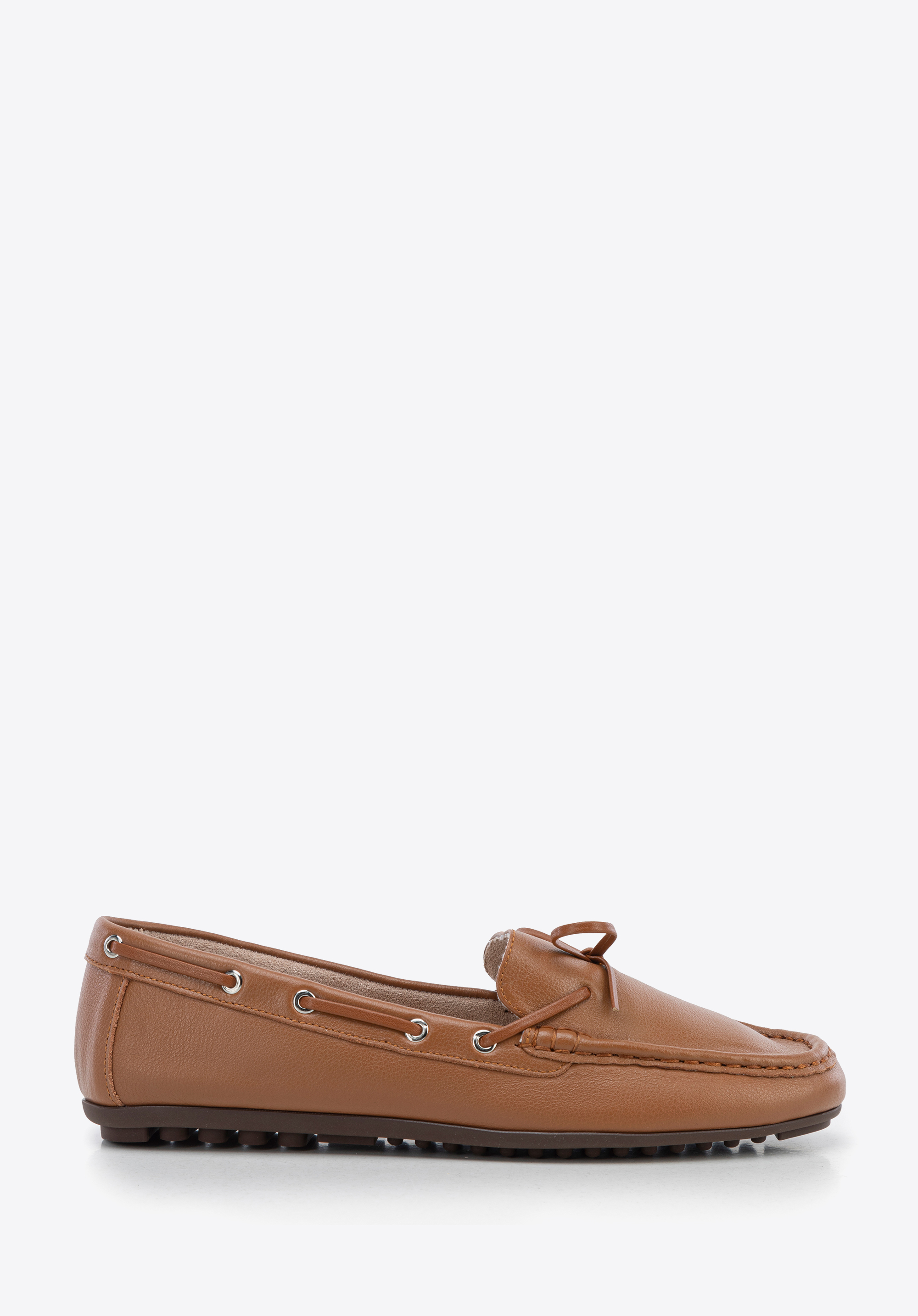 Damskie mokasyny ze skóry z rzemykiem brązowe