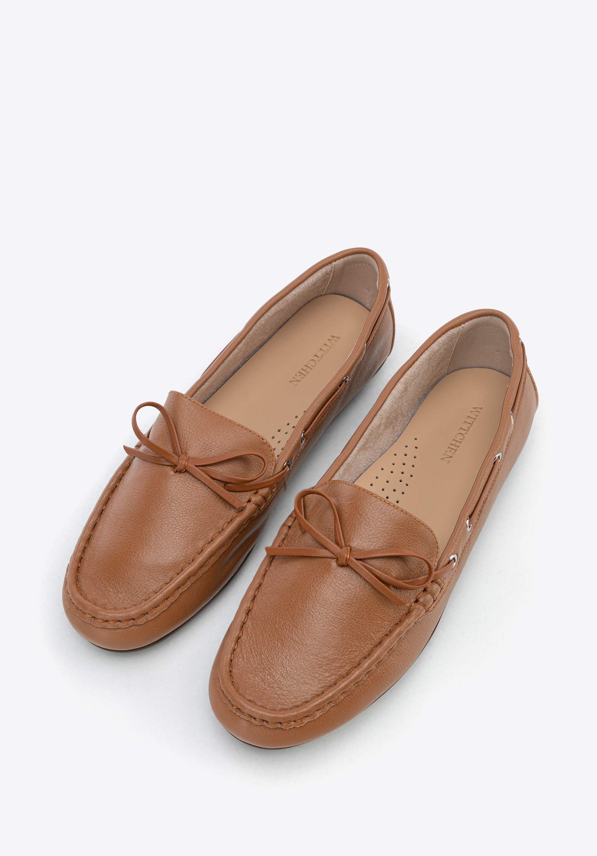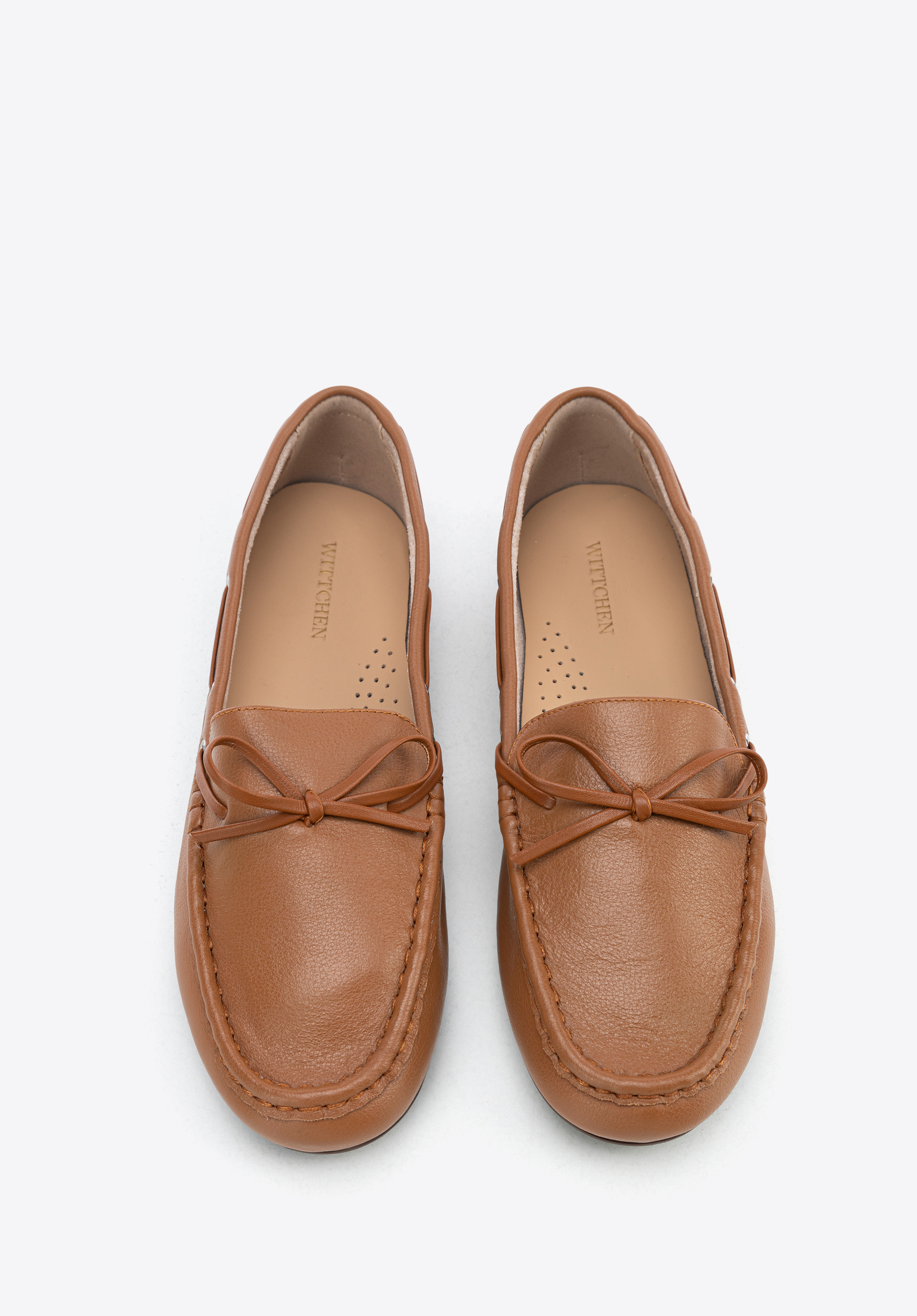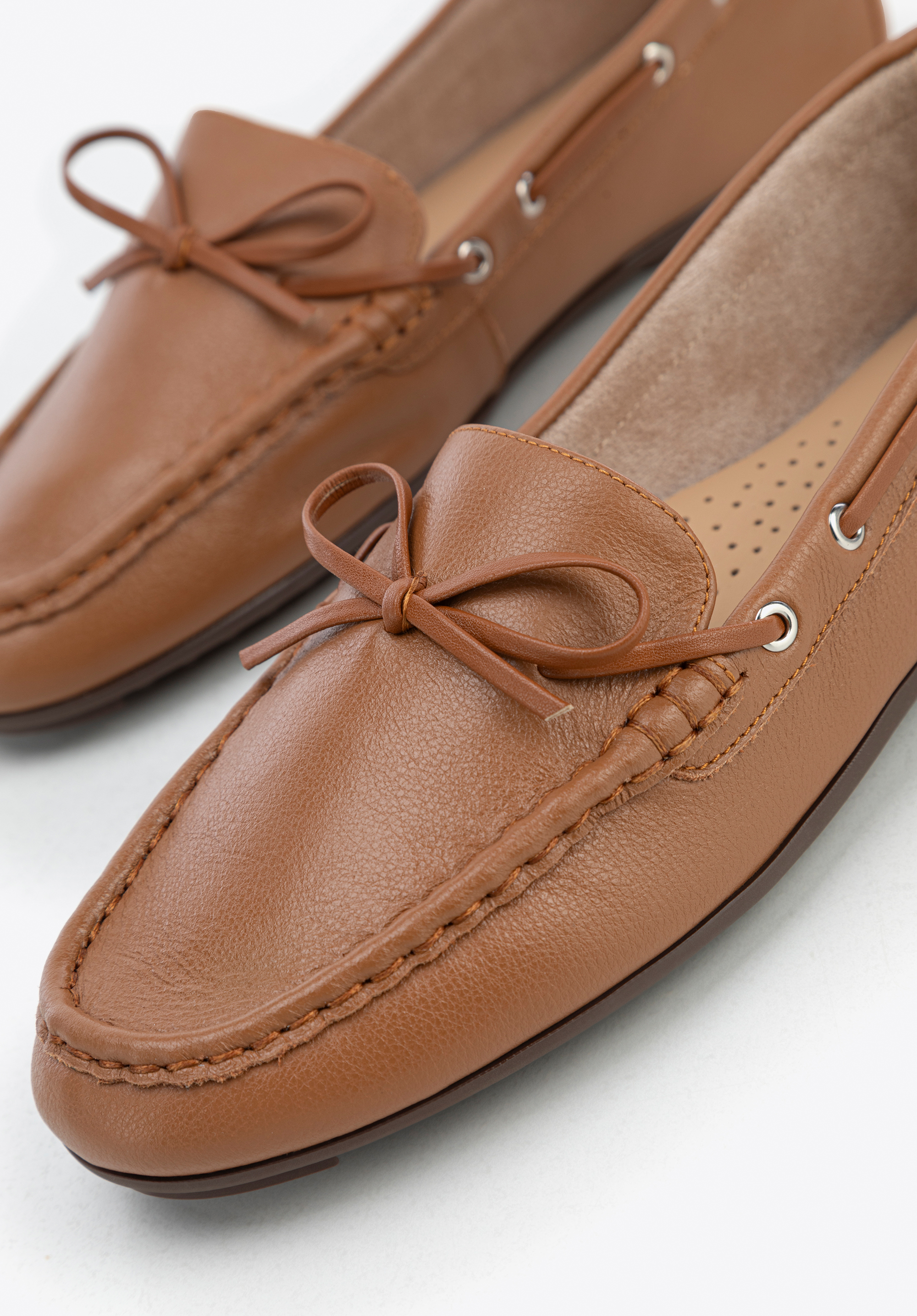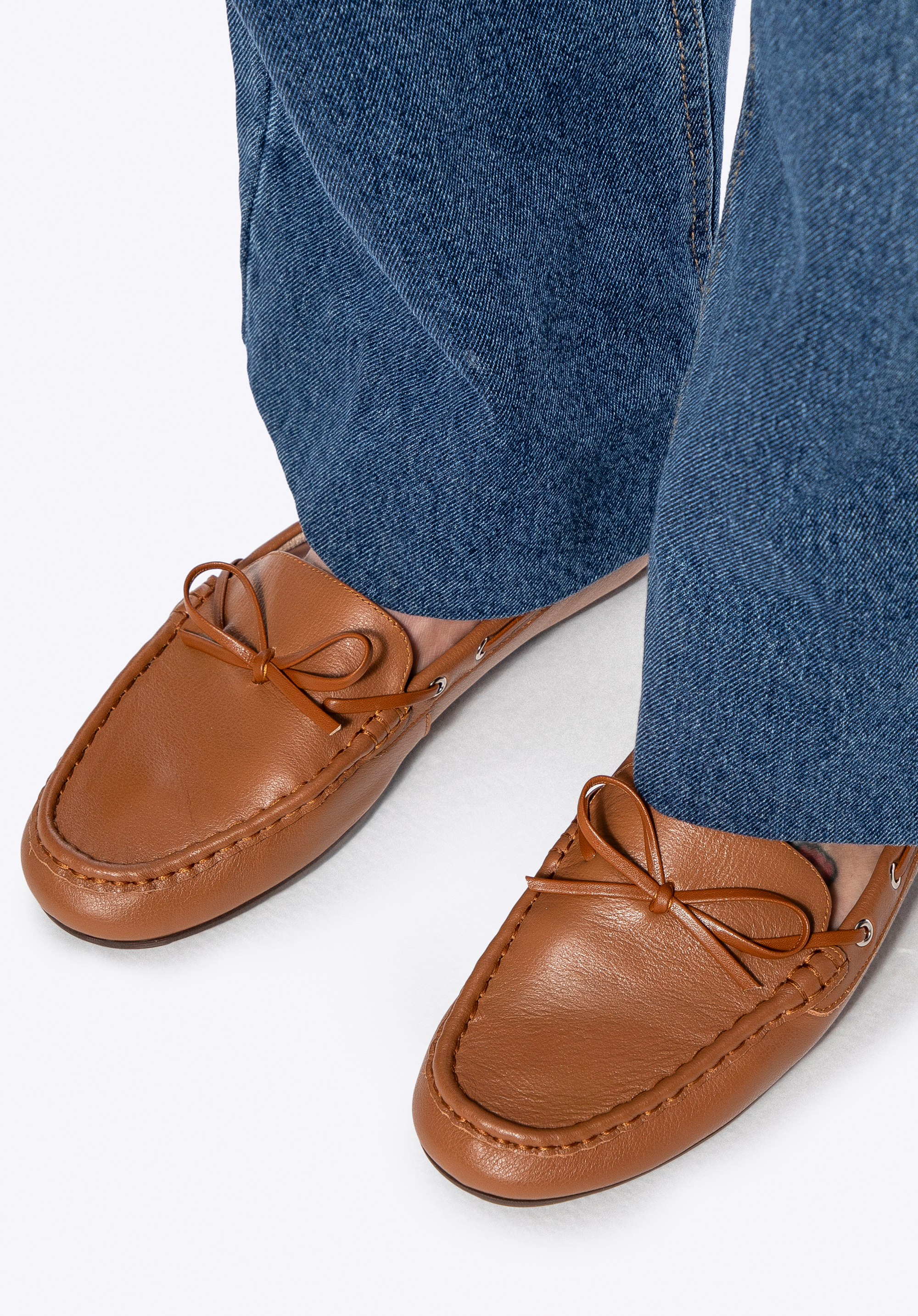 Damskie mokasyny ze skóry z rzemykiem brązowe