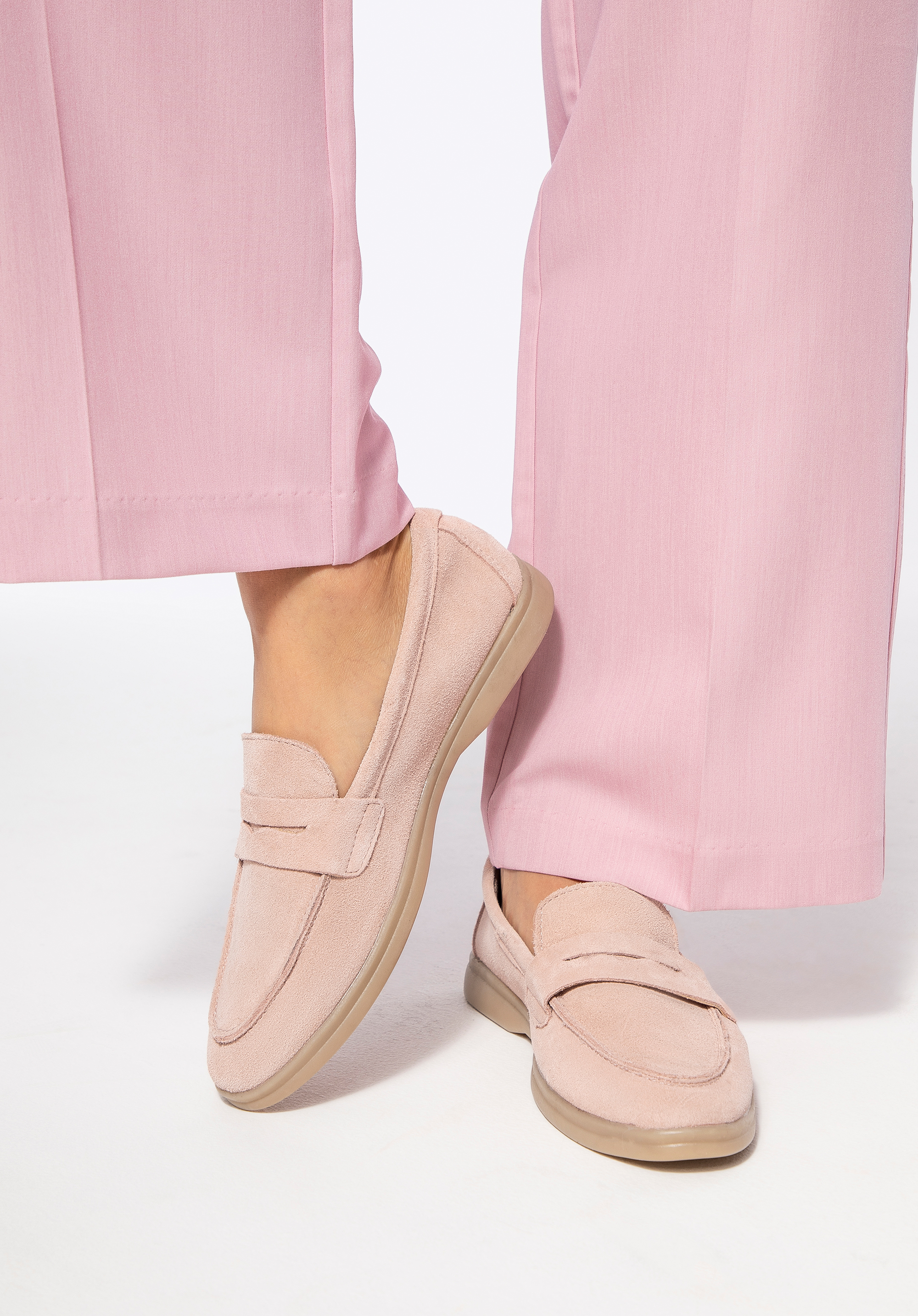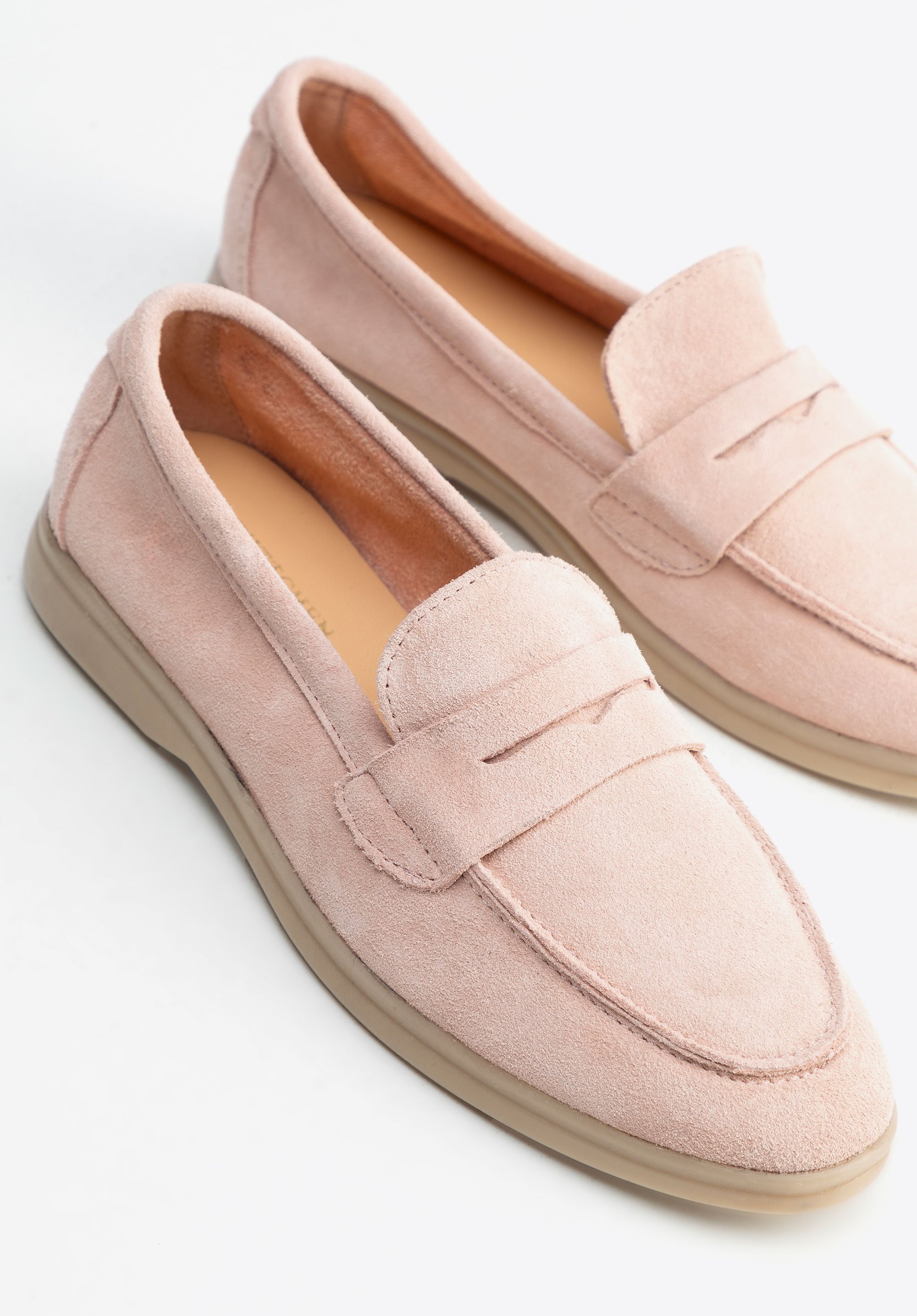 Damskie mokasyny z zamszowej skóry to połączenie elegancji, komfortu i wszechstronności. Wykonane z miękkiego zamszu, z wkładką z ekoskóry i wyściółką z mikrofibry, te buty gwarantują wygodę przez cały dzień. Płaska podeszwa z materiału TPR zapewnia elastyczność i trwałość, a zaokrąglony nosek dodaje subtelnej lekkości i uroku. Model wsuwany to kwintesencja wygody, idealny do codziennego użytku, kiedy liczy się szybkie założenie obuwia i komfort przez cały dzień.