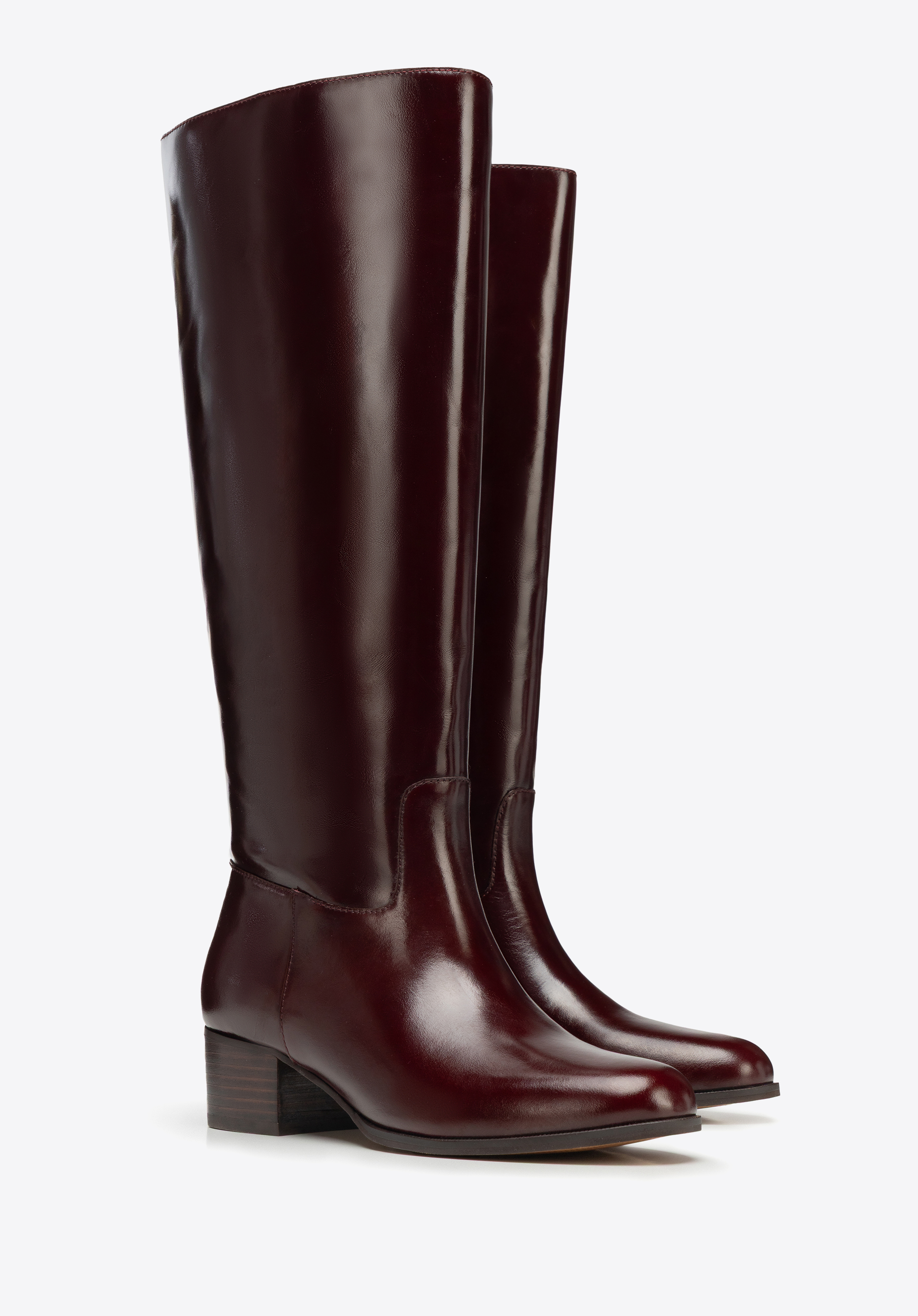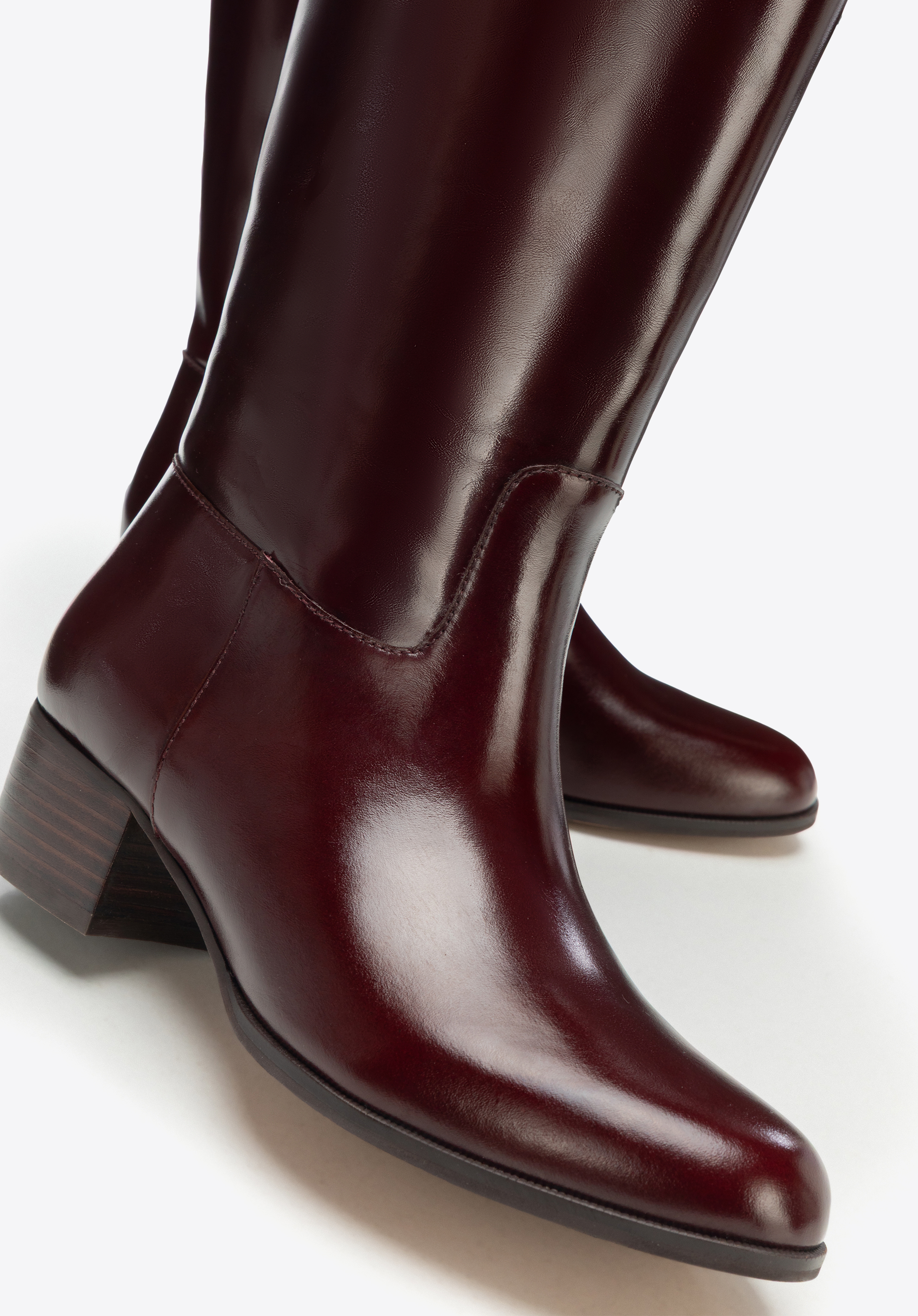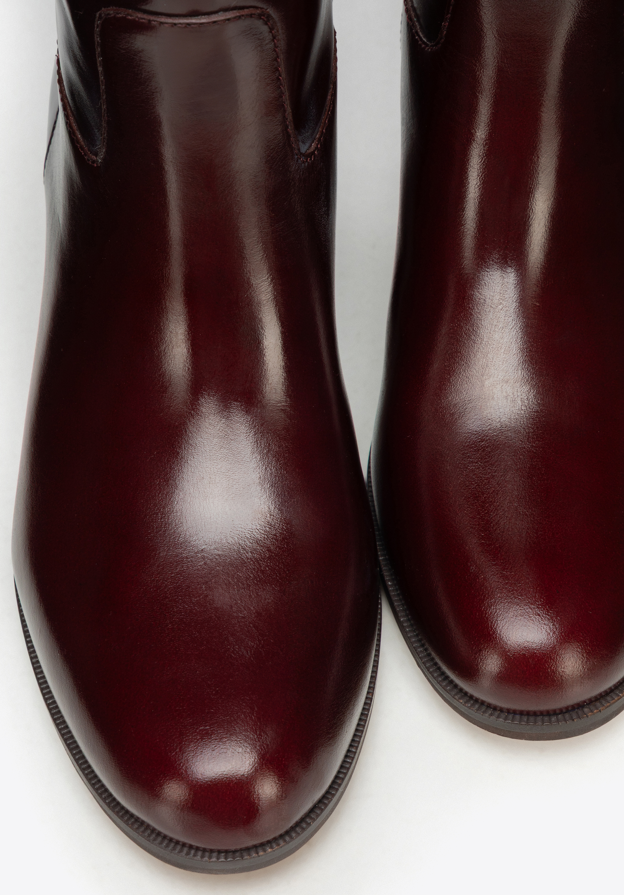 Damskie oficerki ze skóry naturalnej na słupku bordowe