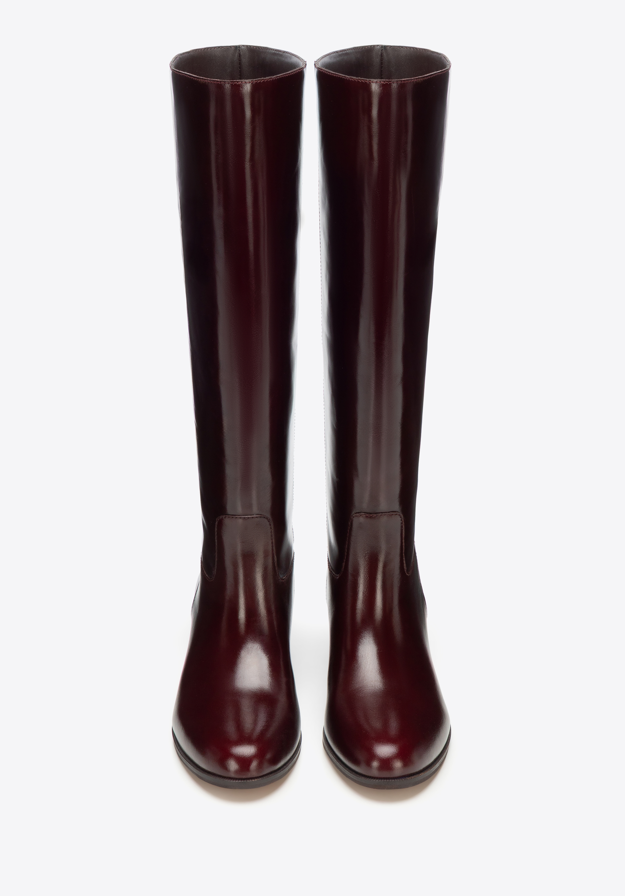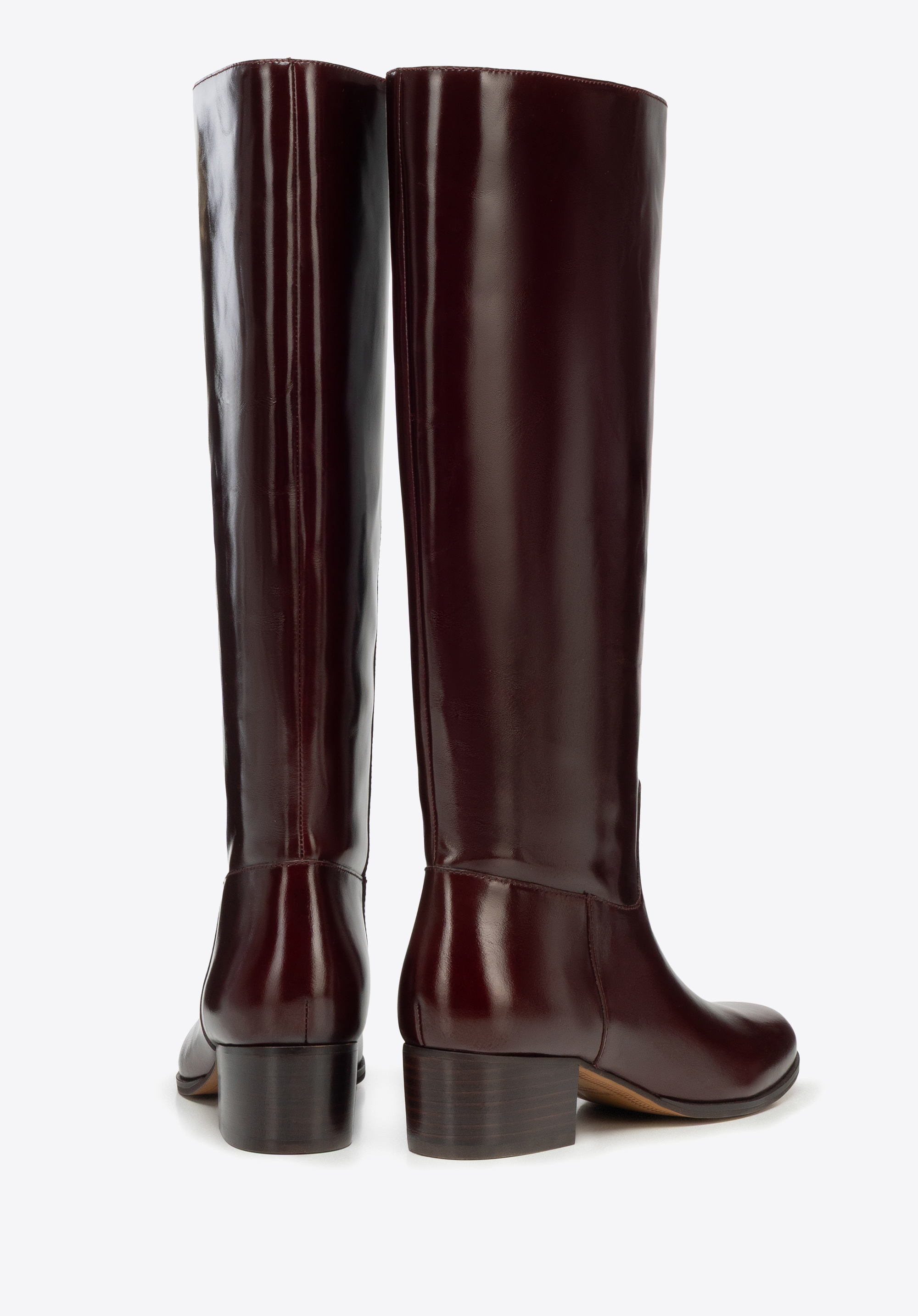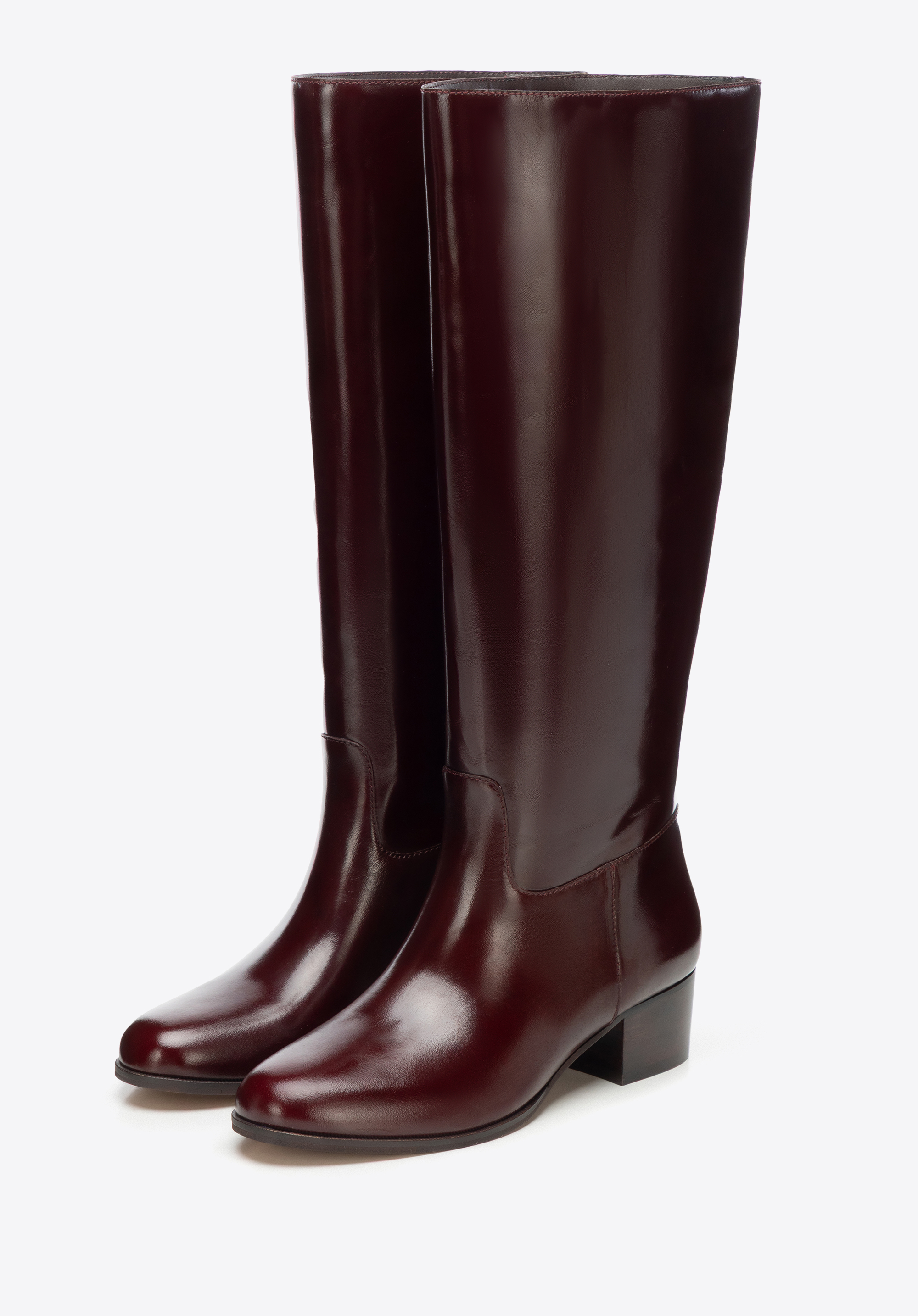 Damskie oficerki ze skóry naturalnej na słupku bordowe