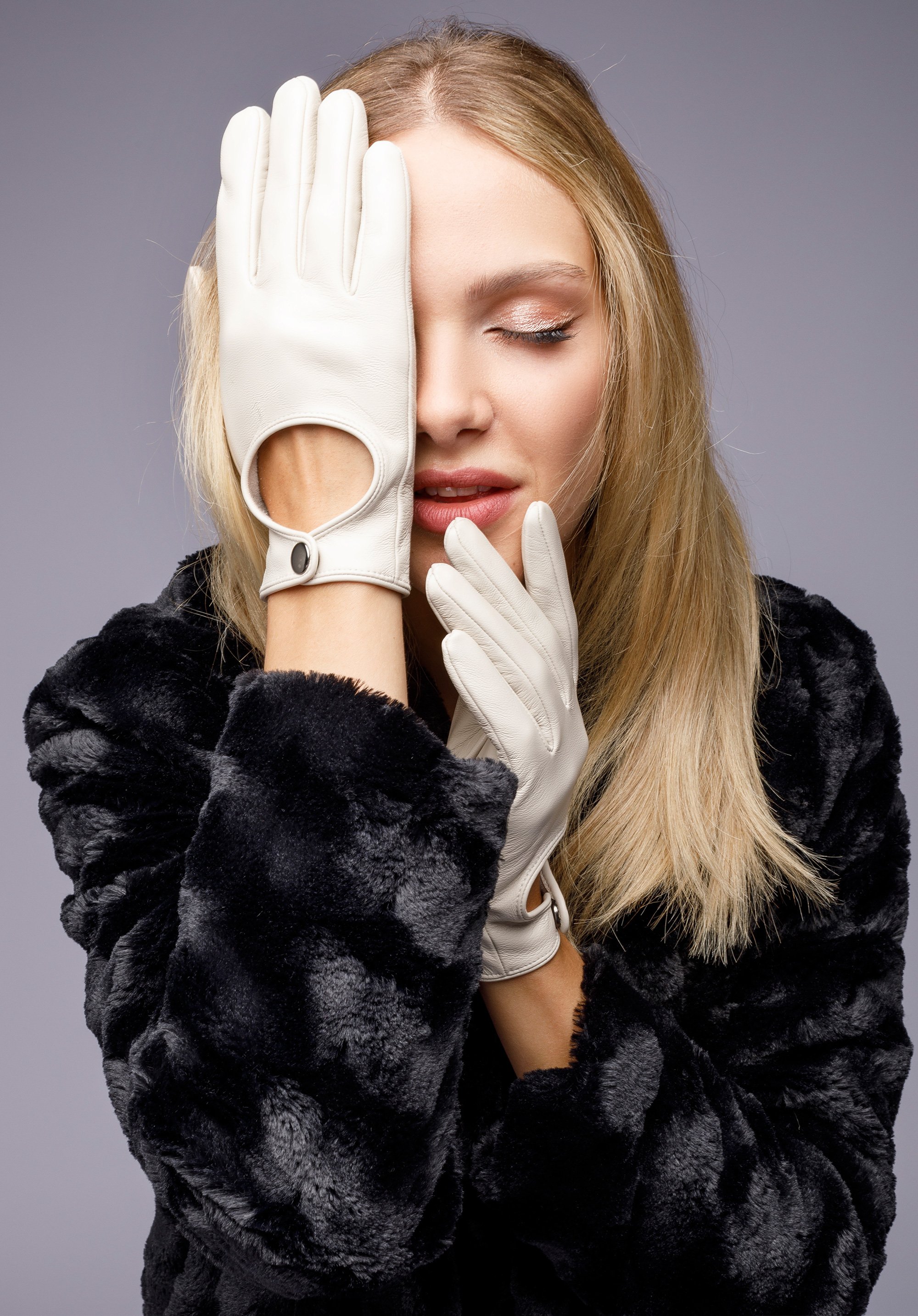 Damskie rękawiczki samochodowe proste kremowe