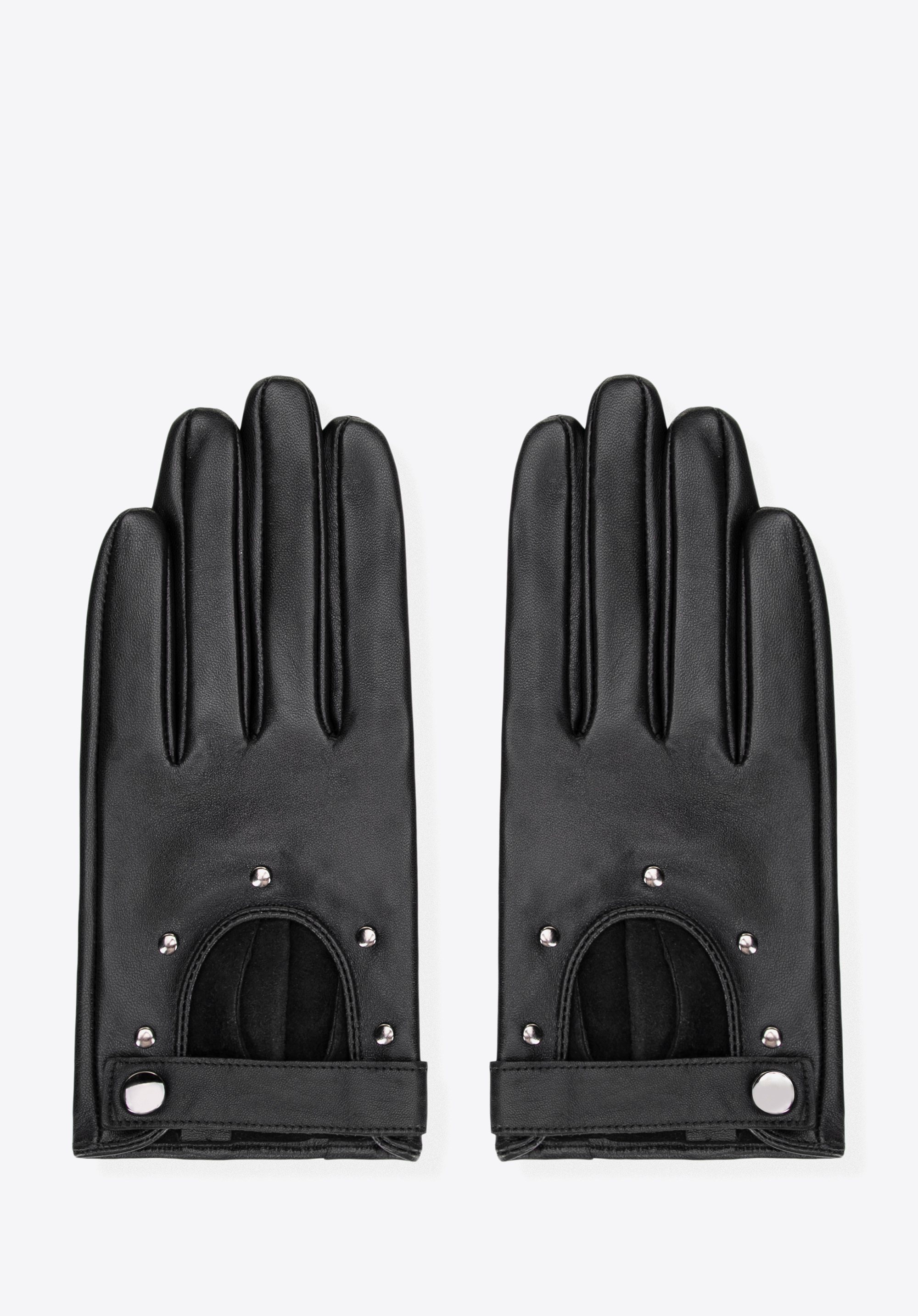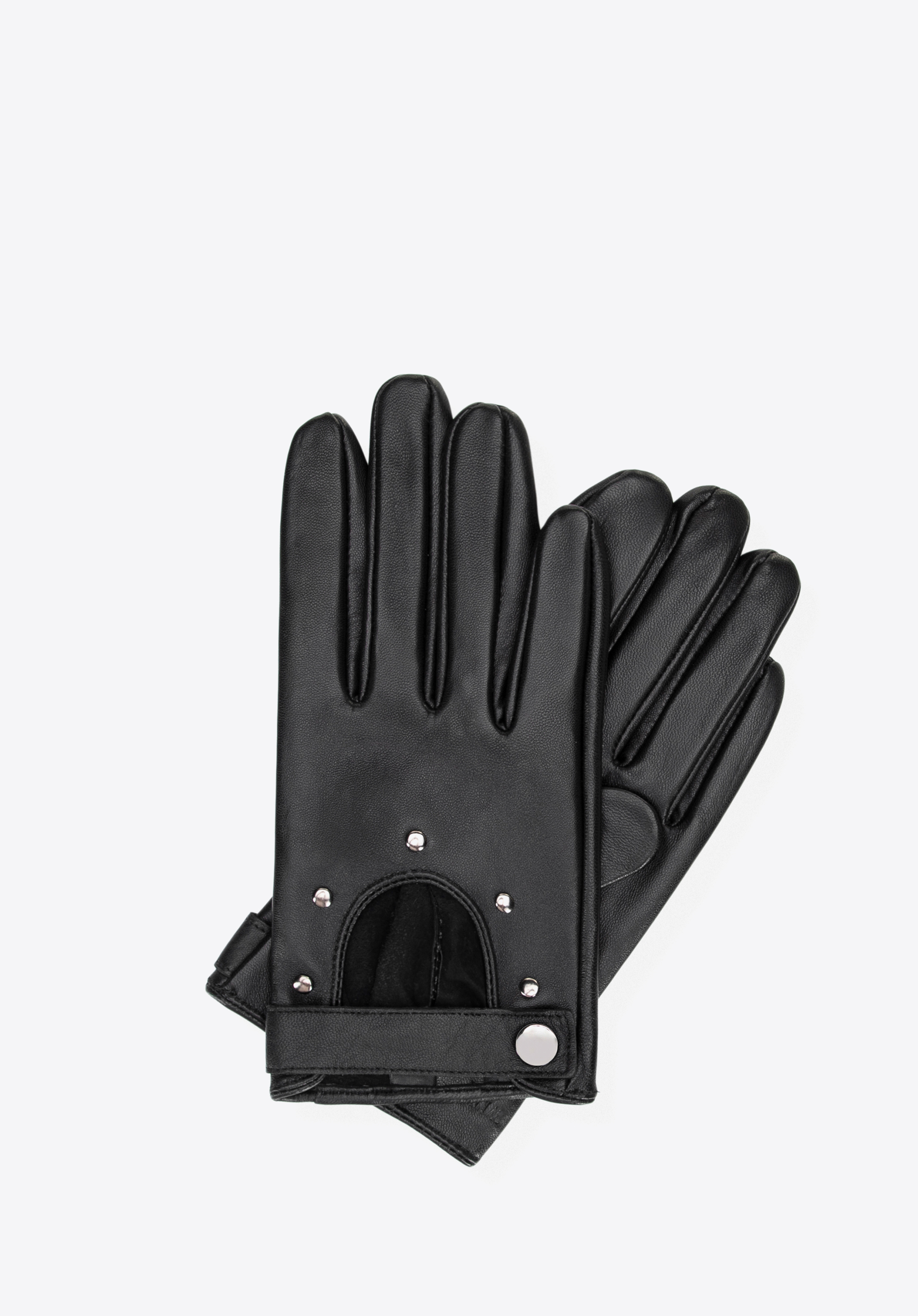 Damskie rękawiczki samochodowe skórzane z nitami to stylowy dodatek dla kobiet, które cenią pewny chwyt i elegancję za kierownicą. Naturalna skóra zapewnia komfort noszenia, a ozdobne nity nadają całości wyrazisty, nowoczesny charakter.