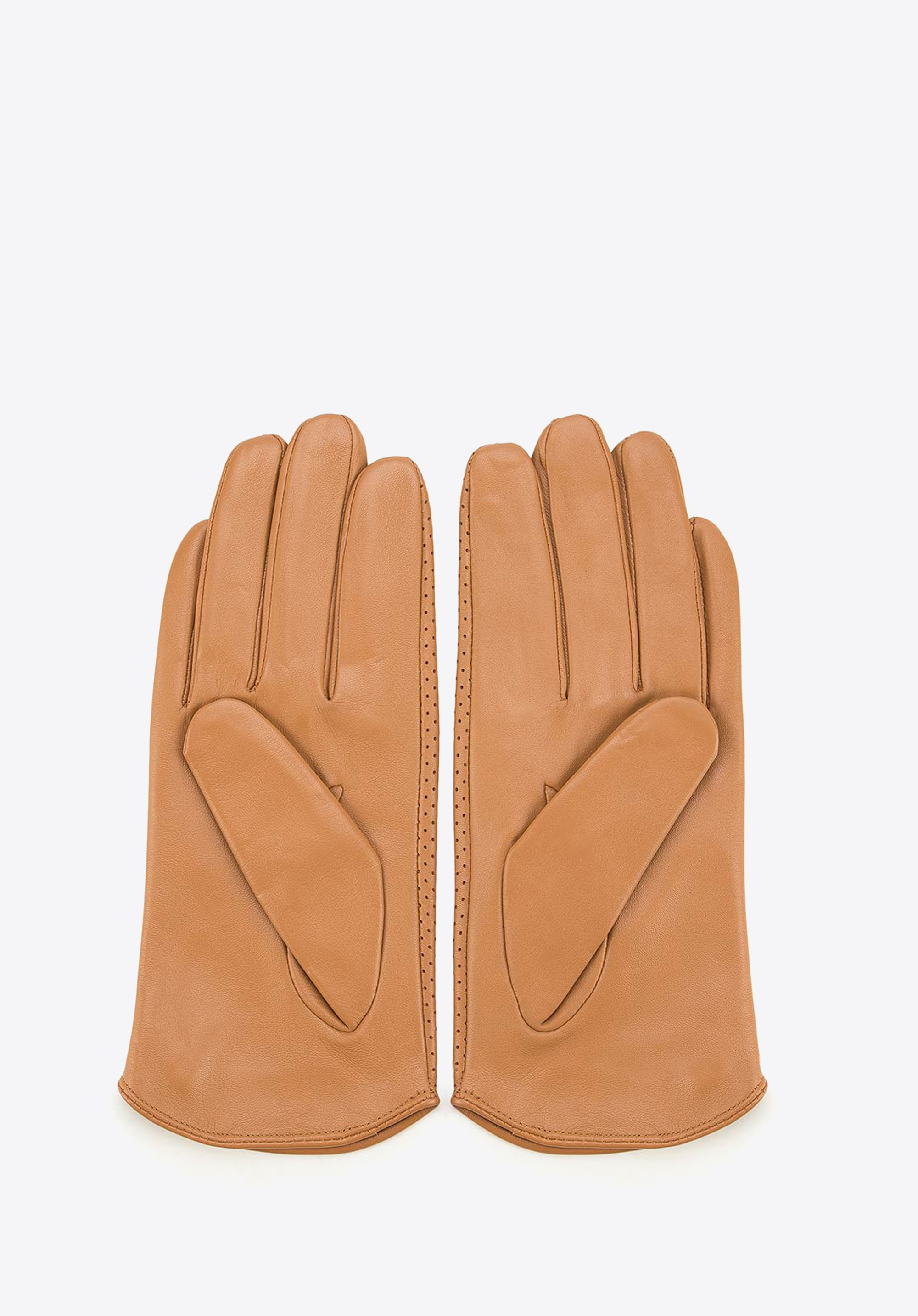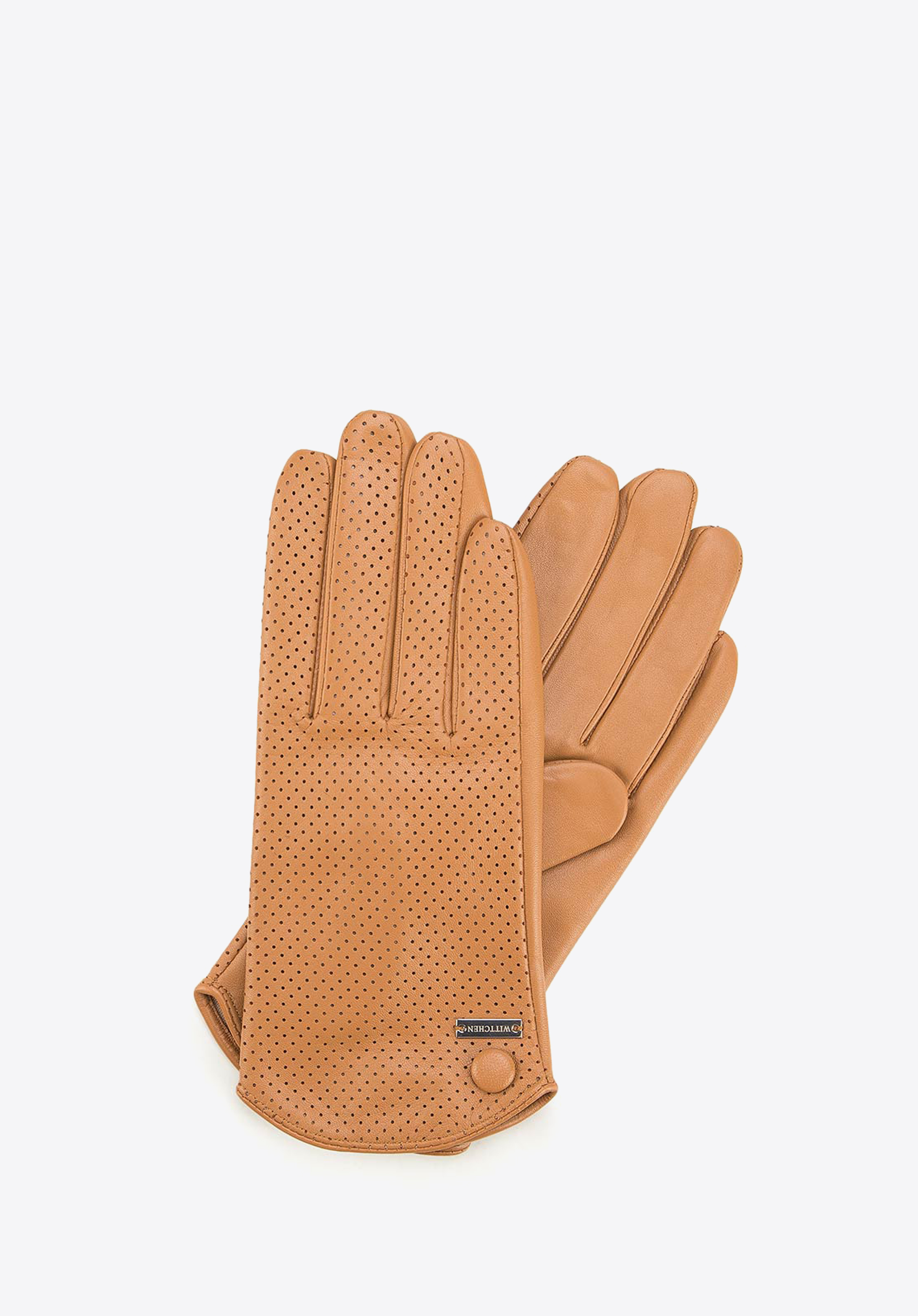 nieocieplane rękawiczki damskie, wykonane z najwyższej jakości skóry owczej. Detale - ażurowy motyw oraz ozdobny guzik - wyglądają bardzo kobieco. W tych eleganckich rękawiczkach dłonie będą wyglądały smukło i atrakcyjnie.