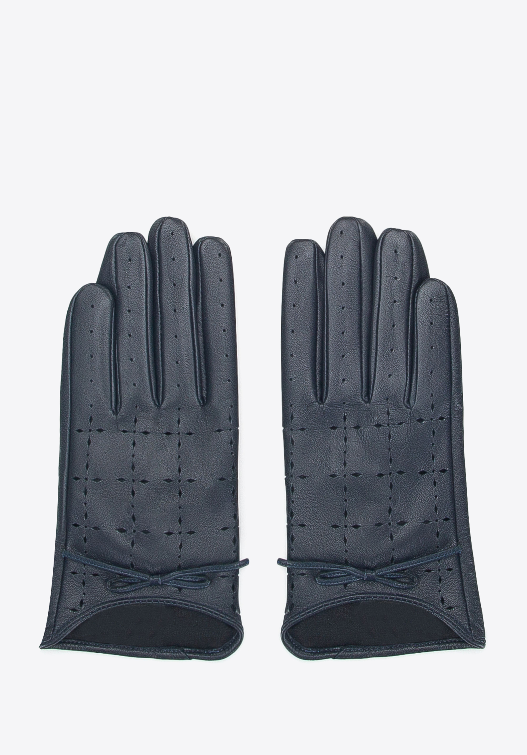 Damskie rękawiczki skórzane dziurkowane pięknie uzupełnią stylizacje na przejściową pogodę i eleganckie wyjścia, gdy liczy się lekkość i detal. Skóra owcza miękko układa się na dłoni, perforowany wzór dodaje subtelności, a kokardka podkreśla dopracowany charakter dodatku.