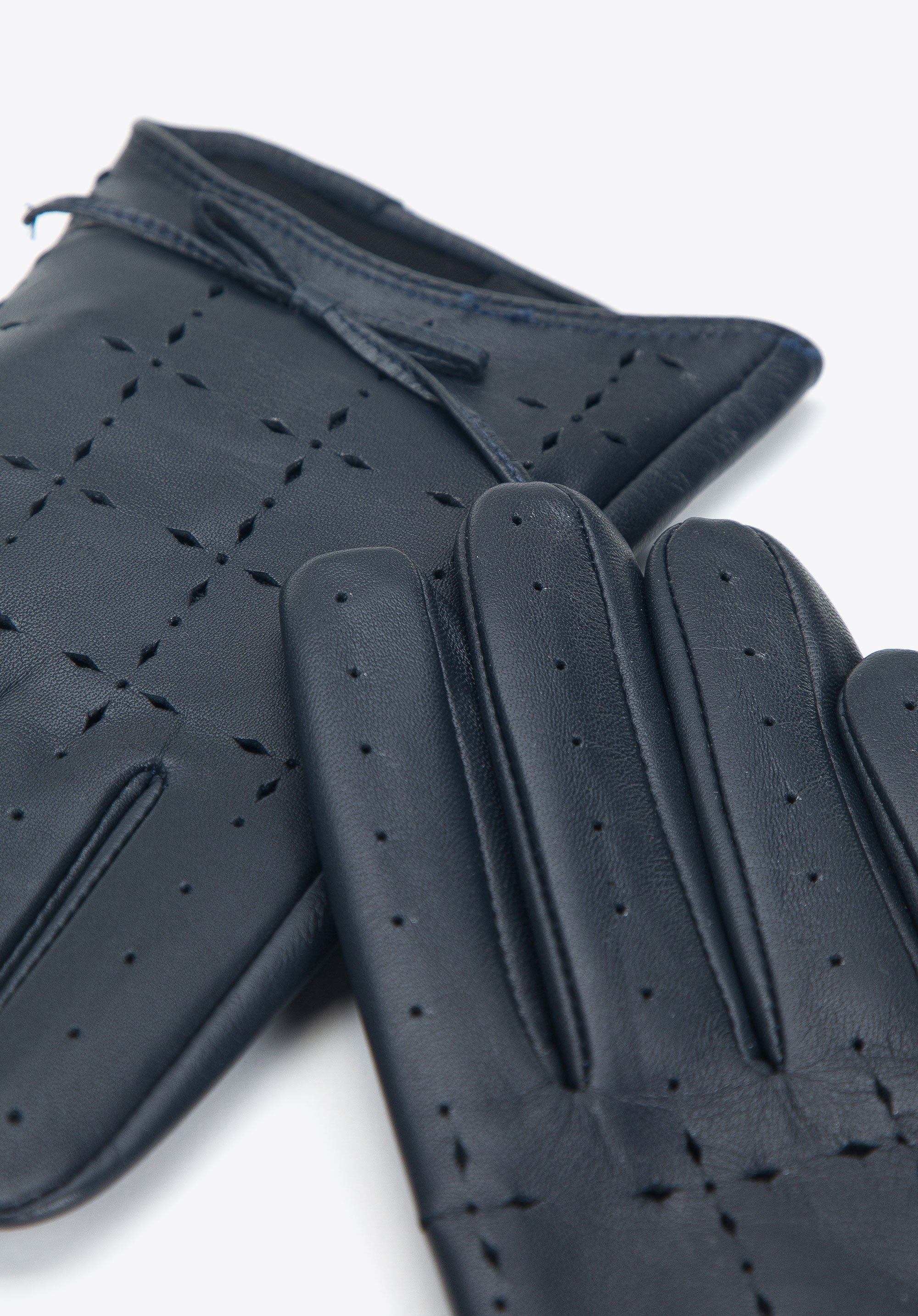 z najwyższej jakości skóry owczej. Subtelne dziurkowane wzory, które zdobią model sprawiają, że rękawiczki nabierają kobiecej delikatności. Całość podkreślona