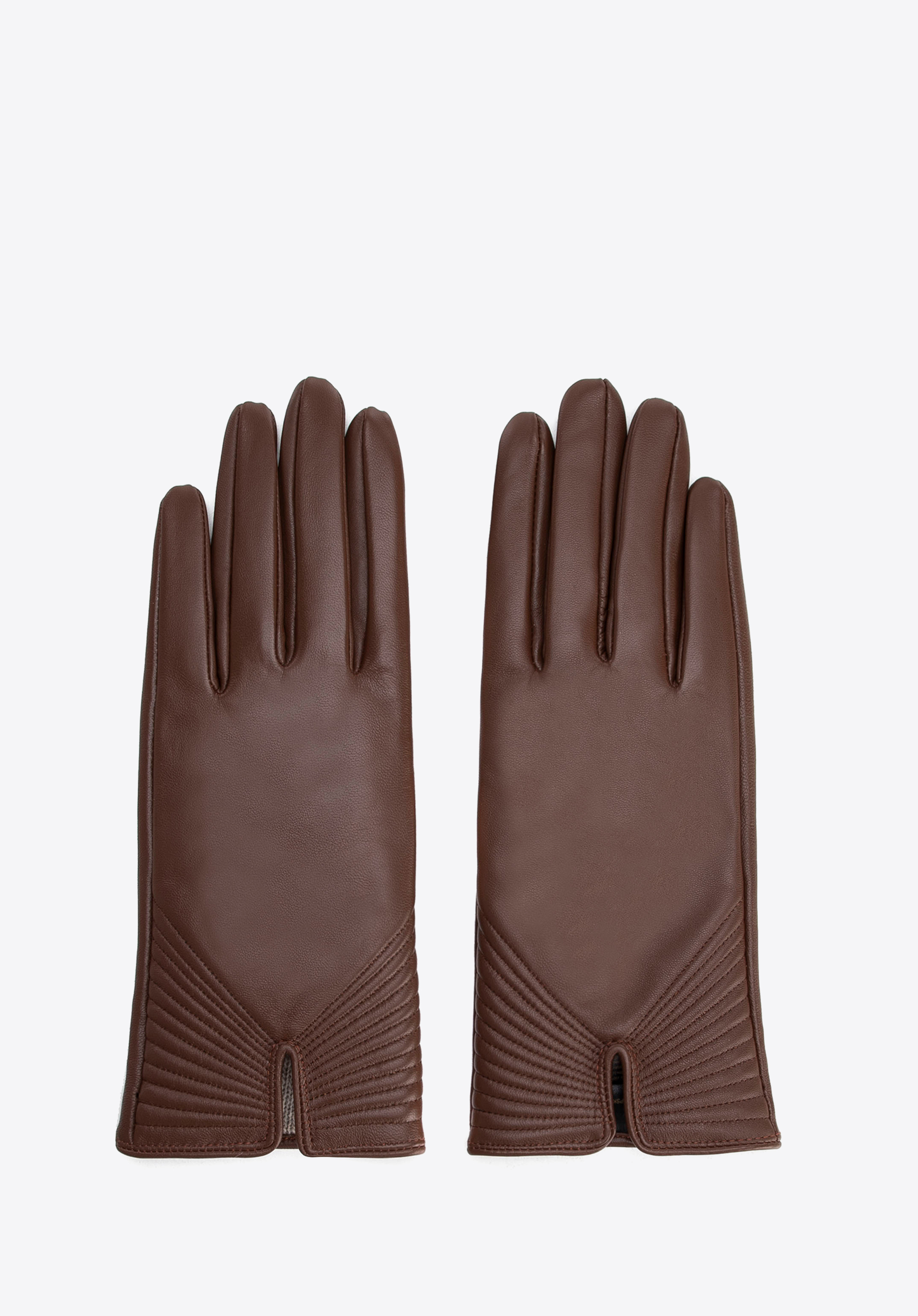 Skórzane rękawiczki z dekoracyjnymi przeszyciami