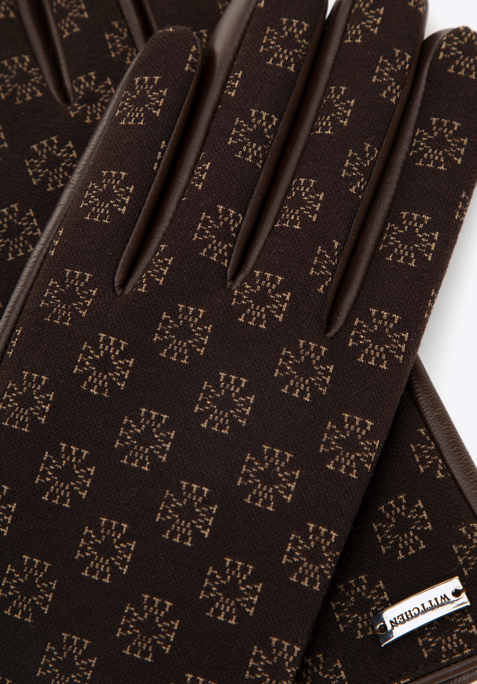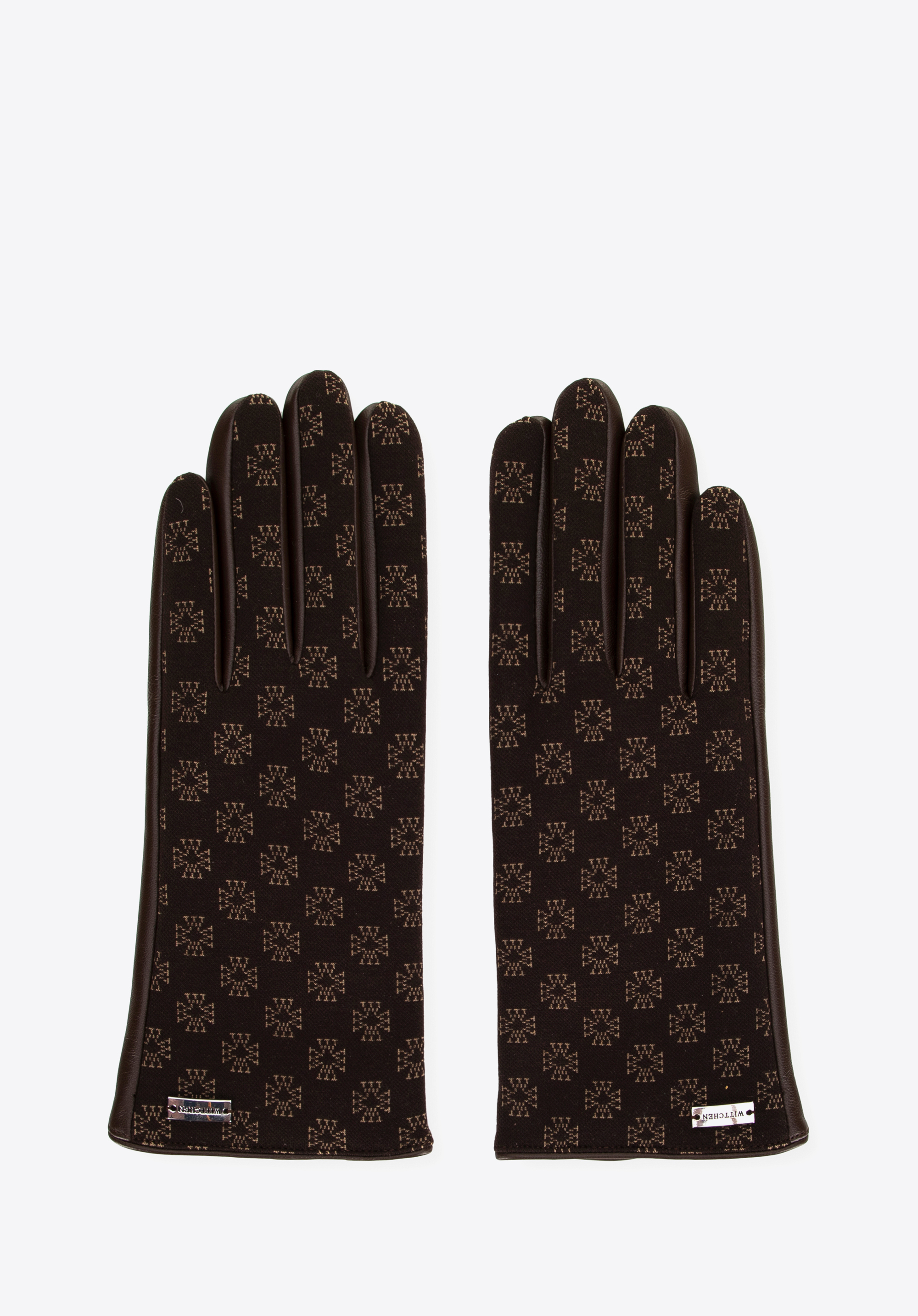 Damskie rękawiczki skórzane z monogramem brązowe