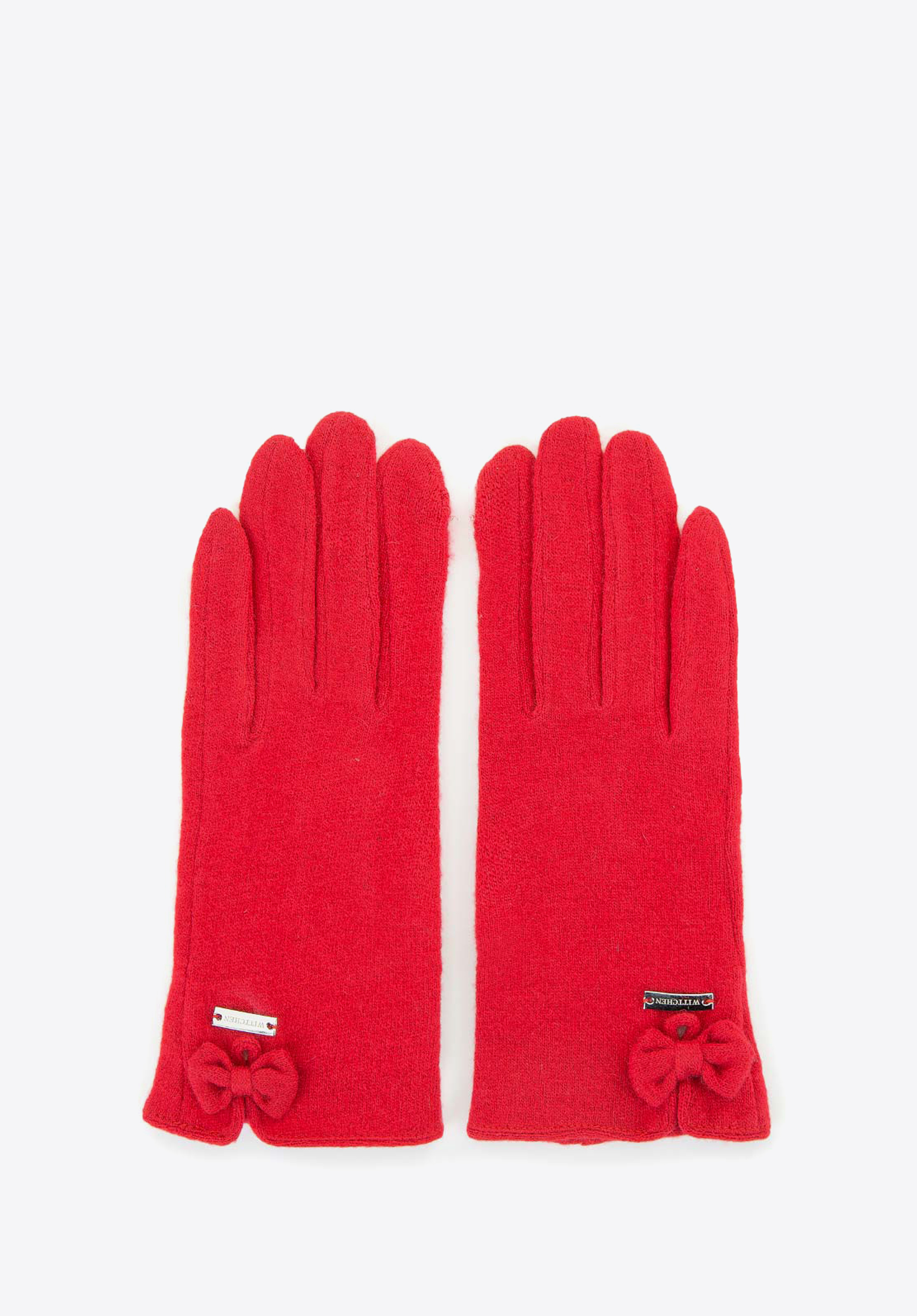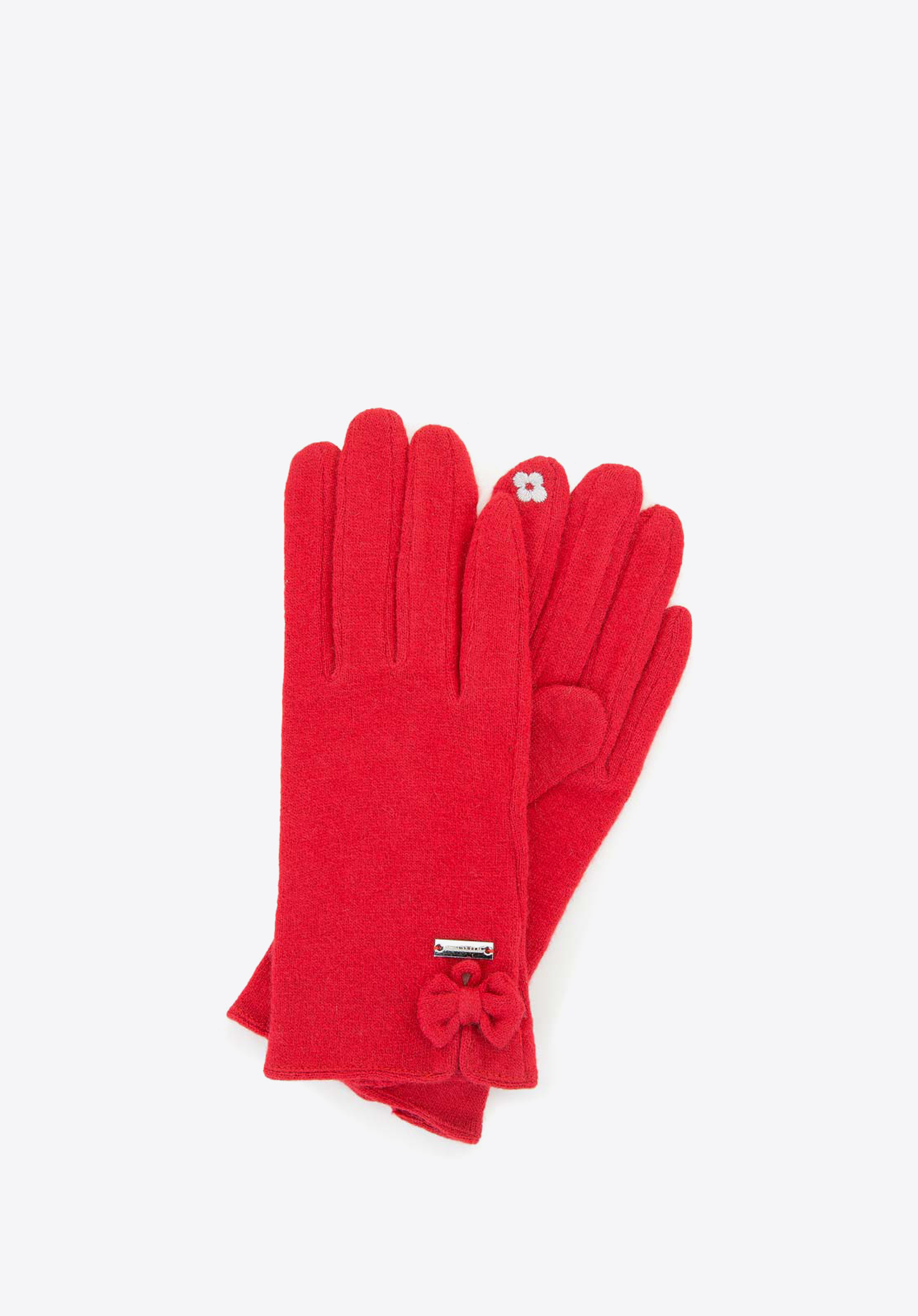 Stylowe rękawiczki o prostym kształcie, ozdobione dzianinową kokardką. Dzięki specjalnemu haftowi pod palcem wskazującym i kciukiem obsłużysz ekran dotykowy bez zdejmowania rękawiczki – funkcja na wagę złota, gdy chcesz coś sprawdzić na zimnie w telefonie. Będą szykownym zwieńczeniem Twojego zimowego looku.