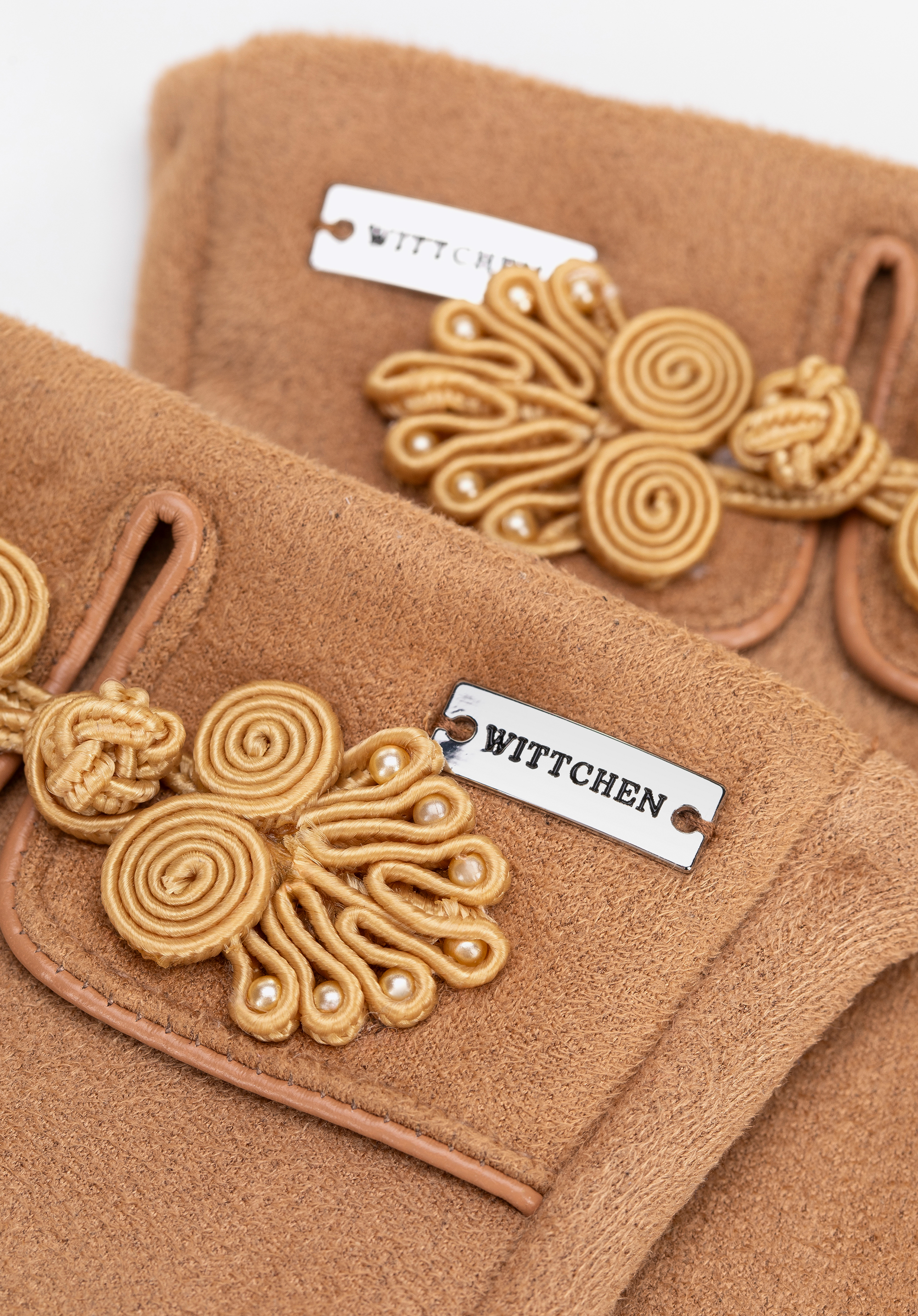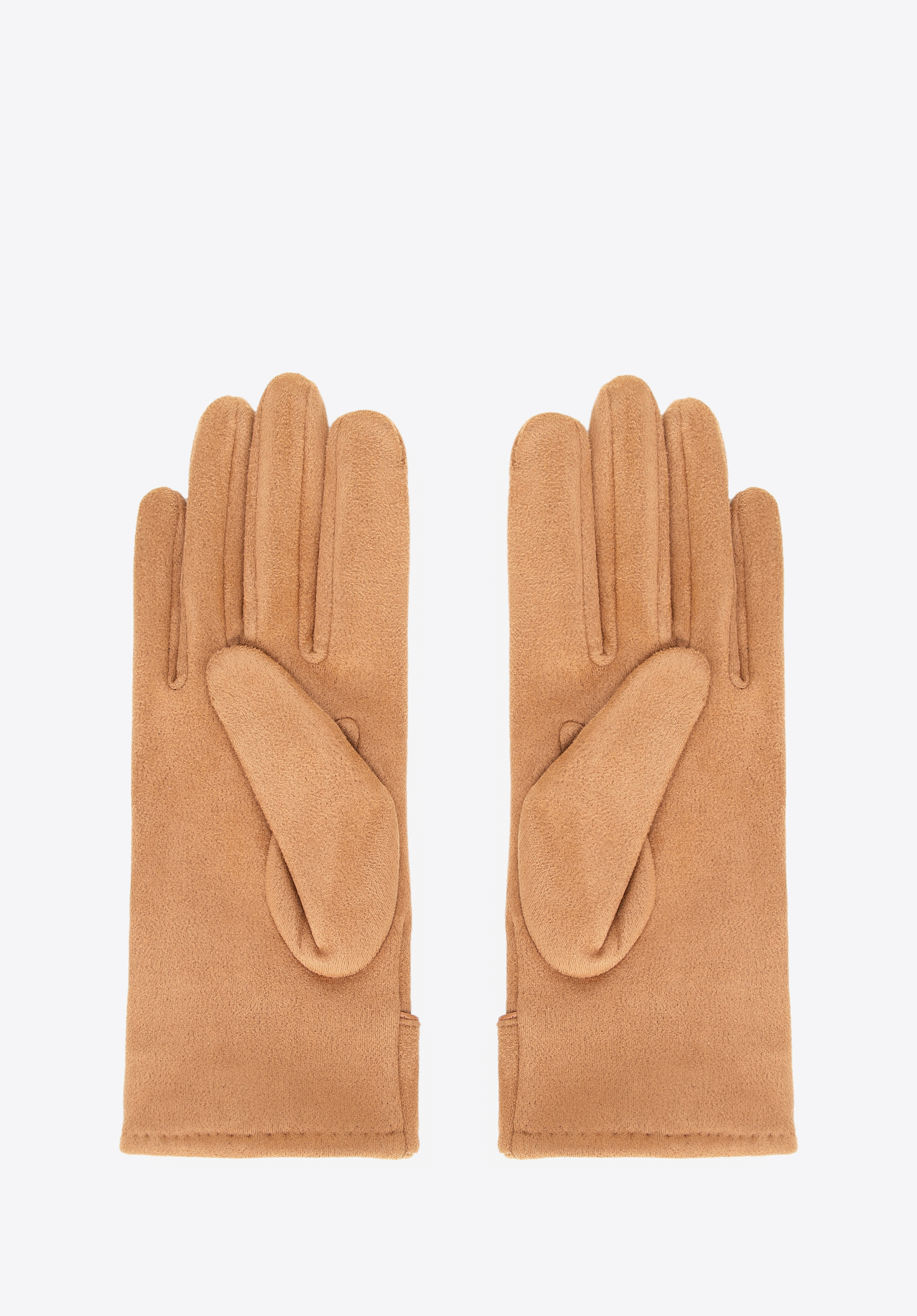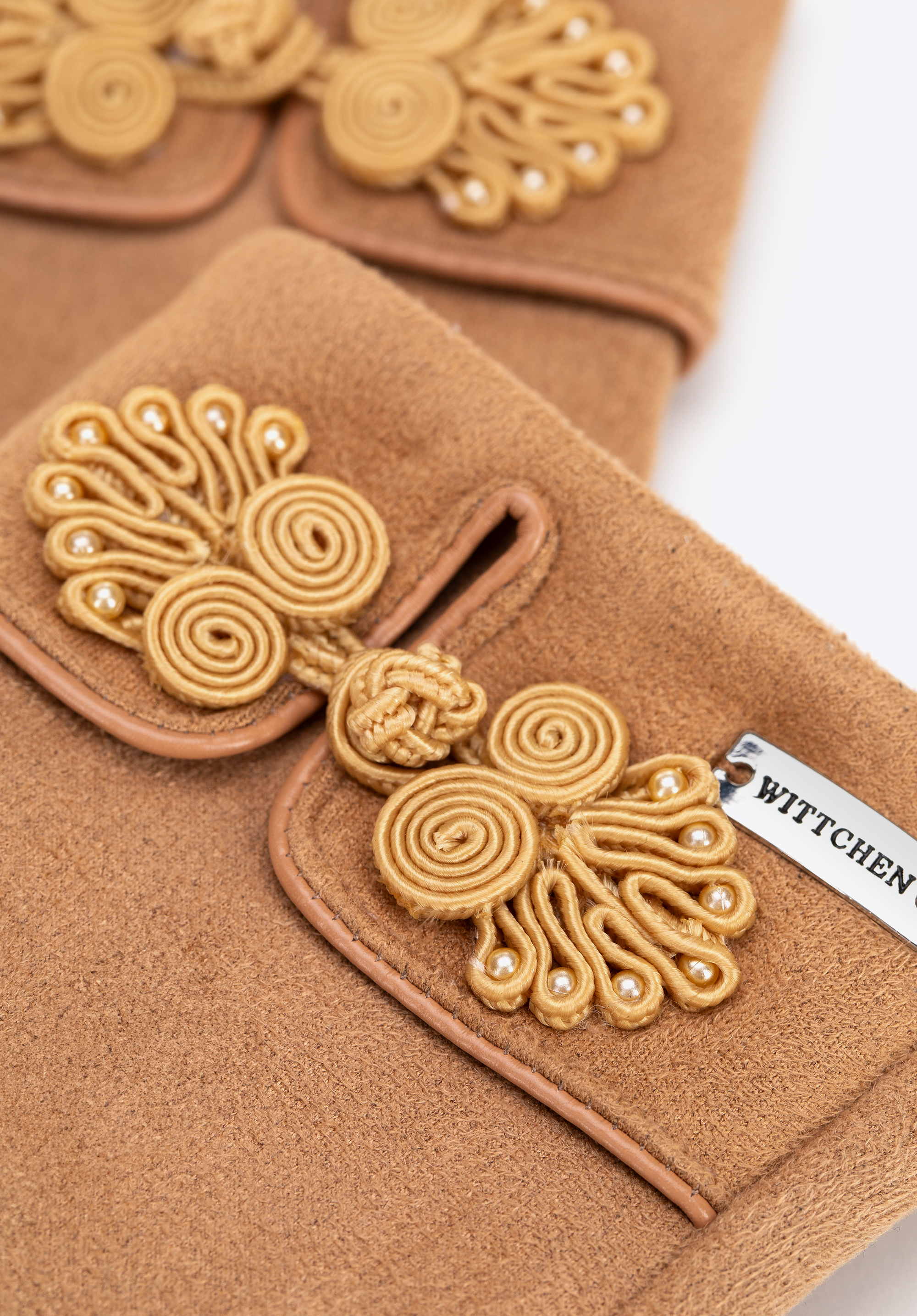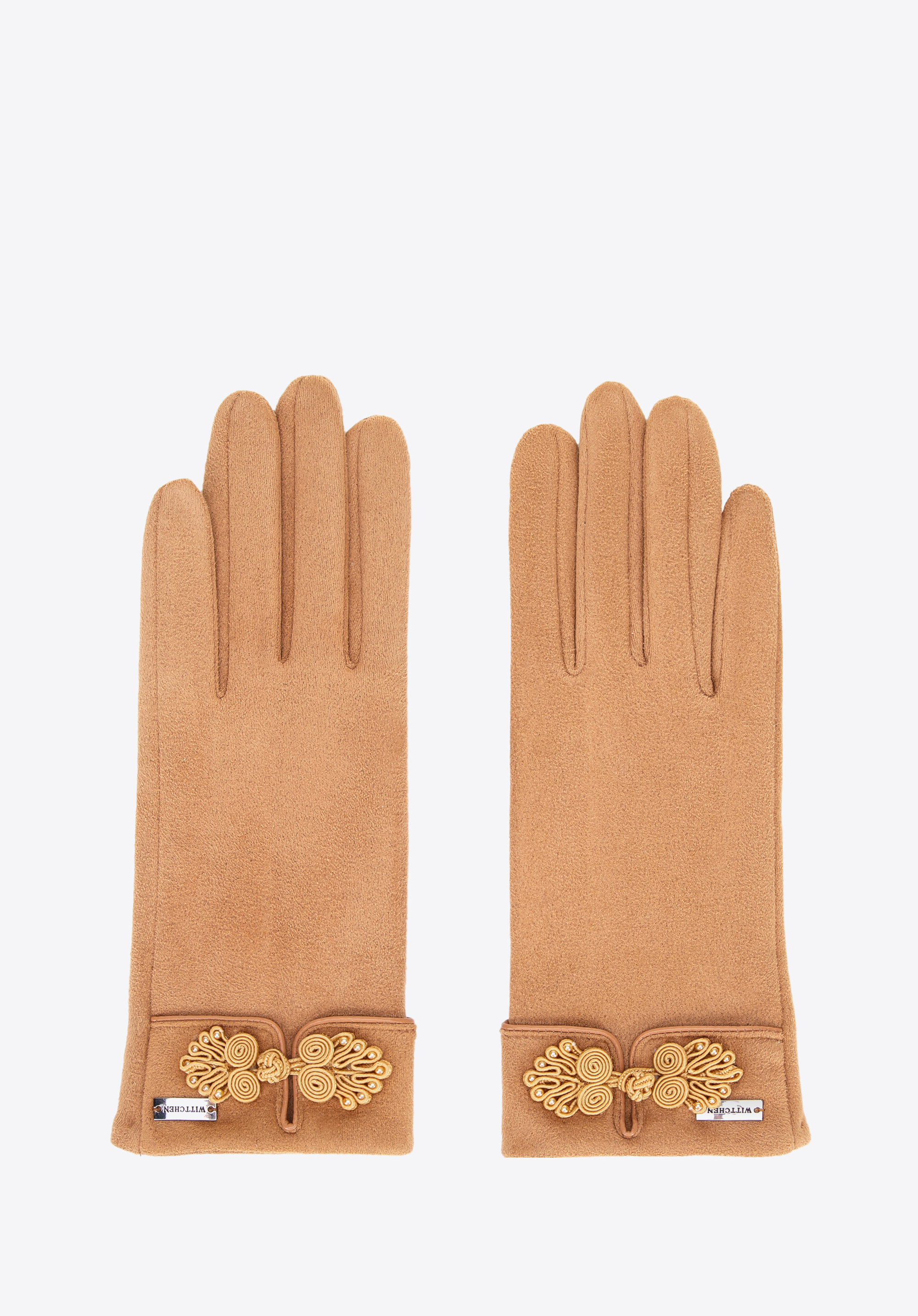 Damskie rękawiczki z dekoracyjnym akcentem jasny brąz