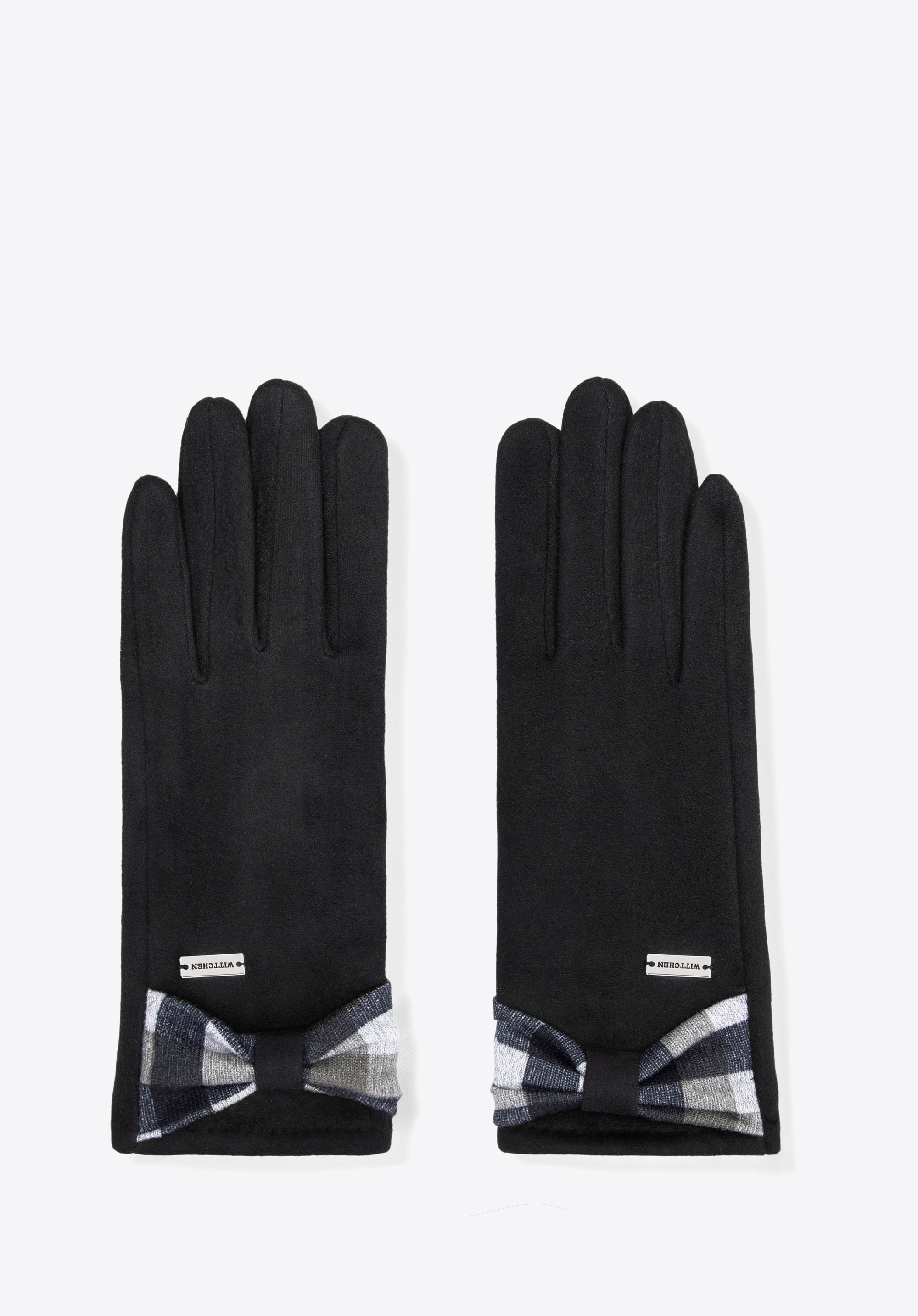 Kobieca lekkość i styl — rękawiczki z kokardą w kratę