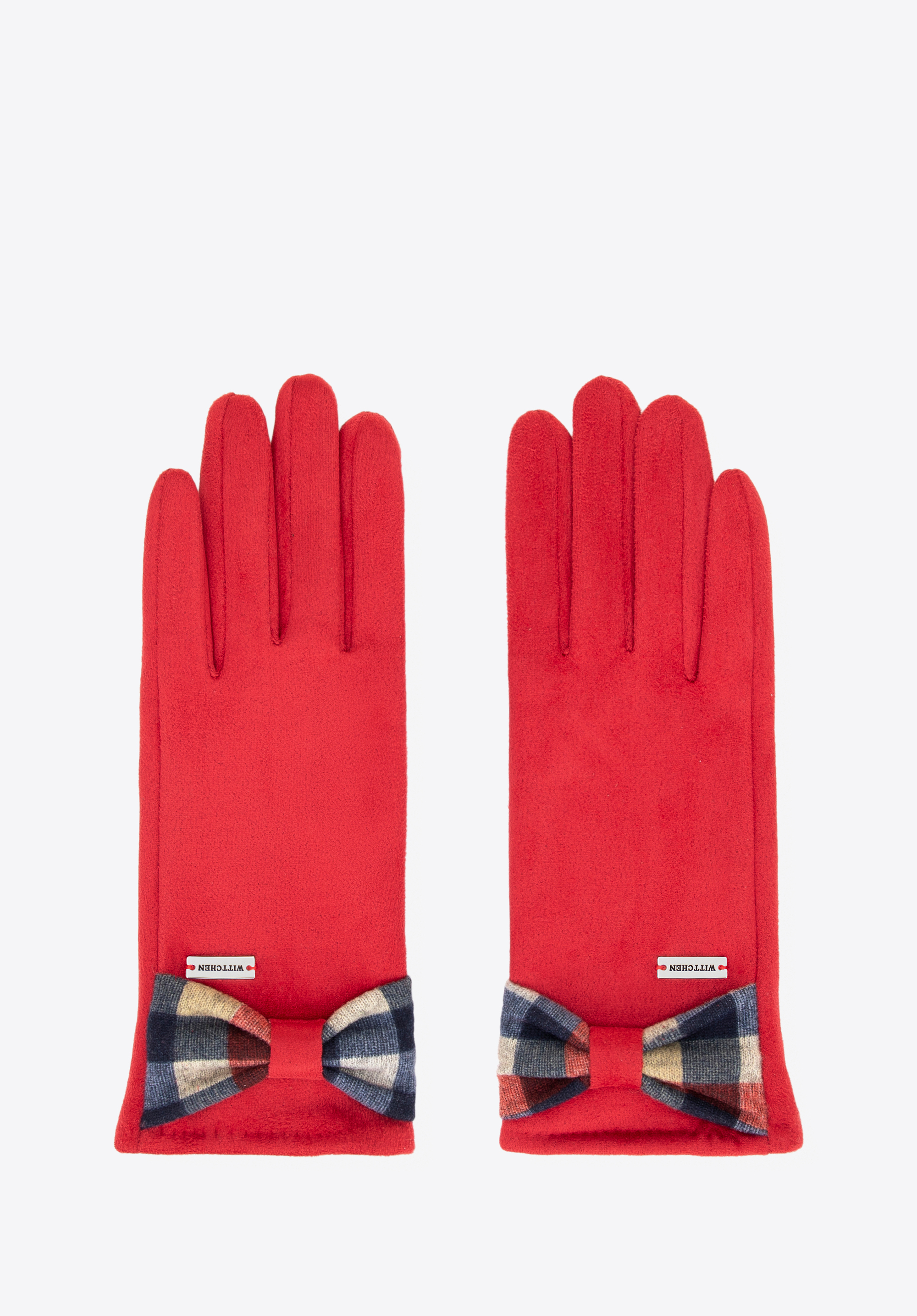Kobieca lekkość i styl — rękawiczki z kokardą w kratę