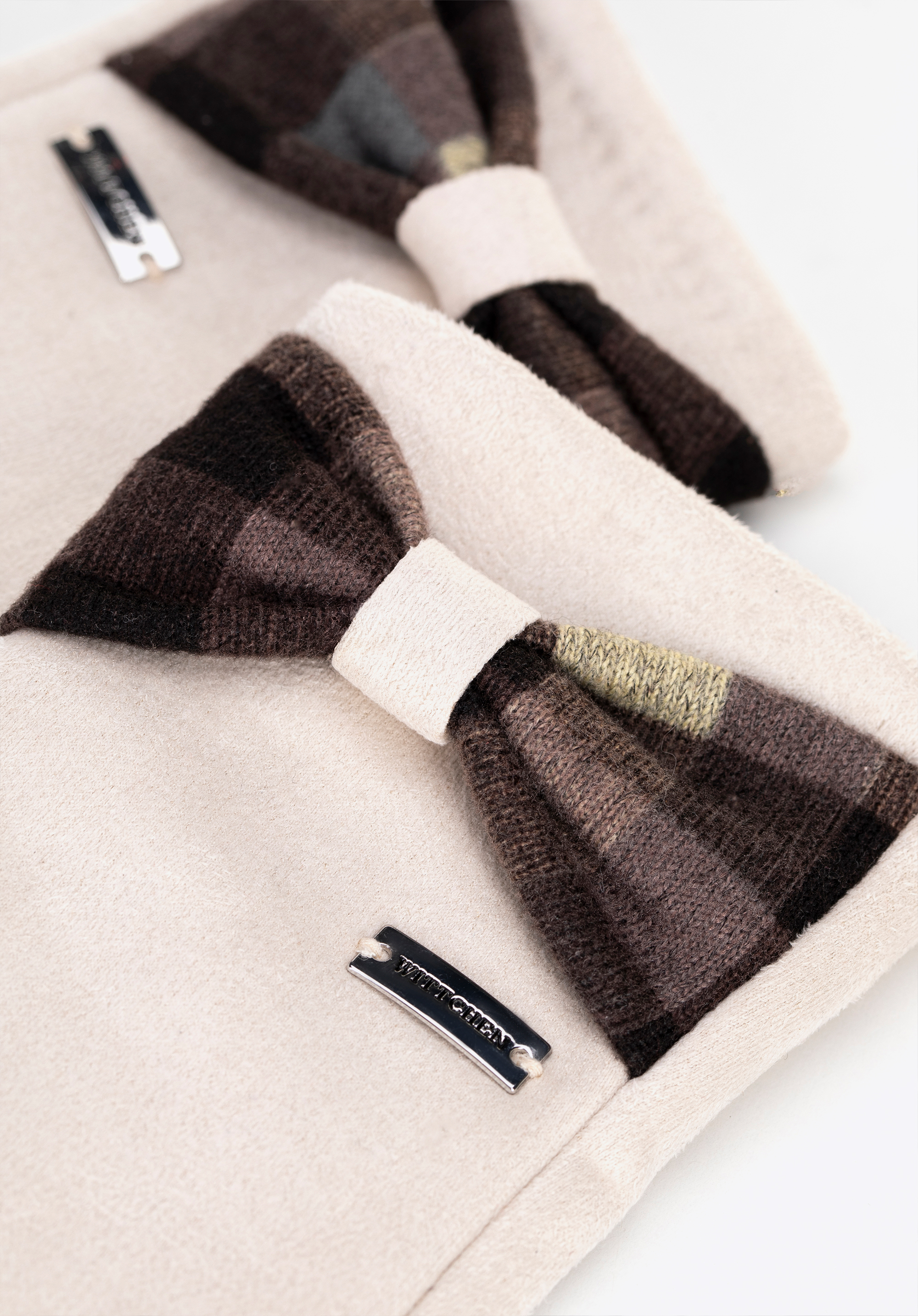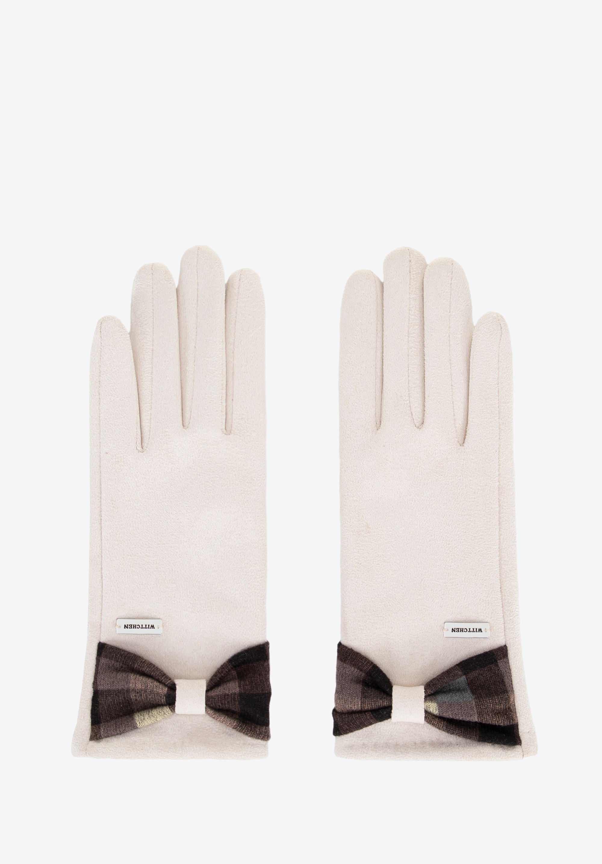 Kobieca lekkość i styl — rękawiczki z kokardą w kratę