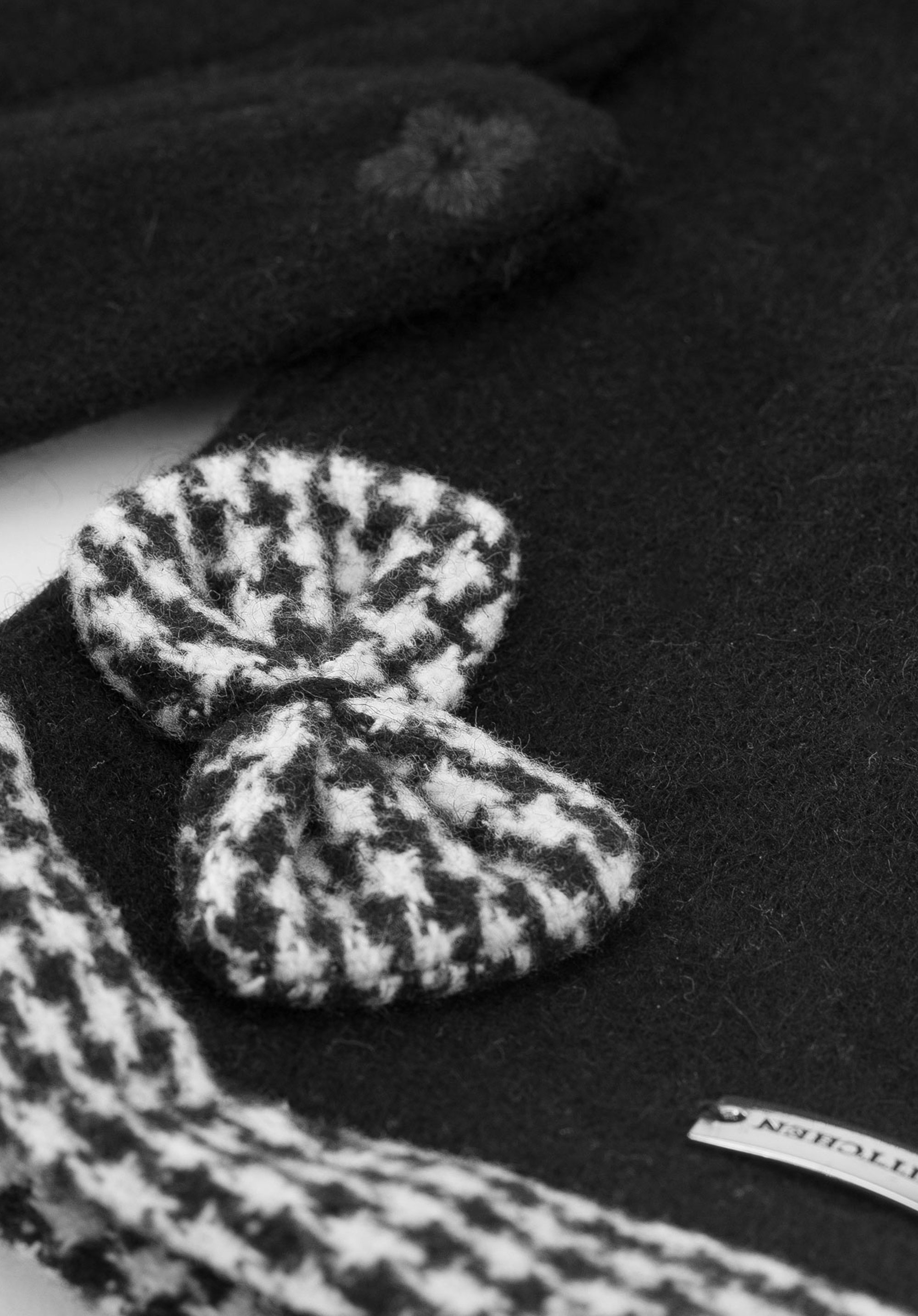 Damskie rękawiczki z kokardą w pepitkę będą idealne na chłodniejsze dni dla miłośniczek klasyki z subtelnym wzorem, szczególnie do wełnianych płaszczy i miejskich stylizacji. Wysoka zawartość wełny przyjemnie otula dłonie, a funkcja obsługi ekranów dotykowych pozwala zachować wygodę bez rezygnacji ze stylu.