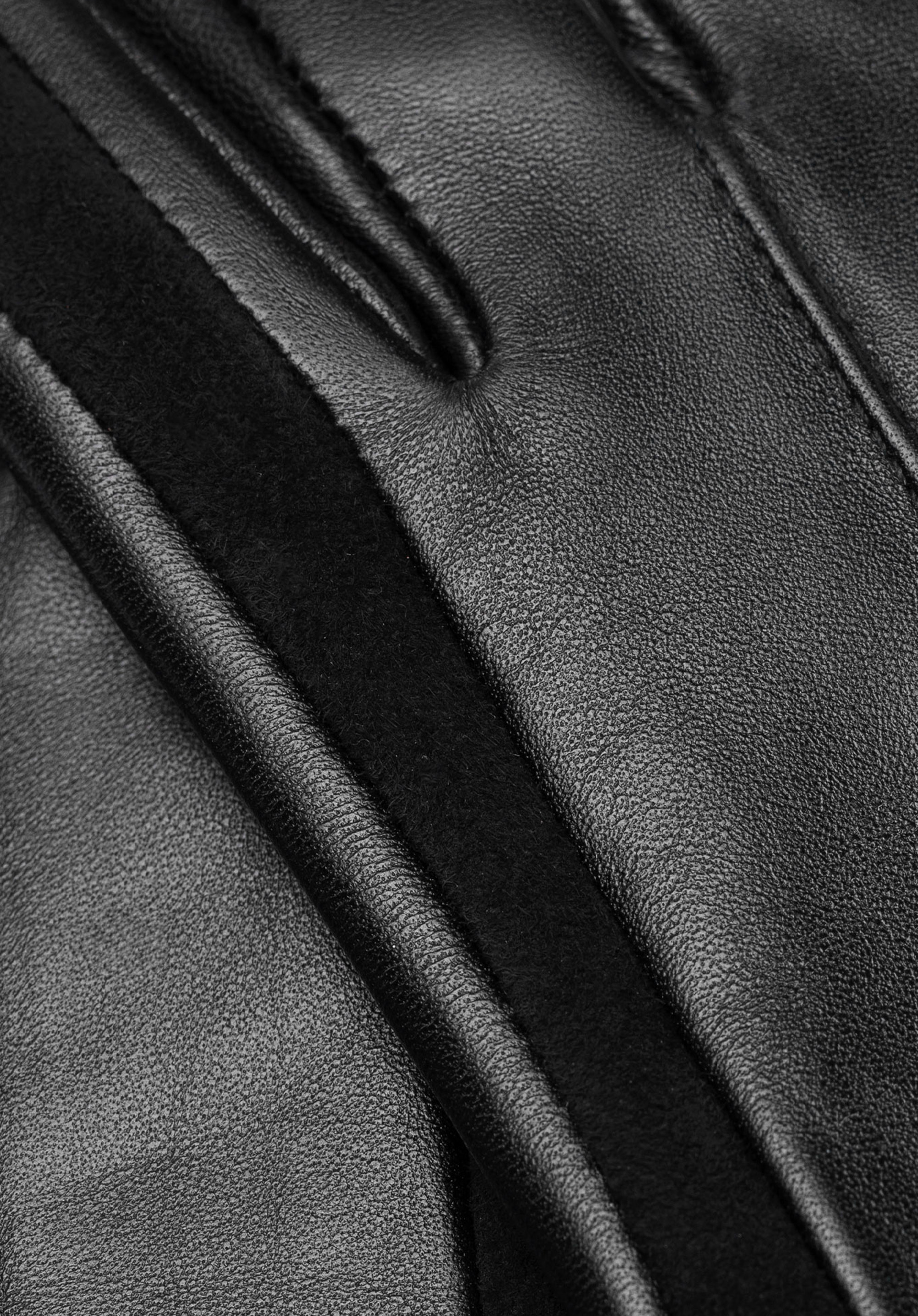 Te damskie rękawiczki wykonano z najwyższej jakości, naturalnej skóry owczej, która zachwyca miękkością, elastycznością i trwałością. Gładka powierzchnia skóry nadaje im ponadczasowy, minimalistyczny charakter, a subtelne wstawki z miękkiego zamszu dodają delikatnej tekstury i eleganckiego wykończenia. Dzięki temu rękawiczki doskonale sprawdzą się jako uzupełnienie zarówno codziennych, jak i bardziej formalnych stylizacji. Wnętrze wykończono miękką podszewką z wełny i nylonu, która skutecznie izoluje przed chłodem i zapewnia komfort noszenia nawet w najzimniejsze dni. Starannie dopasowany krój gwarantuje swobodę ruchów oraz idealne przyleganie do dłoni.