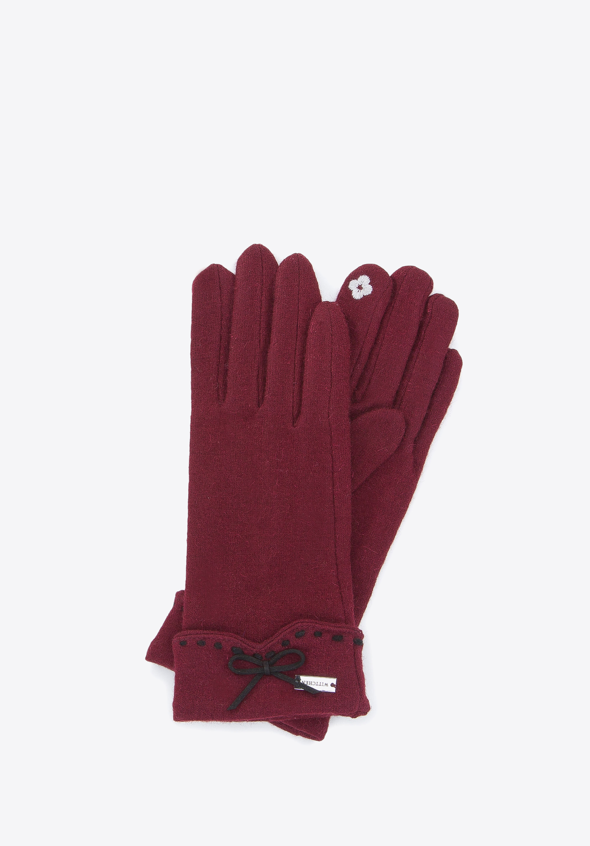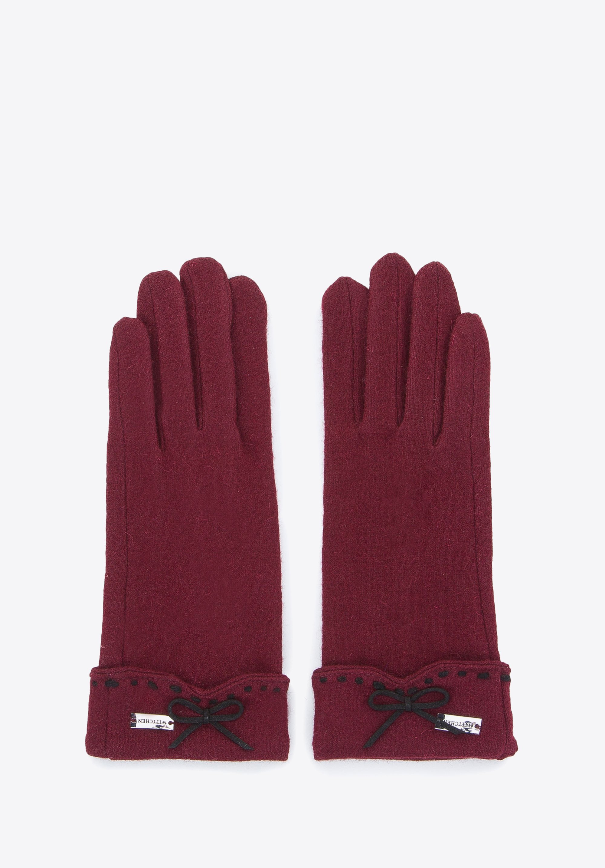 Wykonane są w 70% z wełny dzięki temu są komfortowe w noszeniu i zapewnią ciepło Twoim dłoniom. Pod palcem wskazującym jest specjalny haft, dzięki któremu możesz korzystać z ekranów dotykowych w rękawiczkach. Damskie rękawiczki z ozdobnym przeszyciem i kokardką to świetny pomysł na prezent dla każdej kobiety.