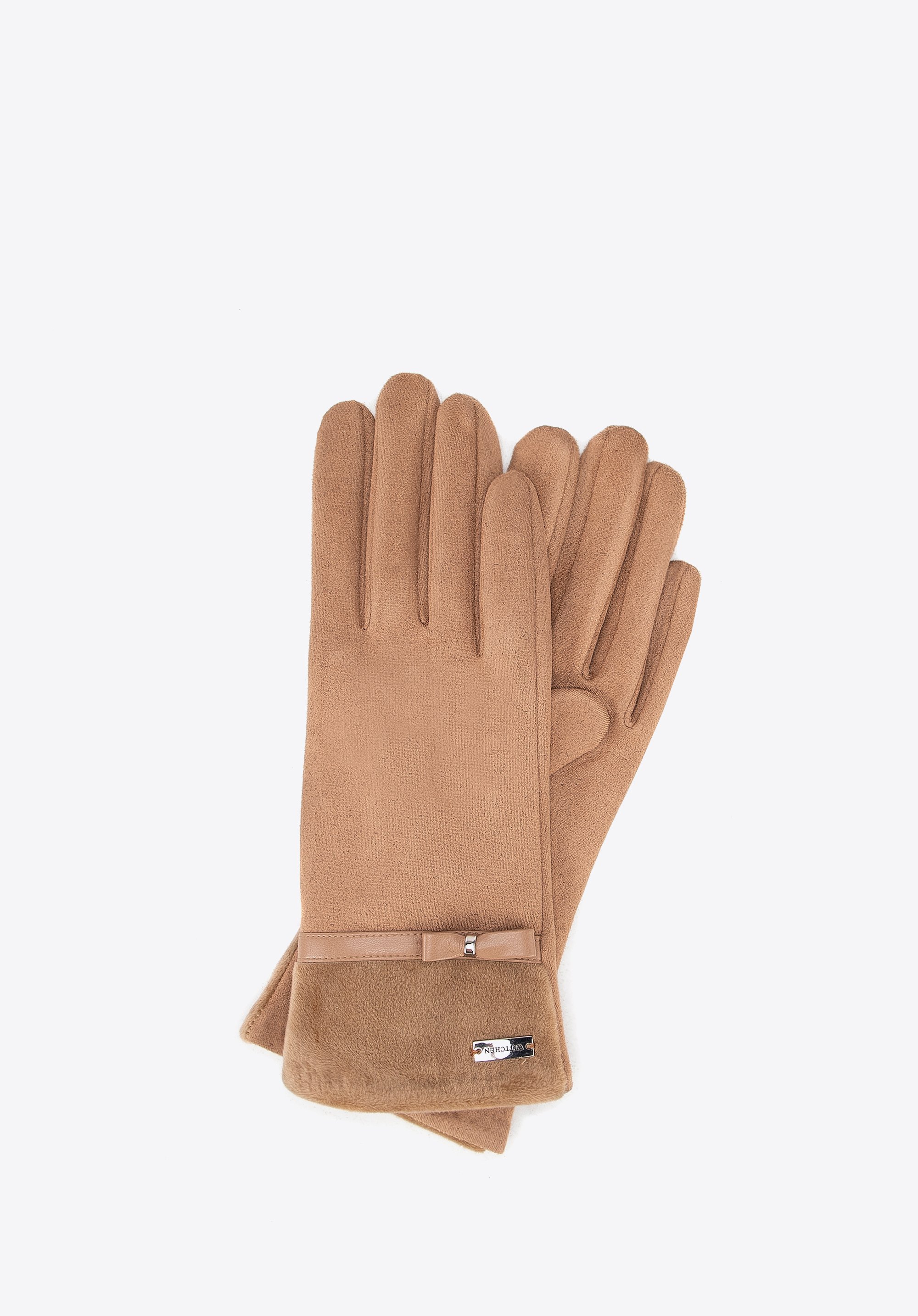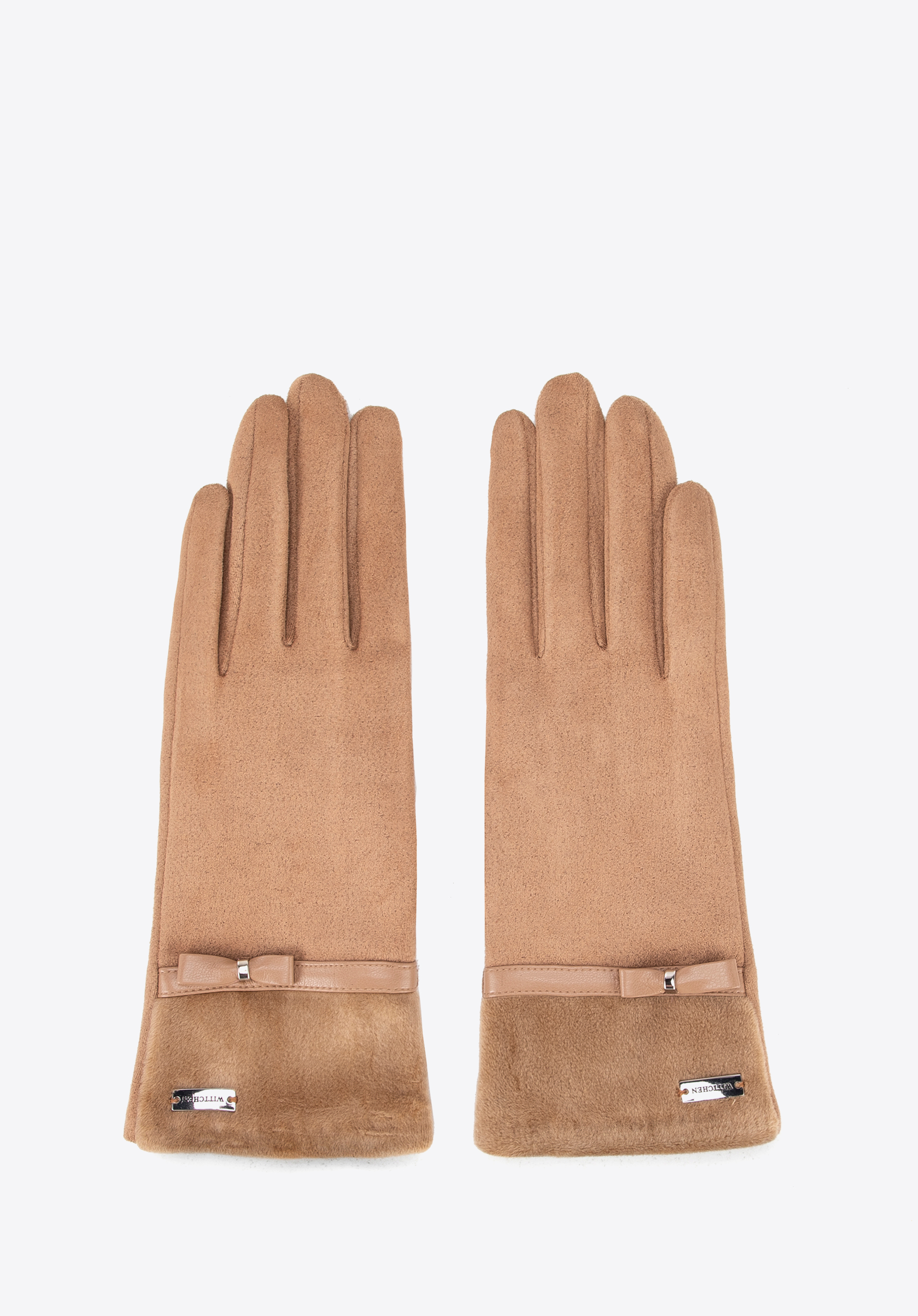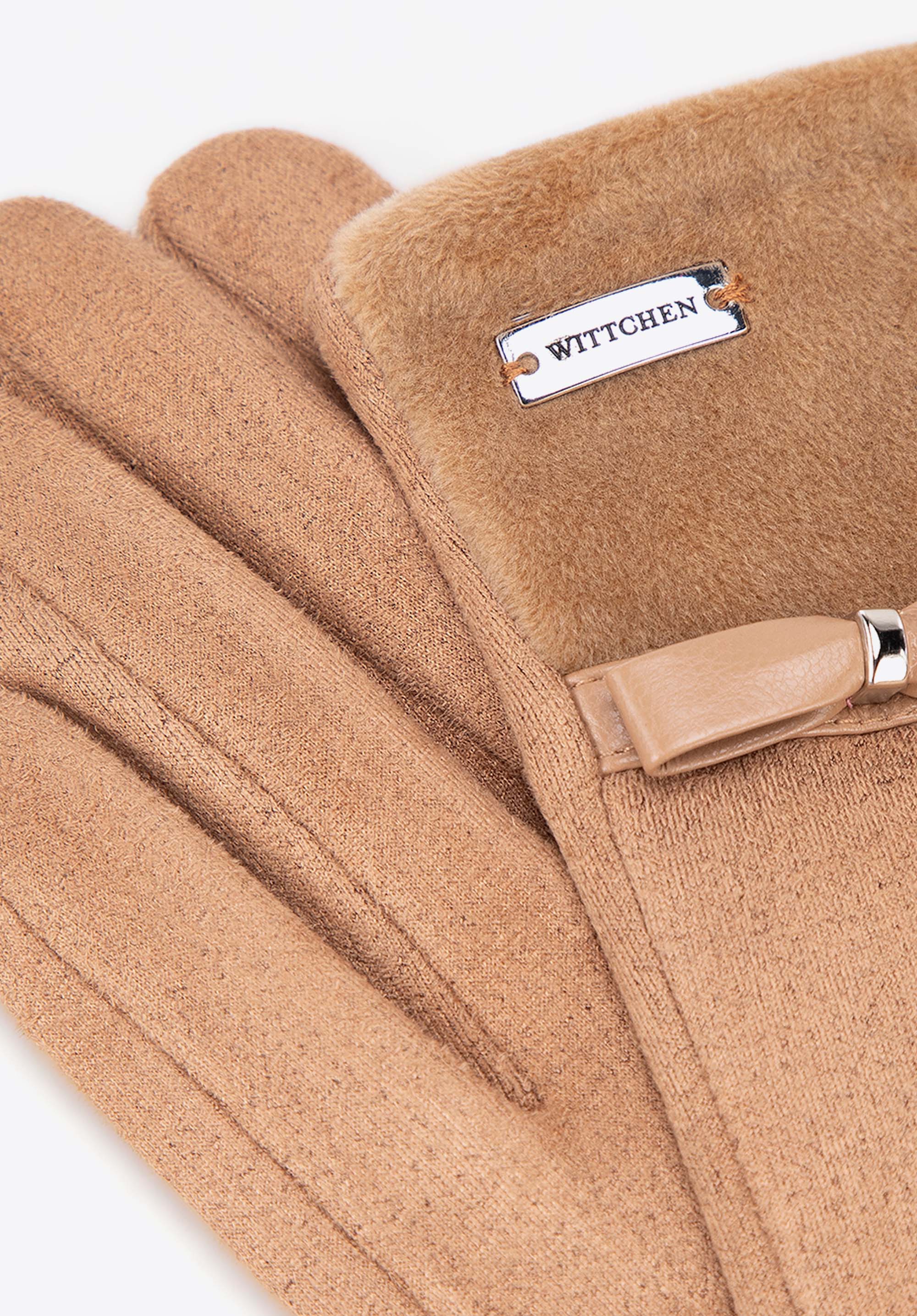 - Estetyczne detale: Na wierzchu rękawiczek znajduje się subtelna kokarda, która dodaje im uroku i elegancji. Ozdoba umieszczona jest na delikatnym pasku, co sprawia, że rękawiczki mają wyjątkowy i elegancki wygląd.