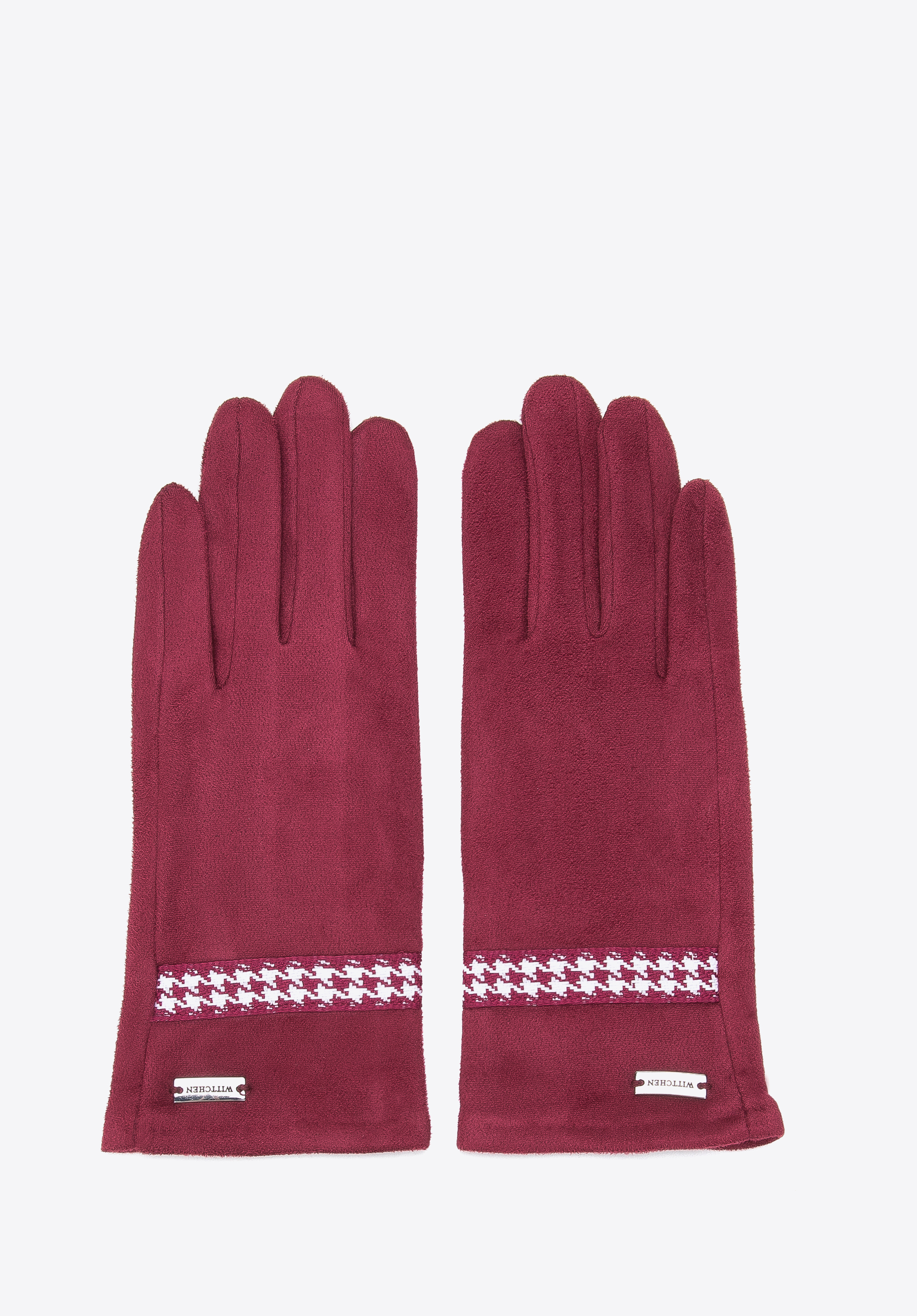 dopasowany kolorystycznie pasek w pepitkę, nadający całości klimatu retro. Noś je do kurtek z rękawem ¾ i wyeksponuj wzór lub połącz z ulubioną ramoneską i dodaj jej kobiecości. Damskie rękawiczki z wykończeniem w pepitkę to ponadczasowy dodatek, który podkreśli zarówno codzienną, jak i elegancką stylizację.