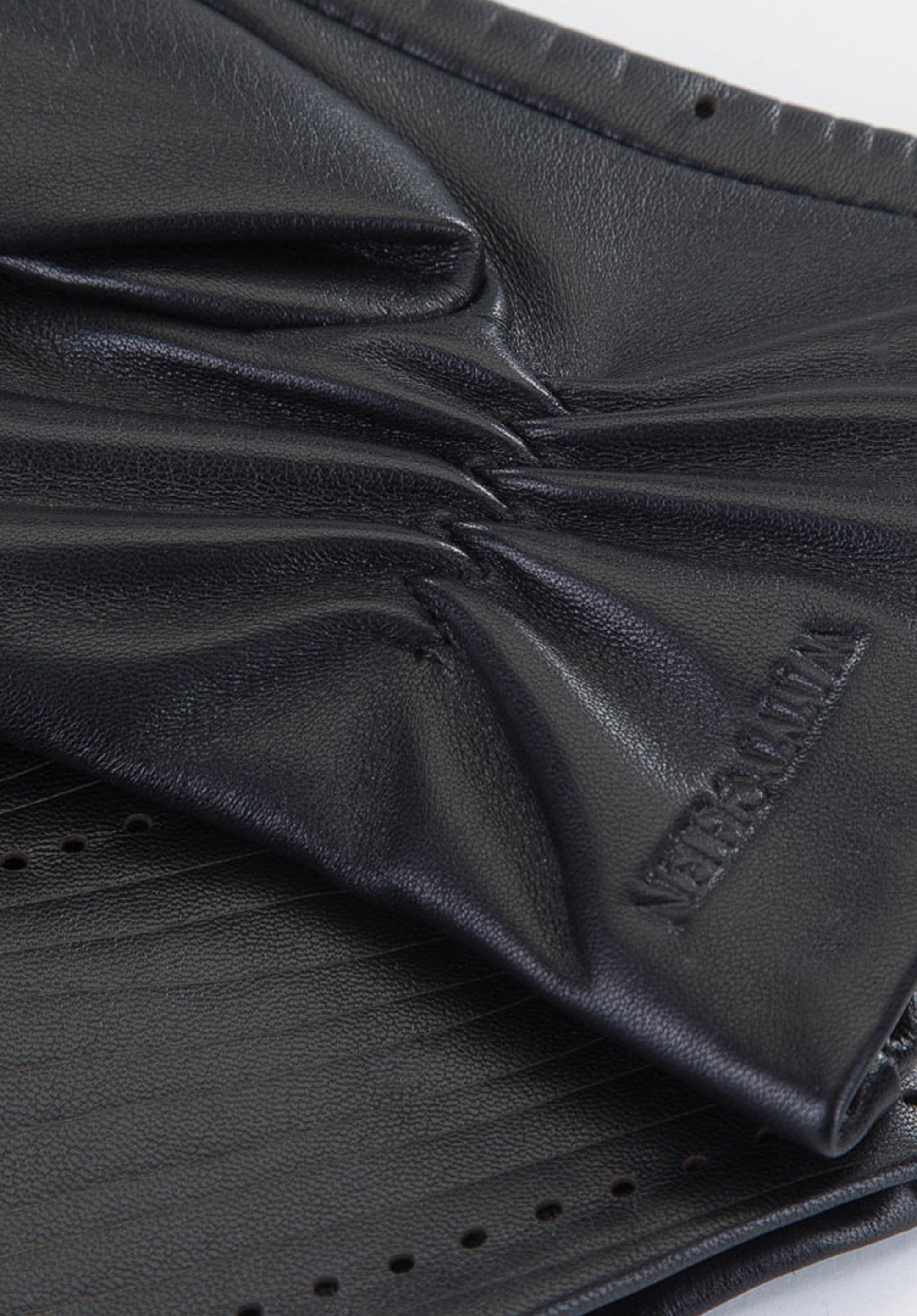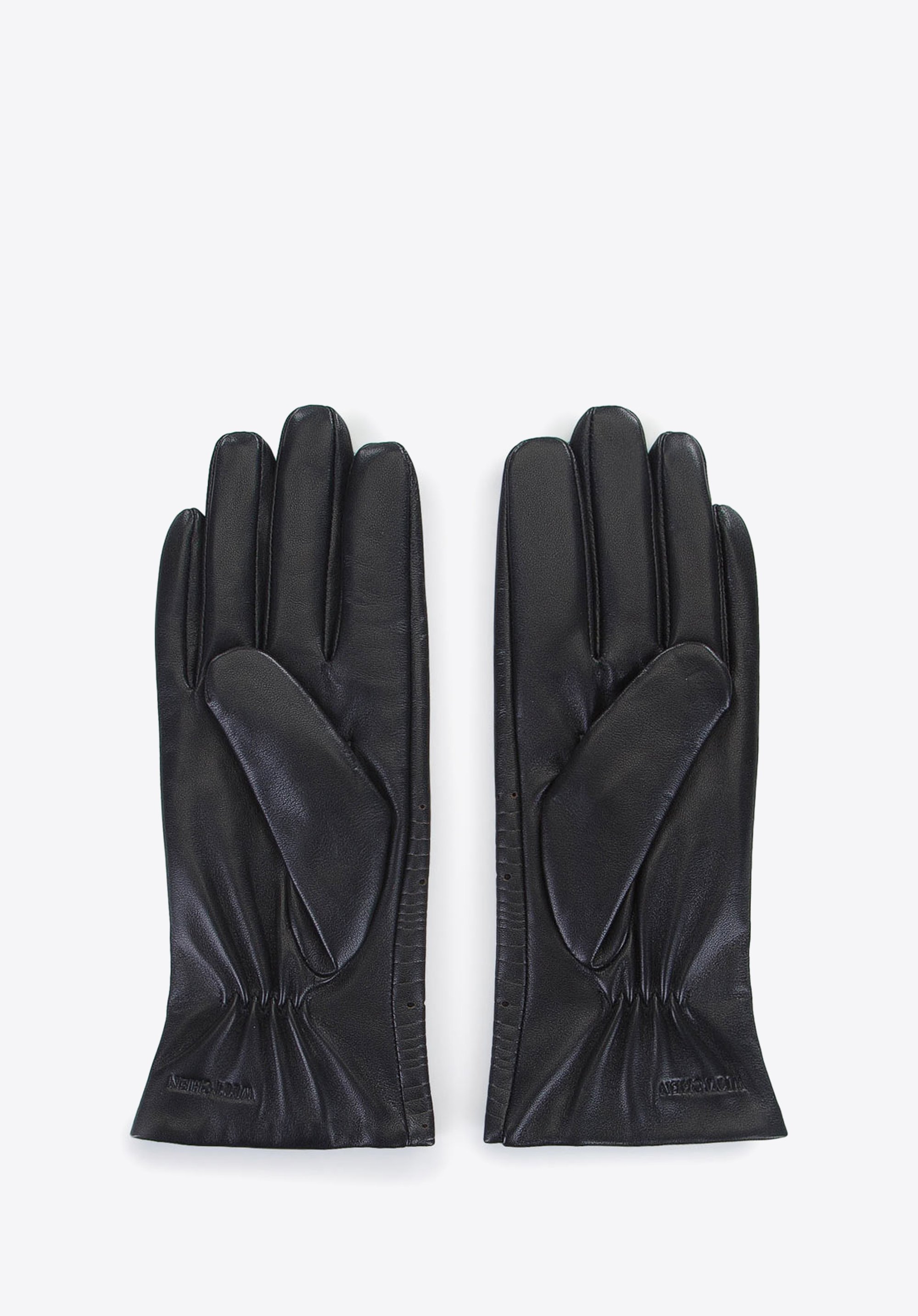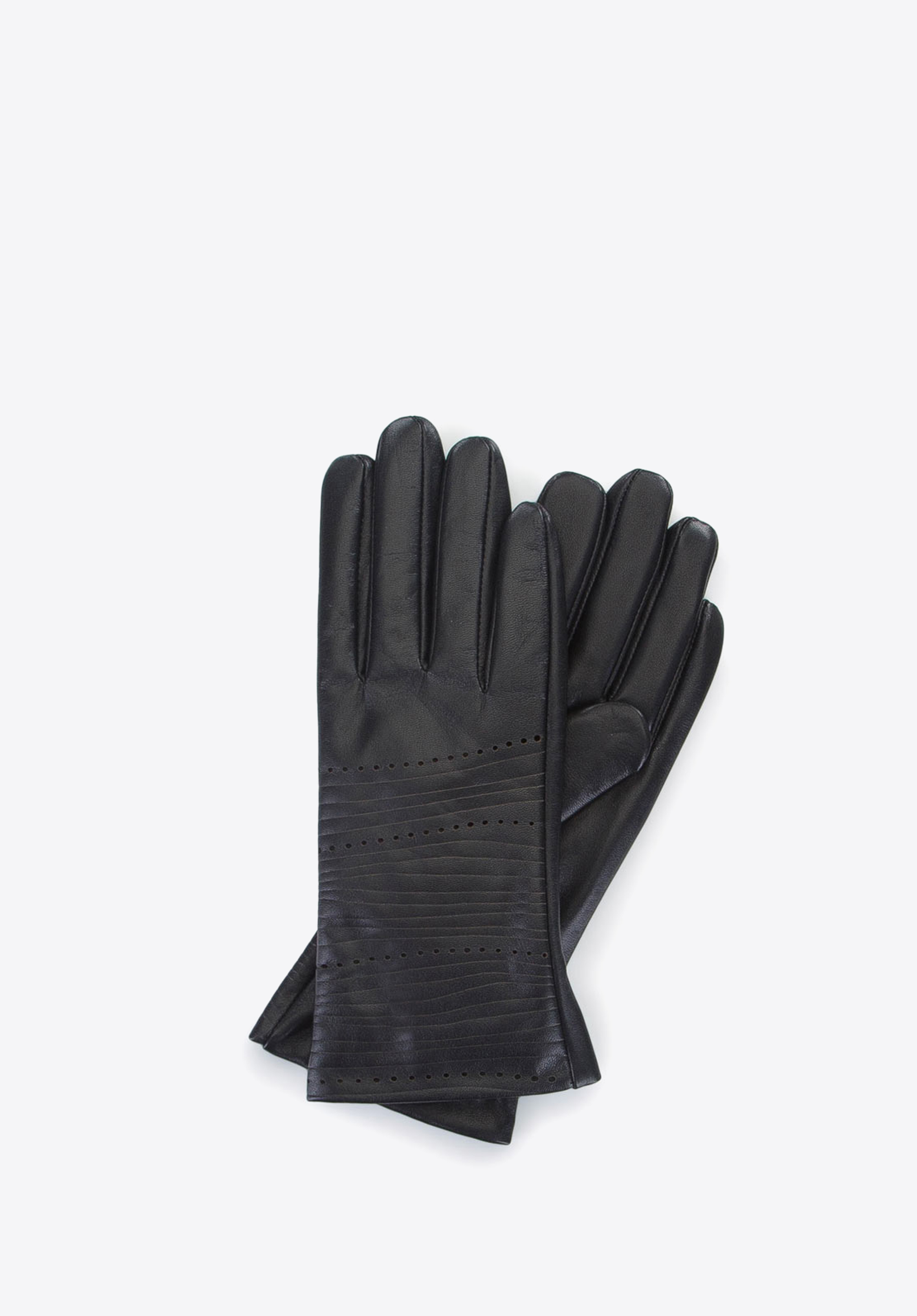 Niezwykle stylowy model damskich rękawiczek. Uszyte są z wysokiej jakości skóry naturalnej tłoczonej w poziome paseczki. Dodatkową ich ozdobą są drobne perforacje; od spodu rękawiczki są gładkie. Mają także krótki ściągacz, który pomoże Ci je szybko zdjąć i założyć, a rękawiczka dobrze będzie przylega do ręki. Rękawiczki ze skóry tłoczonej w paseczki będą wysmakowanym wykończeniem nawet najprostszej stylizacji w rodzaju: ciemnego płaszcza i muszkieterek.